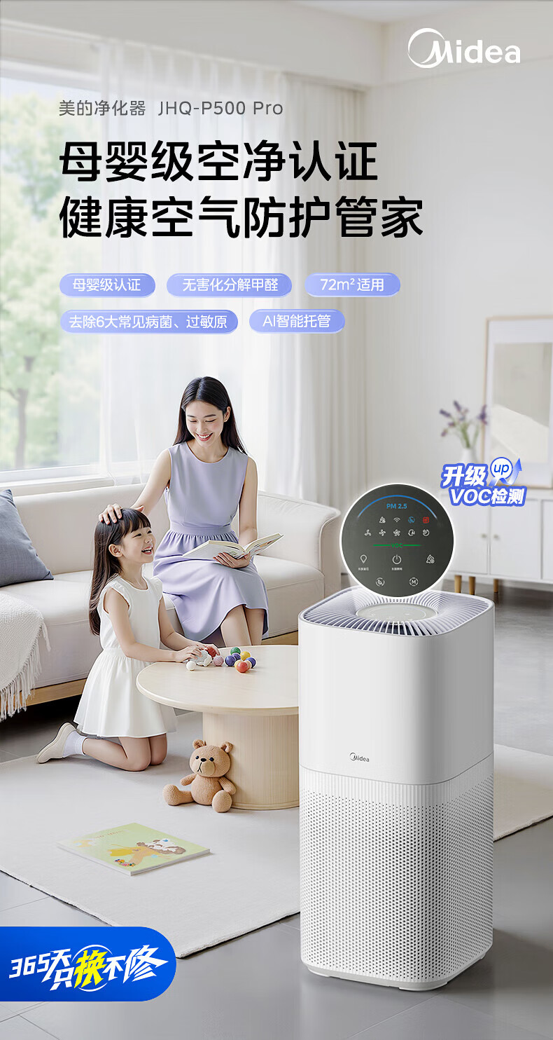 Midea Maternal and Infant Certification Forest Home Air Purifier Household formaldehyde removal, sterilization, odor removal, allergen removal, pet cat hair-absorbing air sterilizer, new maternal and infant grade P500 Pro