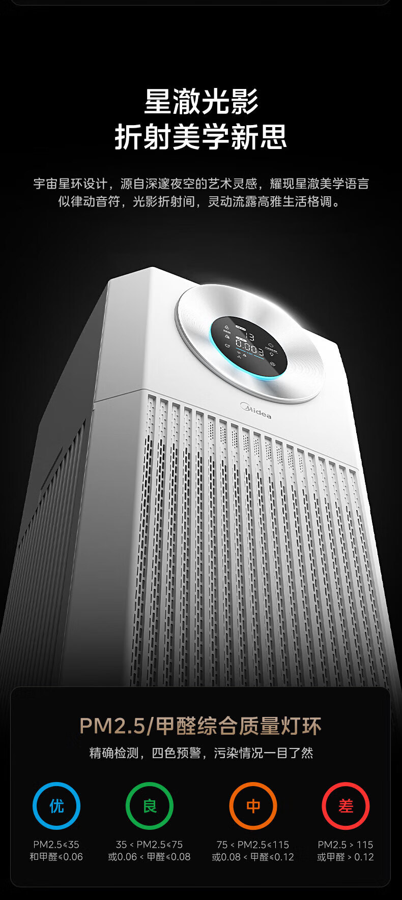 Midea pet air purifier absorbs cat hair and removes allergens, cat and dog deodorizer, cat hair purifier sterilizes, disinfects and removes odors, high-end flagship pet T1000 Lite