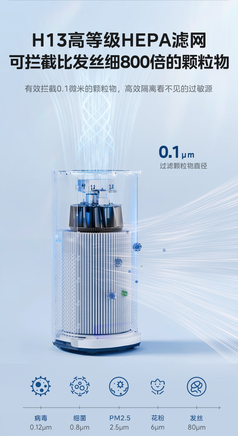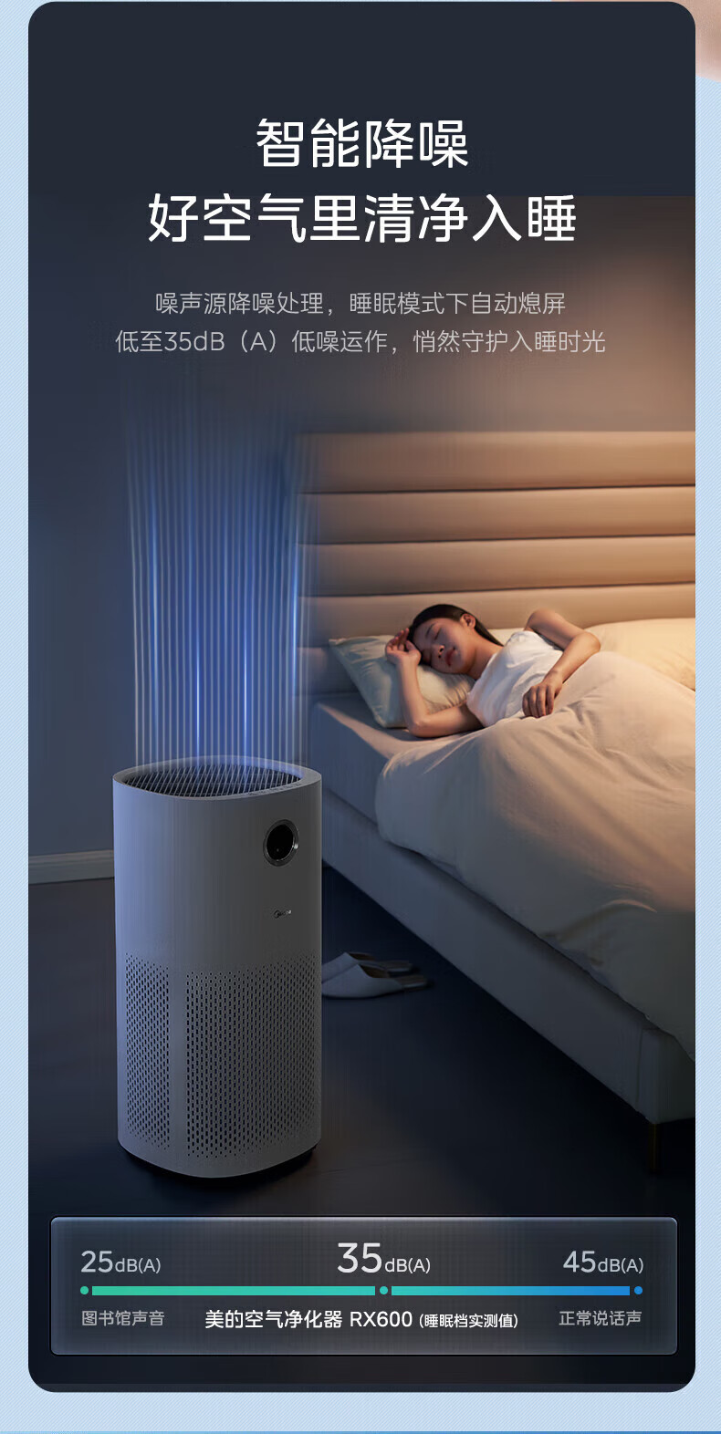 Midea maternal and child certified medical grade air purifier decomposes, removes formaldehyde, removes smoke odor, removes cat hair, pet 99.99% sterilizes, removes viruses, removes haze and pollen air sterilizer 6-stage purification medical grade RX600
