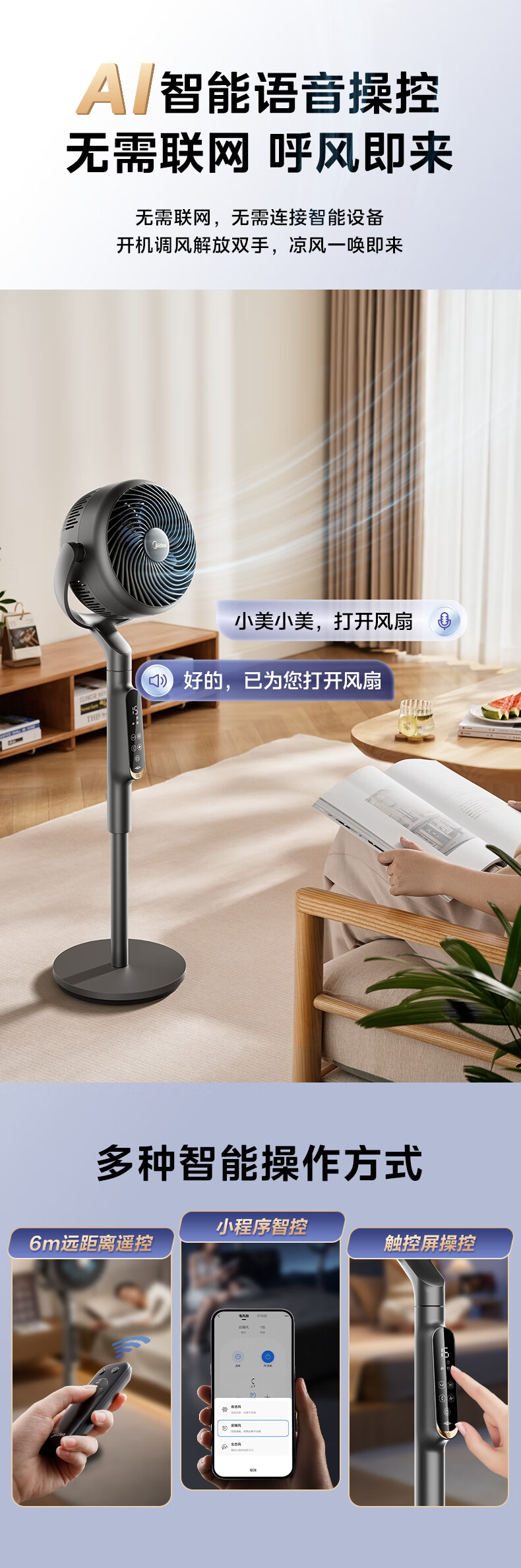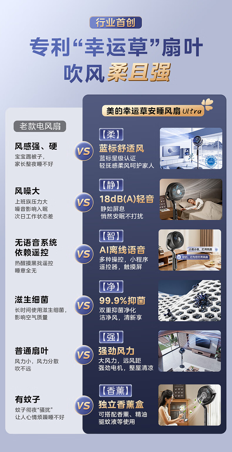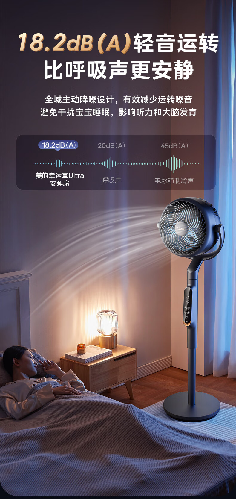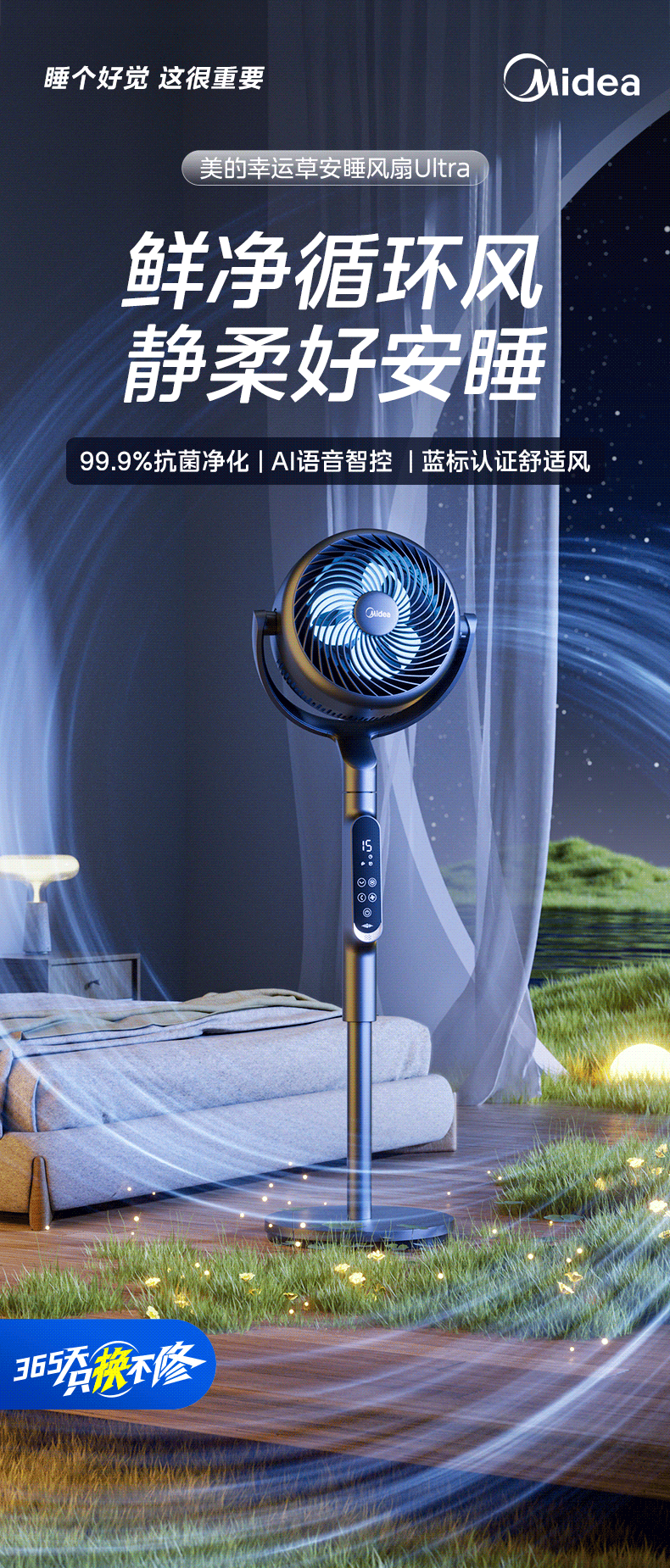 Midea Clover Sleep Ultra DC variable frequency 3D shaking head air circulation fan/silent bedroom electric fan/small remote control floor fan/voice purification fan