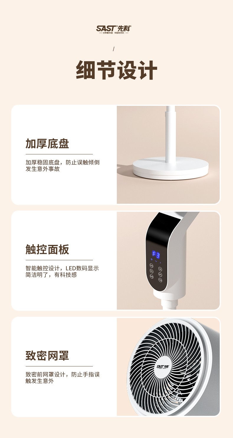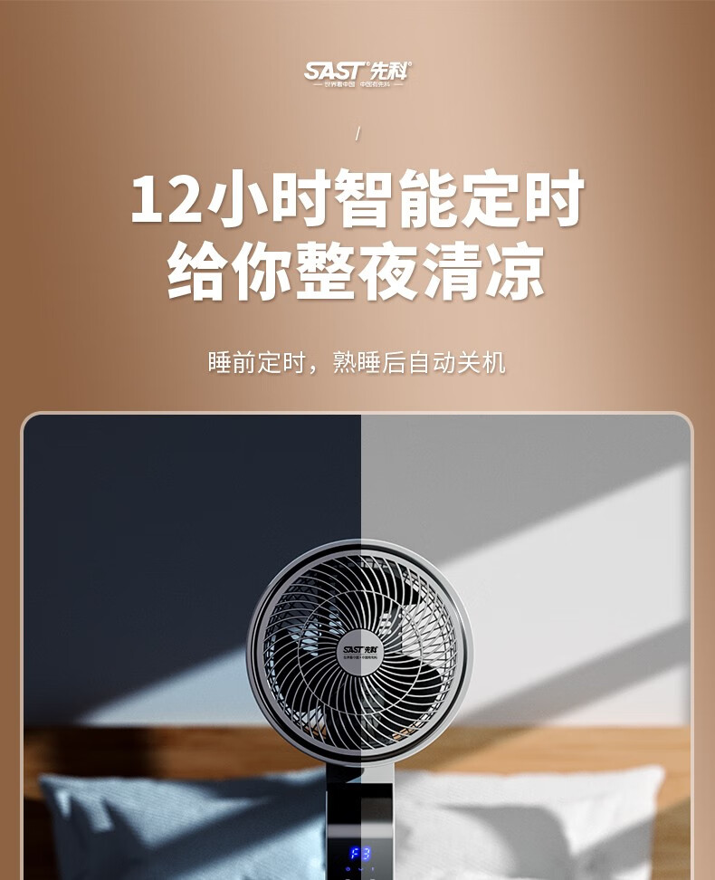 SAST electric fan floor fan air circulation fan household 360-degree shaking head electric fan light sound fan office living room circulation fan dormitory energy-saving intelligent voice remote control vertical luxury 360-degree shaking head lifting remote control model 8006R