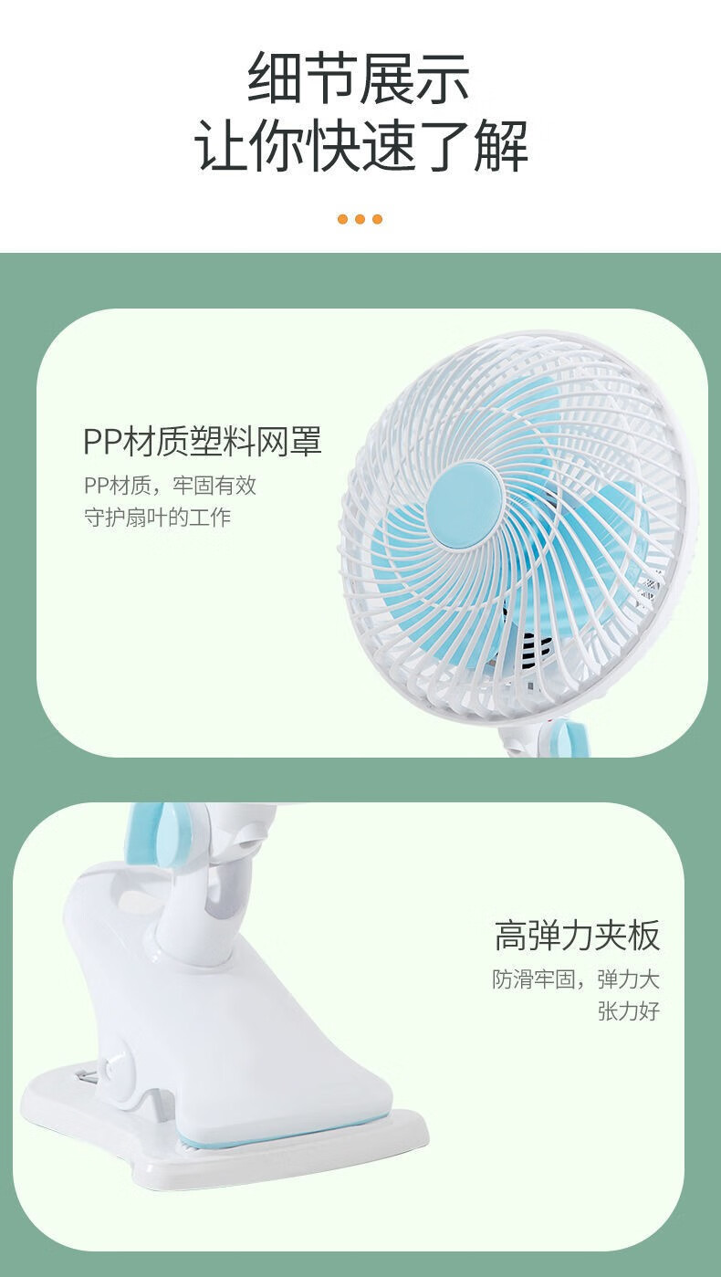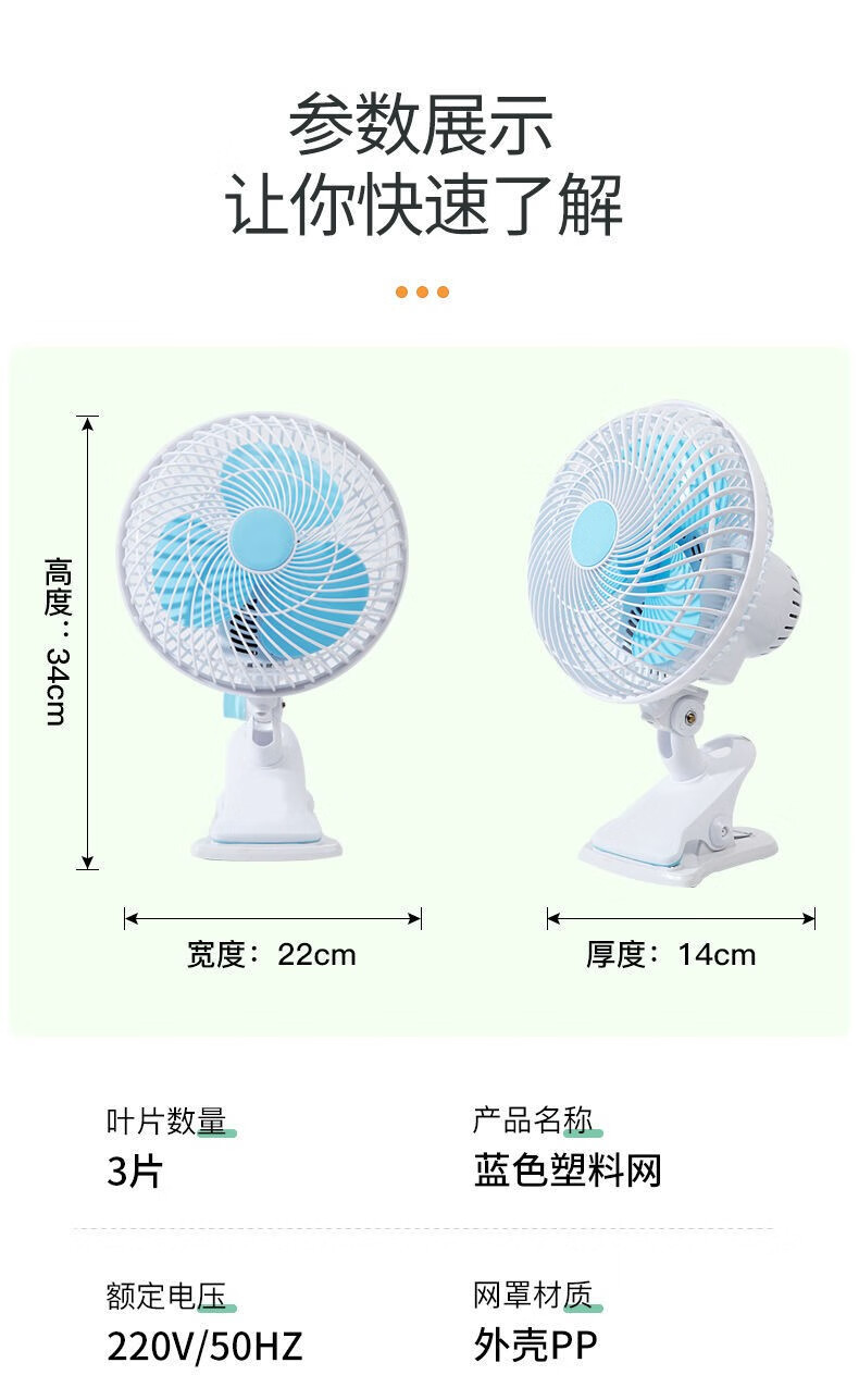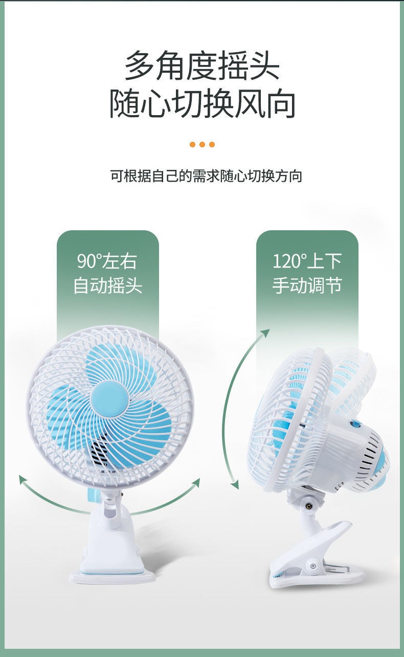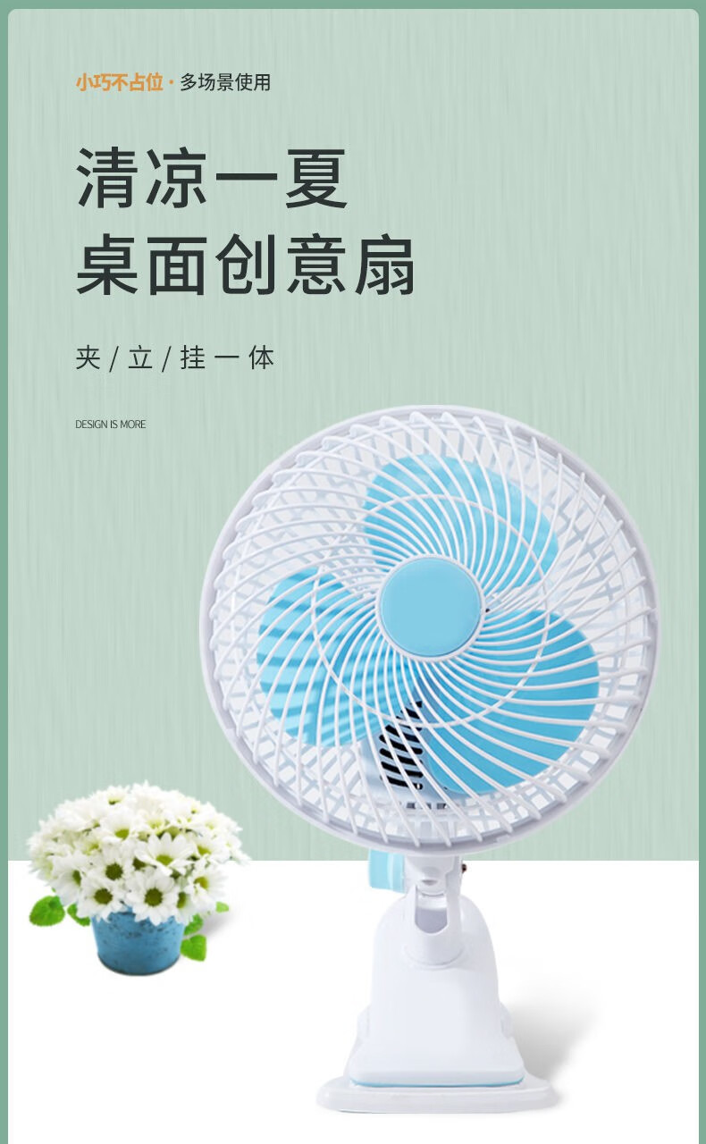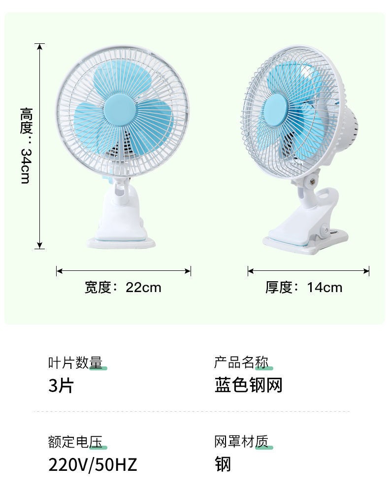Shui Yueming Plug-in Small Clamp Electric Fan Powerful College Student Dormitory Bedside Wall-Mounted Office Desktop Small Fan Desk Fan Quiet Bass Home Desktop Clamp Fan Office Blue Plastic Mesh (comes with 1.3m wire) Standable, Hangable, Clampable Multi-Function Shaking Head Fan