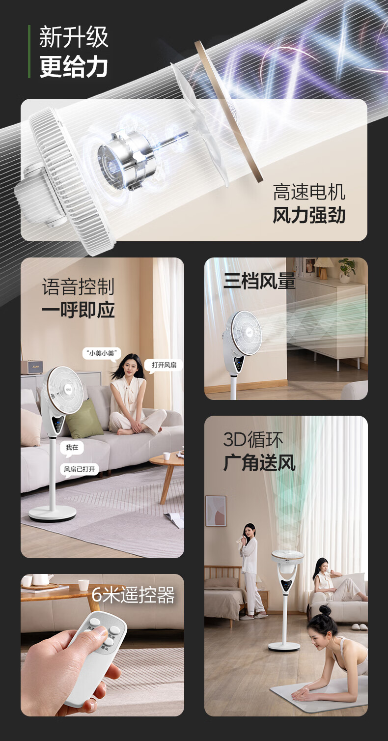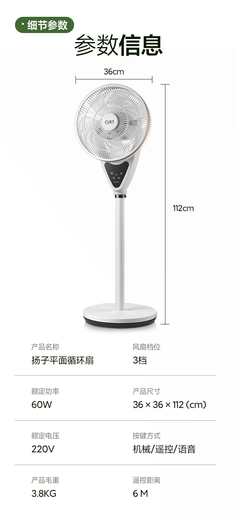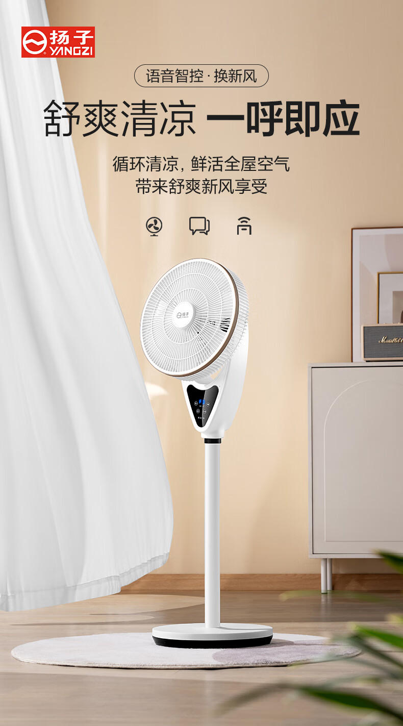 Yangtze electric fan air circulation fan table dual-use smart voice remote control home fan bedroom living room floor fan large air volume table fan seven-leaf light sound low noise eight-character shaking head fan white voice model aromatherapy + voice control + eight-character shaking head + table dual-use