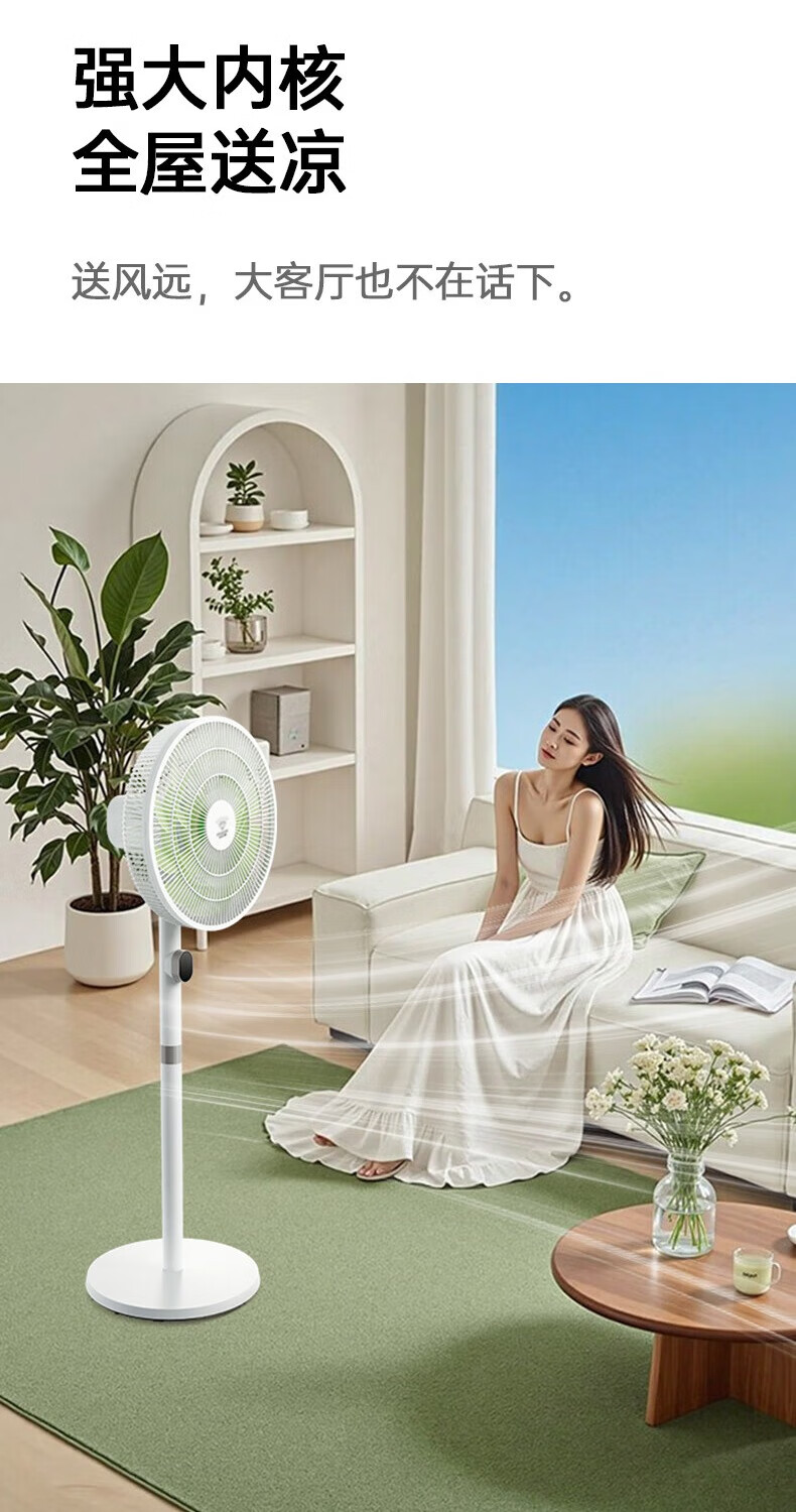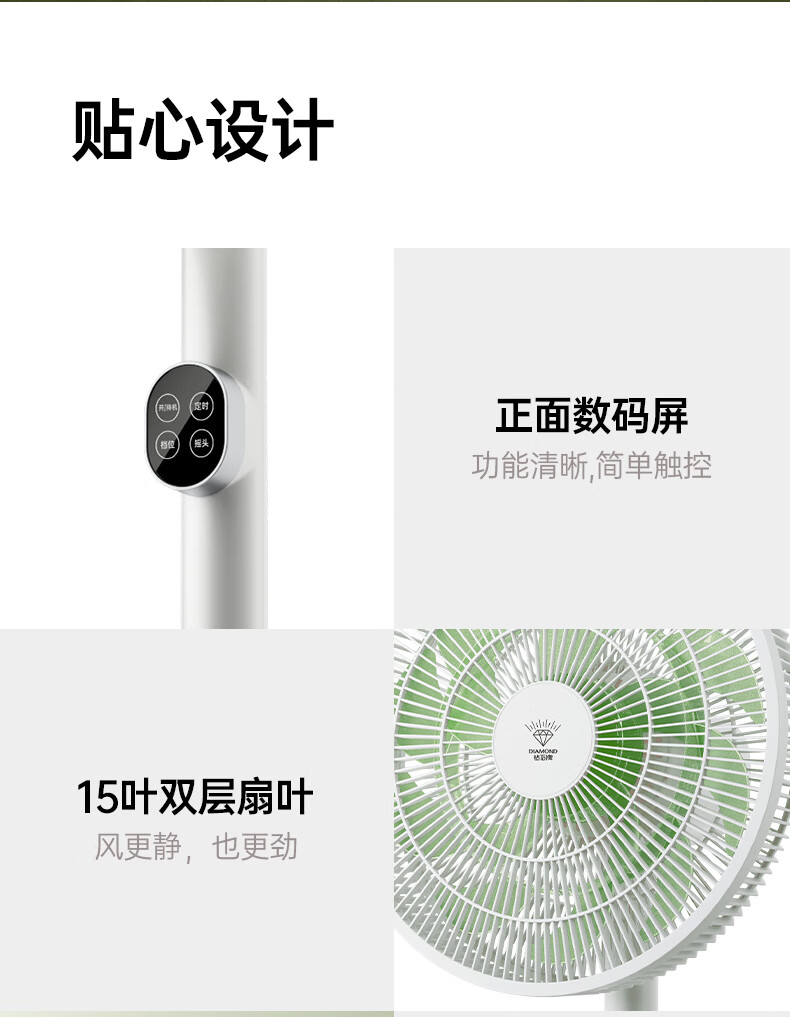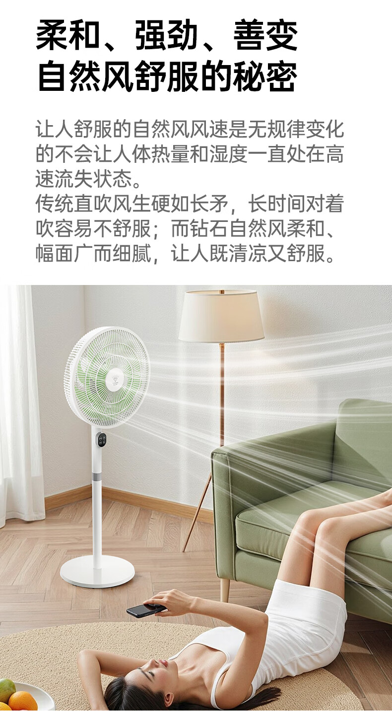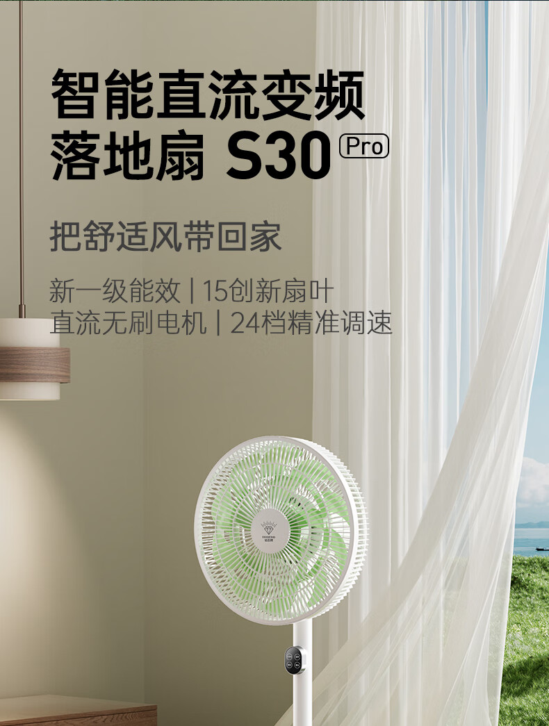 DIAMOND first-class energy efficiency electric fan household floor fan DC variable frequency fan energy-saving electric fan shaking head air circulation fan large air volume living room bedroom light-sound vertical fan SN AI voice + remote control model first-class energy efficiency丨12H timing丨24 wind speeds