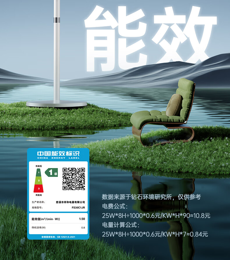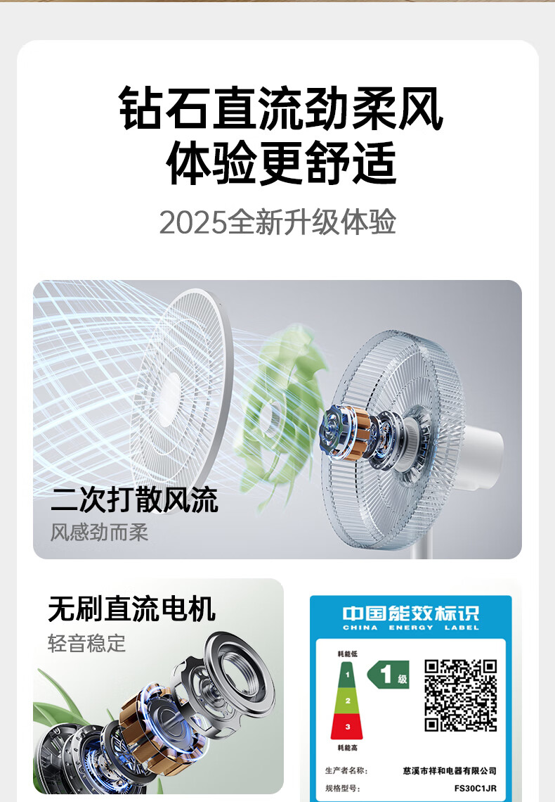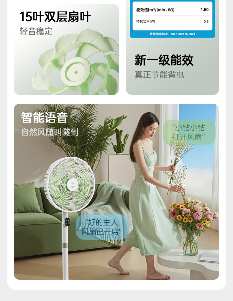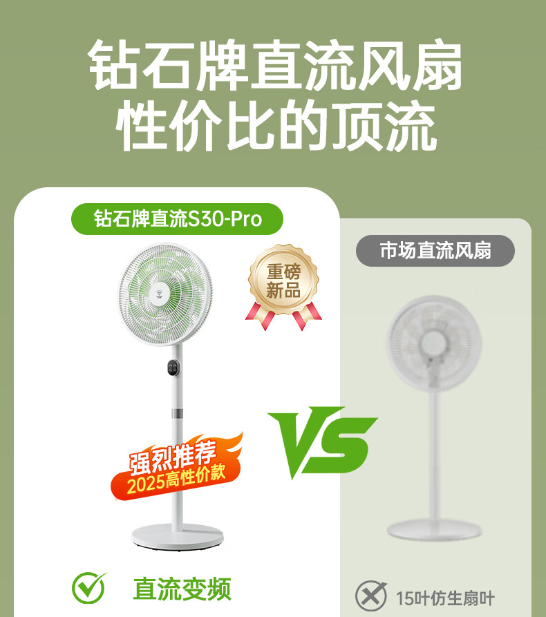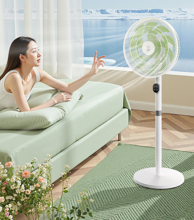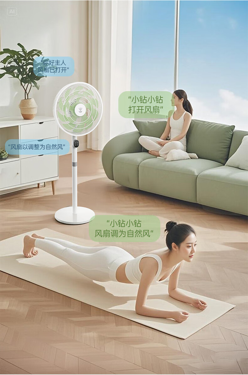DIAMOND first-class energy efficiency electric fan household floor fan DC variable frequency fan energy-saving electric fan shaking head air circulation fan large air volume living room bedroom light-sound vertical fan SN AI voice + remote control model first-class energy efficiency丨12H timing丨24 wind speeds