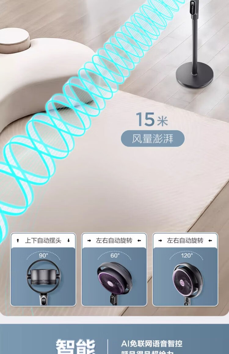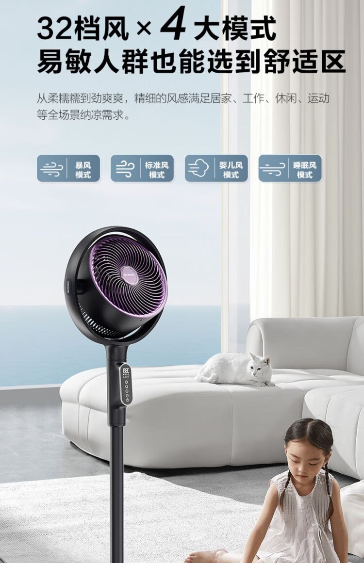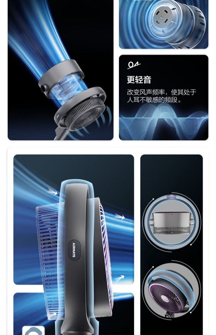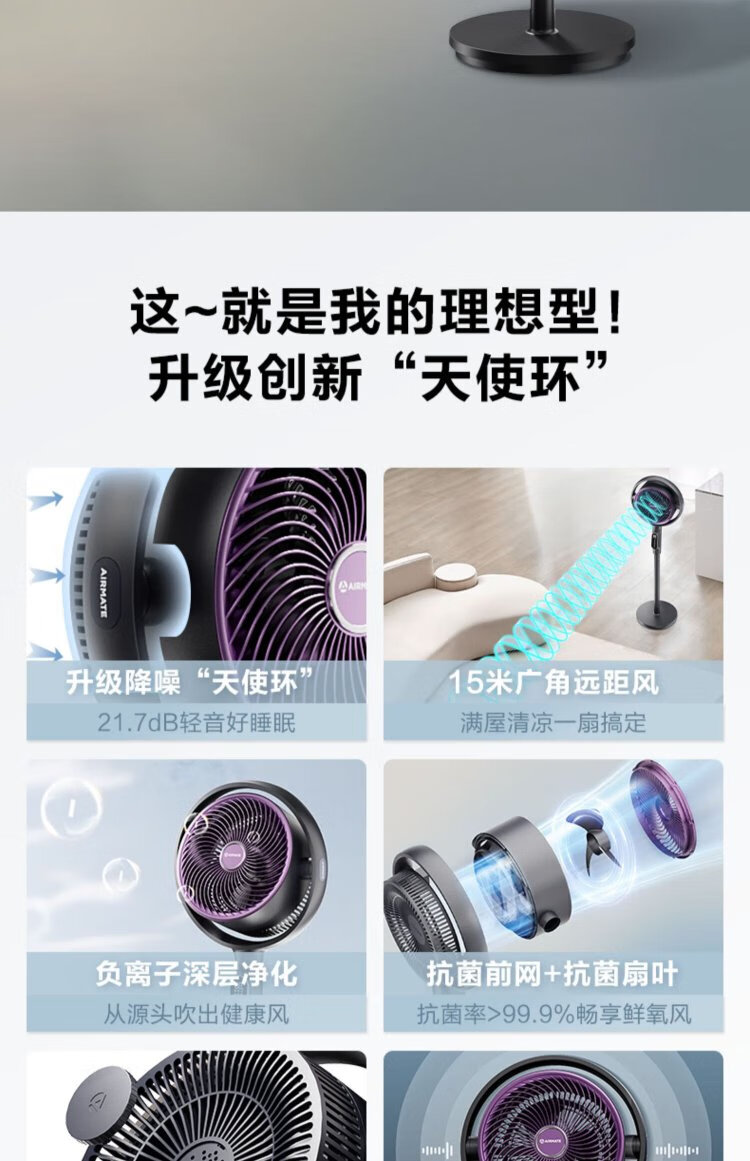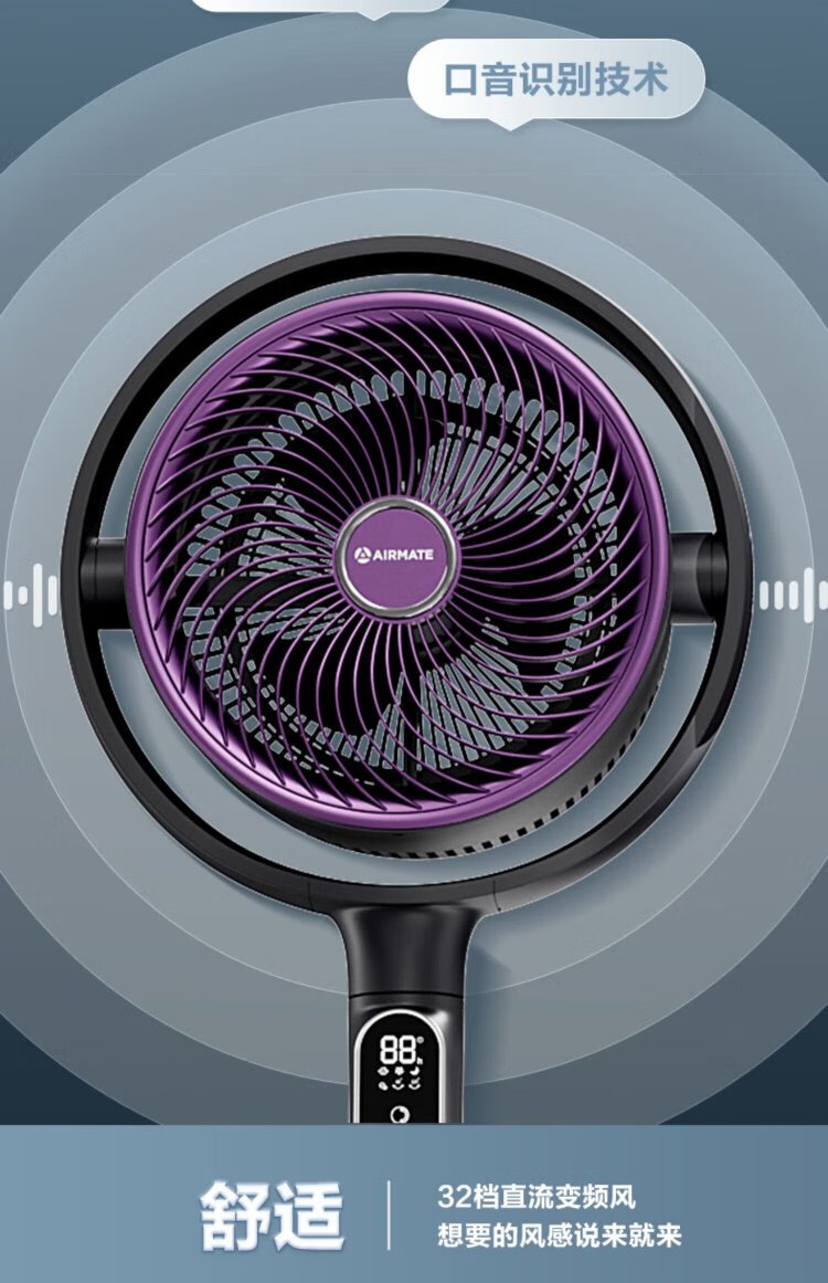 AIRMATE Angel Ring Voice Air Circulation Fan/National Subsidy/DC Frequency Converter/Bedroom Silent Household Electric Fan Purification Fan Small 3D Shaking Shaking Floor Fan AI Voice丨Negative Ion Purification丨32 Winds丨Storm Mode丨Purification Filter