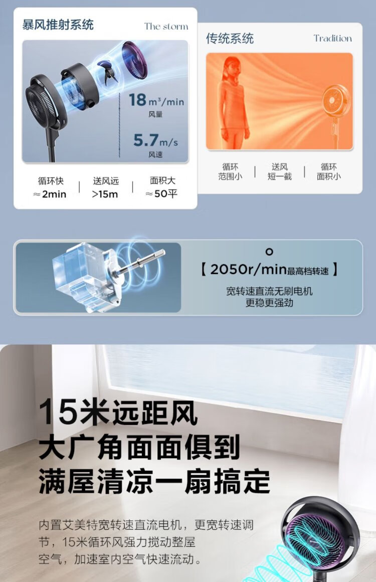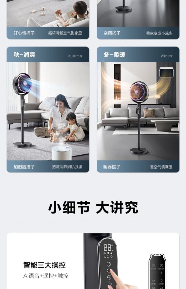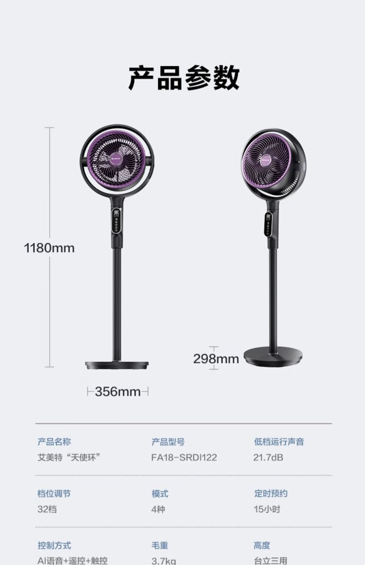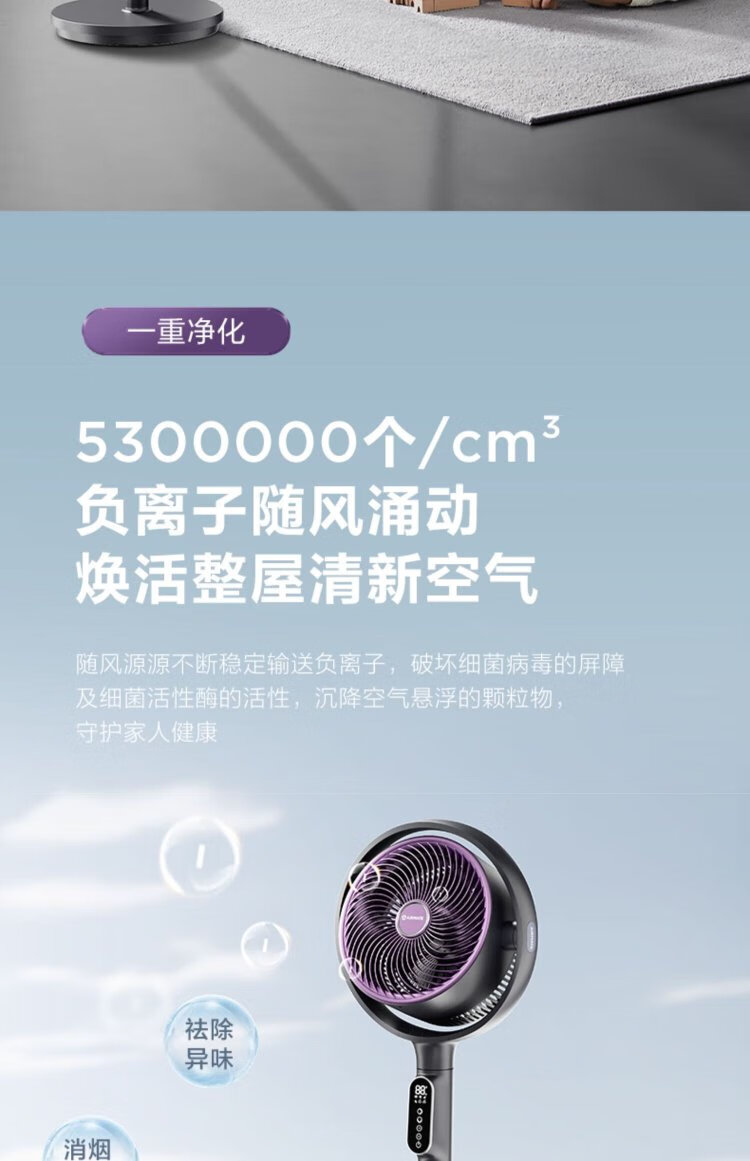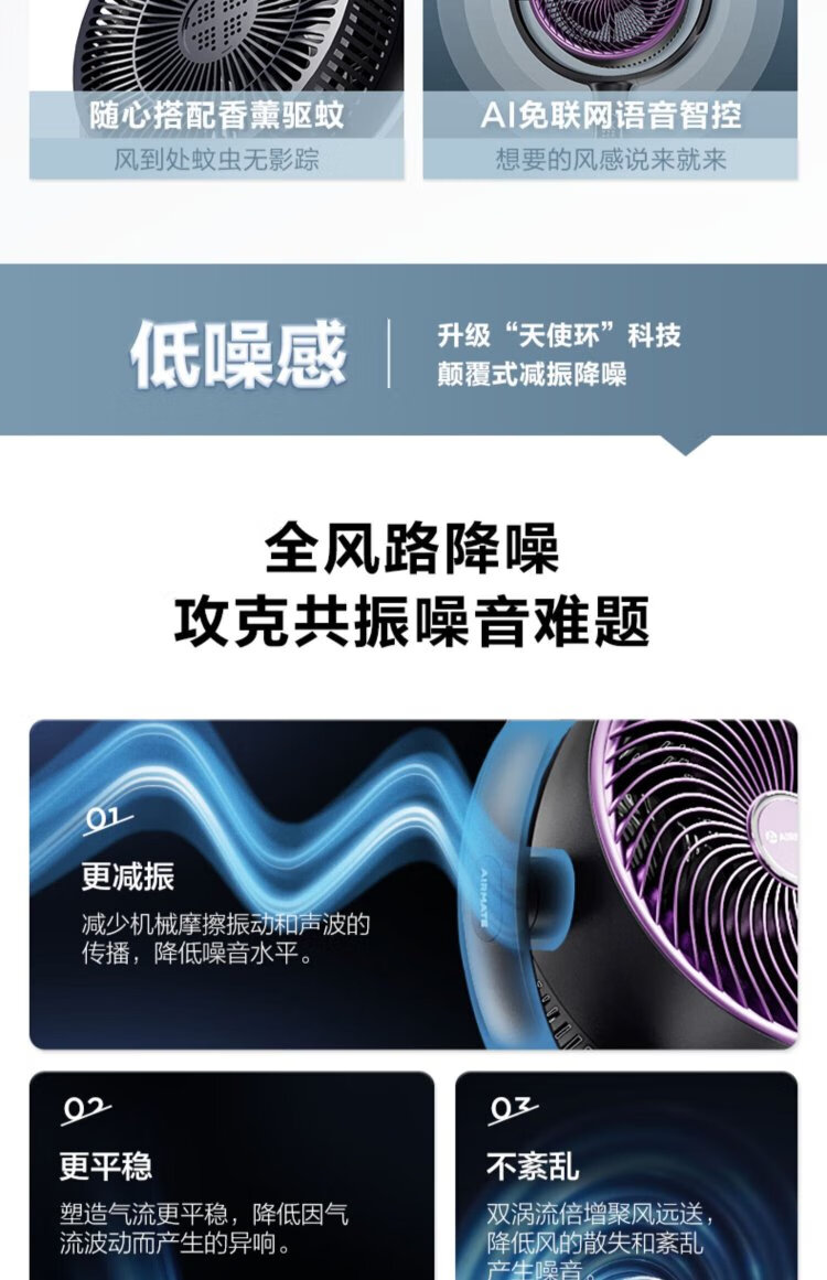AIRMATE Angel Ring Voice Air Circulation Fan/National Subsidy/DC Frequency Converter/Bedroom Silent Household Electric Fan Purification Fan Small 3D Shaking Shaking Floor Fan AI Voice丨Negative Ion Purification丨32 Winds丨Storm Mode丨Purification Filter