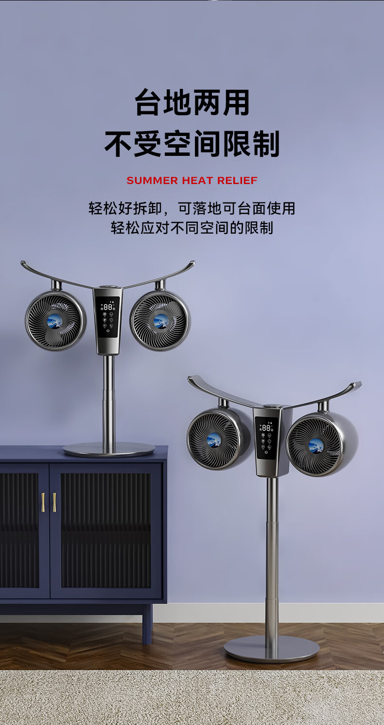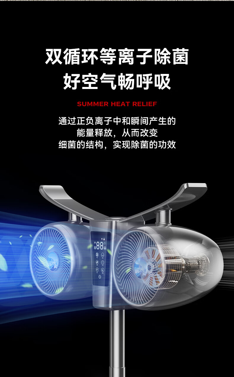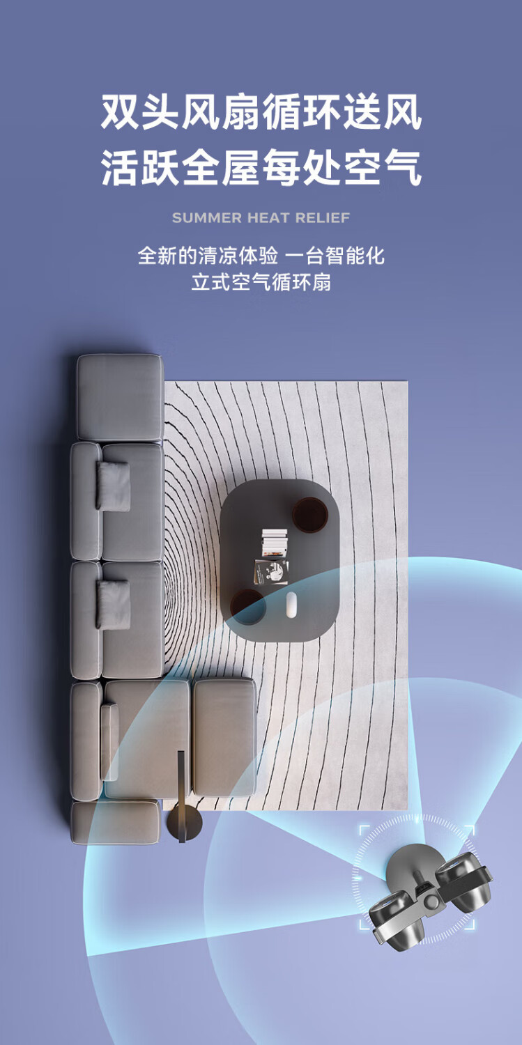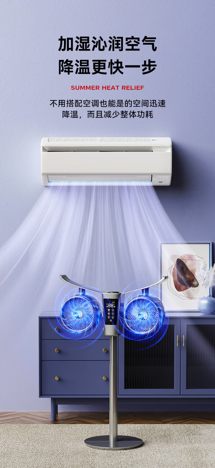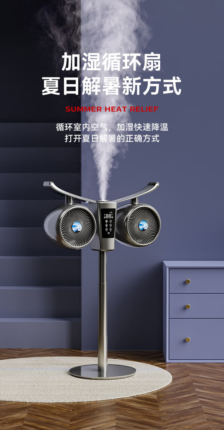 Manoshi double-head air circulation fan household voice electric fan floor-standing high wind silent floor fan humidification intelligent sterilization three-dimensional wide-angle air supply up and down left and right shaking head new product humidification/purification/remote control/Bluetooth Bluetooth version