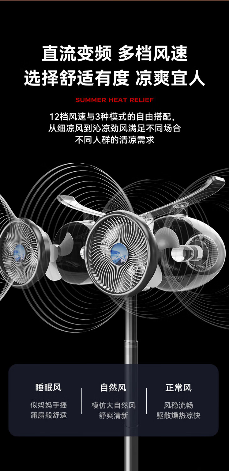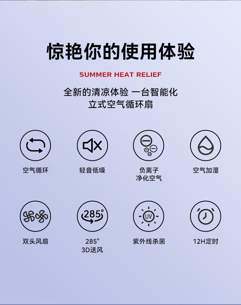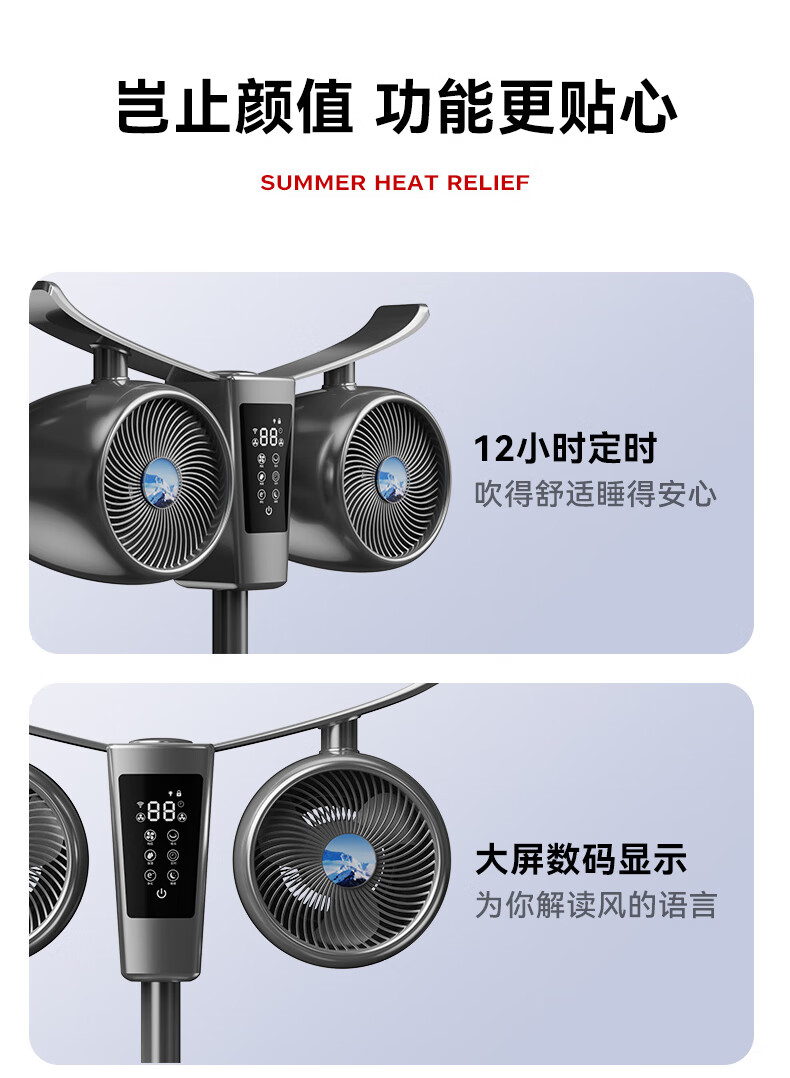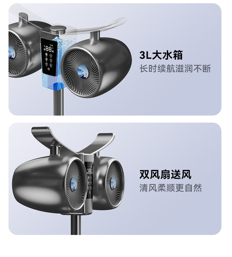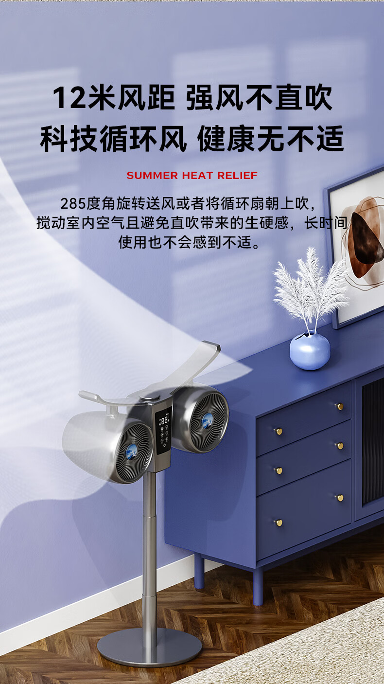 Manoshi double-head air circulation fan household voice electric fan floor-standing high wind silent floor fan humidification intelligent sterilization three-dimensional wide-angle air supply up and down left and right shaking head new product humidification/purification/remote control/Bluetooth Bluetooth version