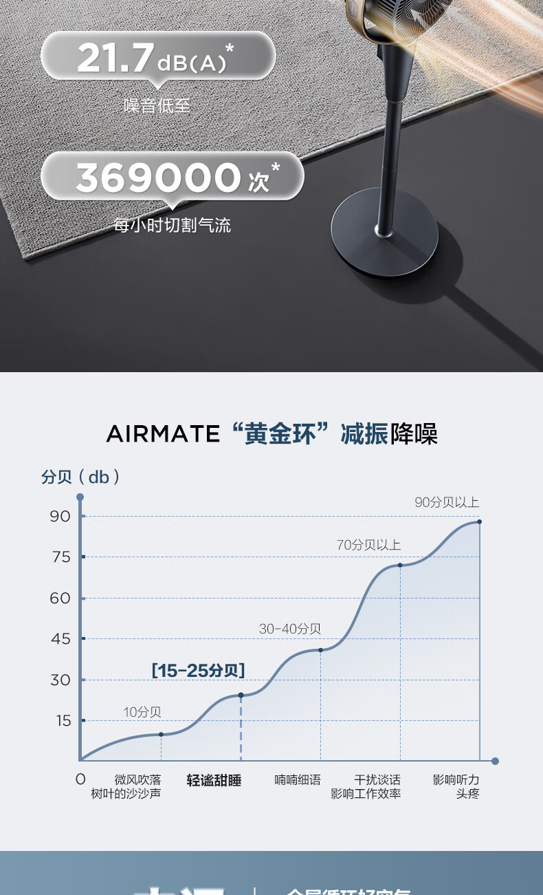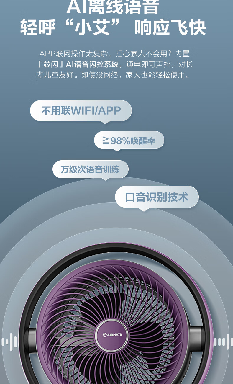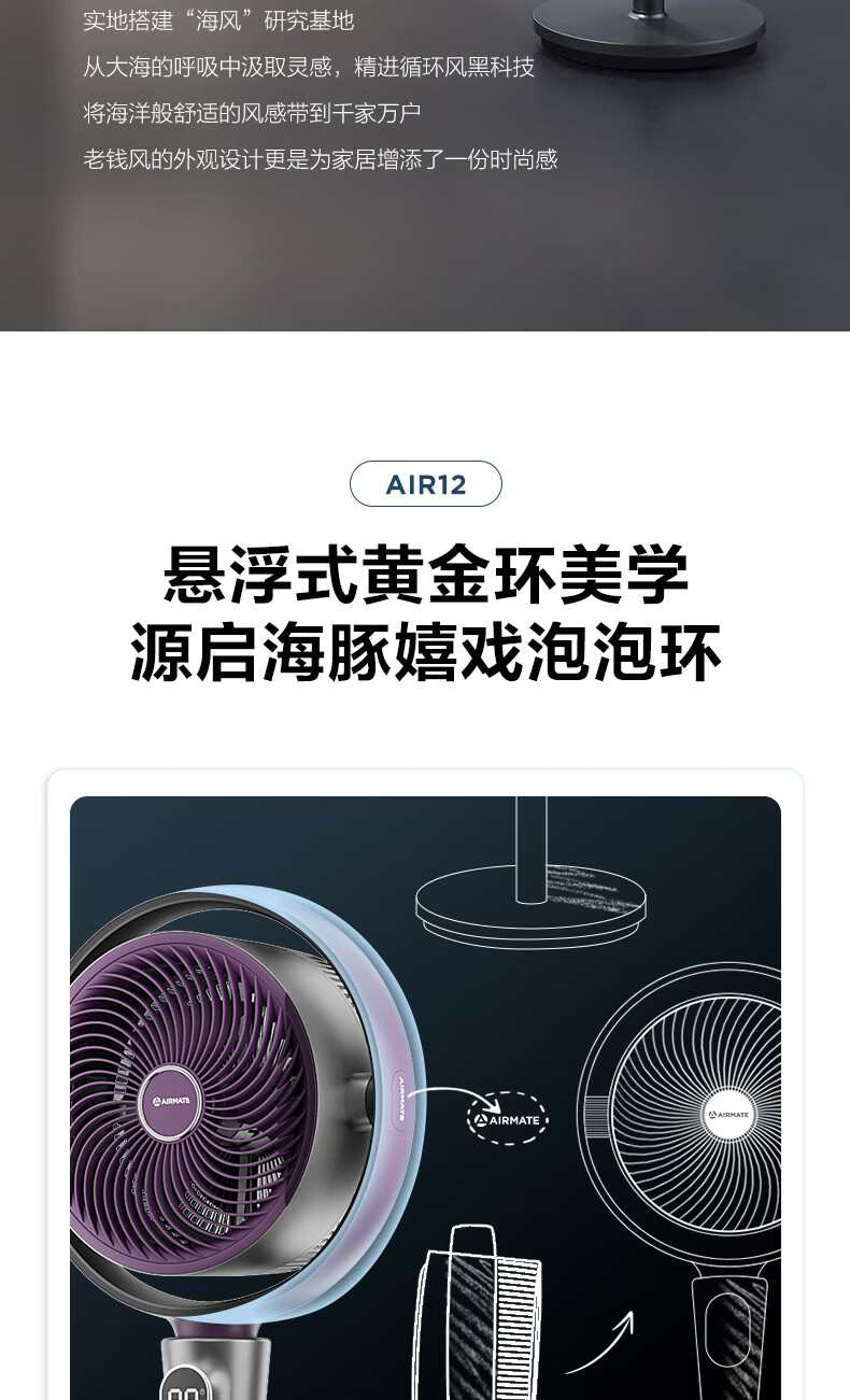 AIRMATE Ocean 0 Noise Air Circulation Fan AI Voice Gold Ring Shock Absorption Negative Ion Sterilization Fan 34-level Adjustable Filter Aromatherapy Mosquito Repellent Floor Fan AIR12 Nebula Purple AI Voice + 0 Noise + Negative Ions