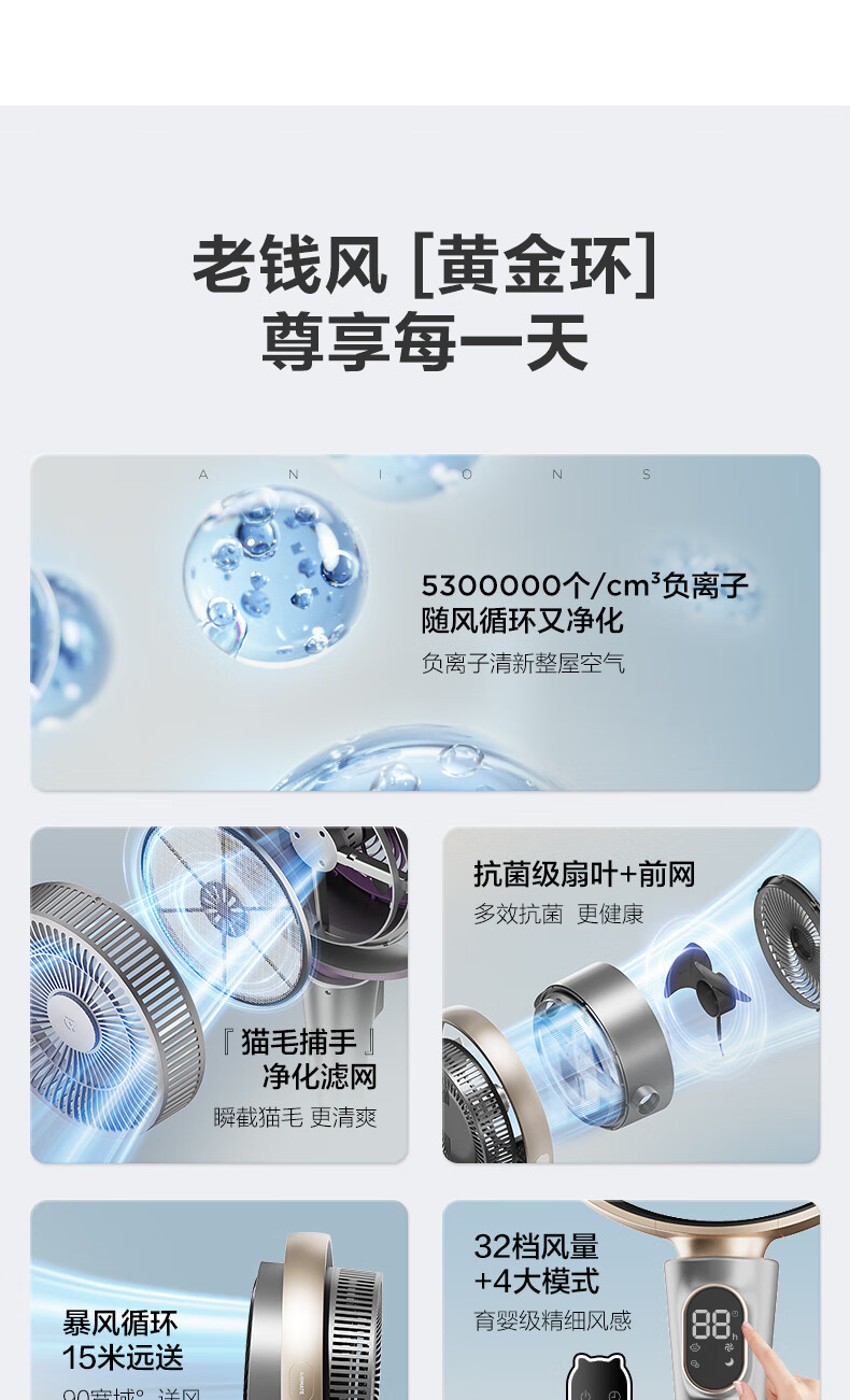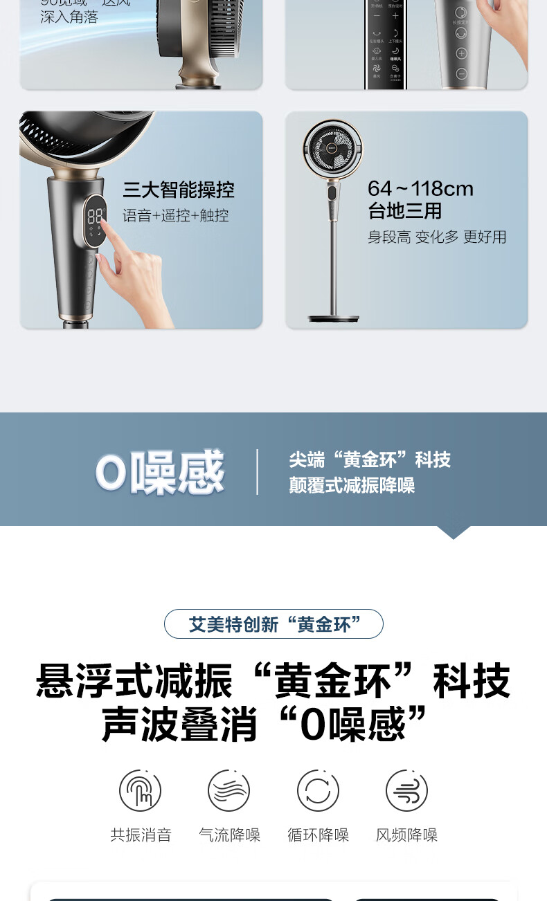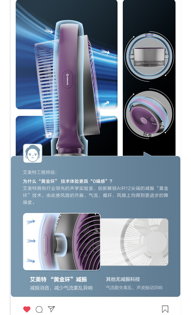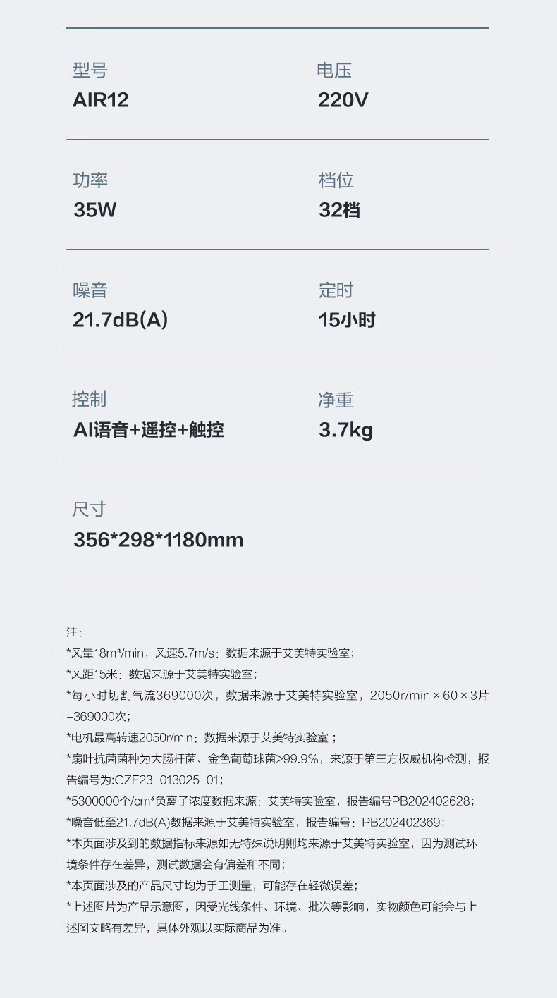 AIRMATE Ocean 0 Noise Air Circulation Fan AI Voice Gold Ring Shock Absorption Negative Ion Sterilization Fan 34-level Adjustable Filter Aromatherapy Mosquito Repellent Floor Fan AIR12 Nebula Purple AI Voice + 0 Noise + Negative Ions