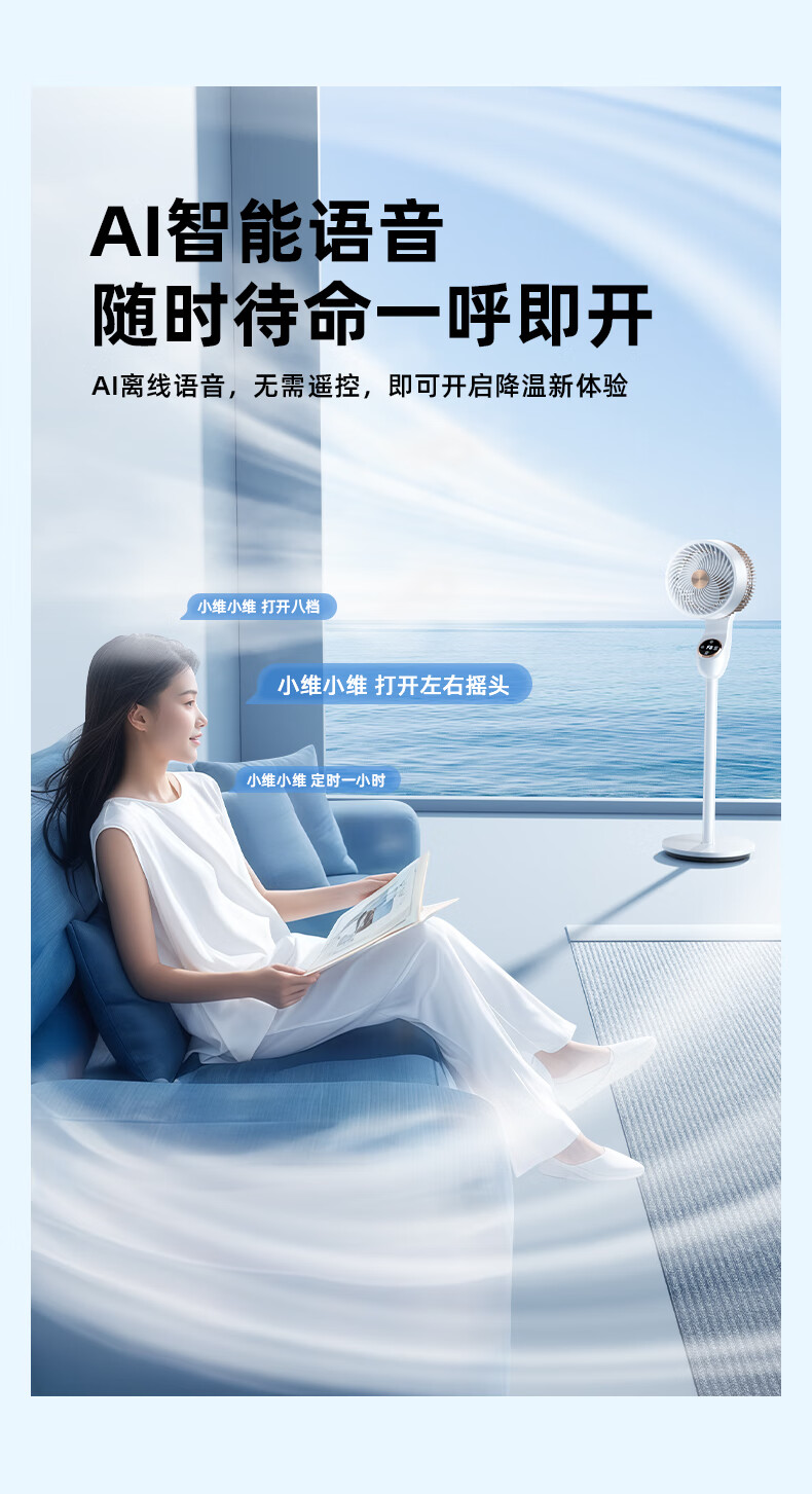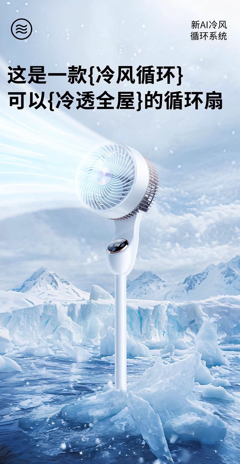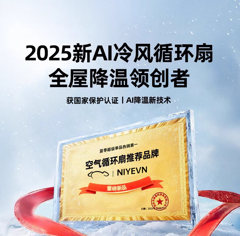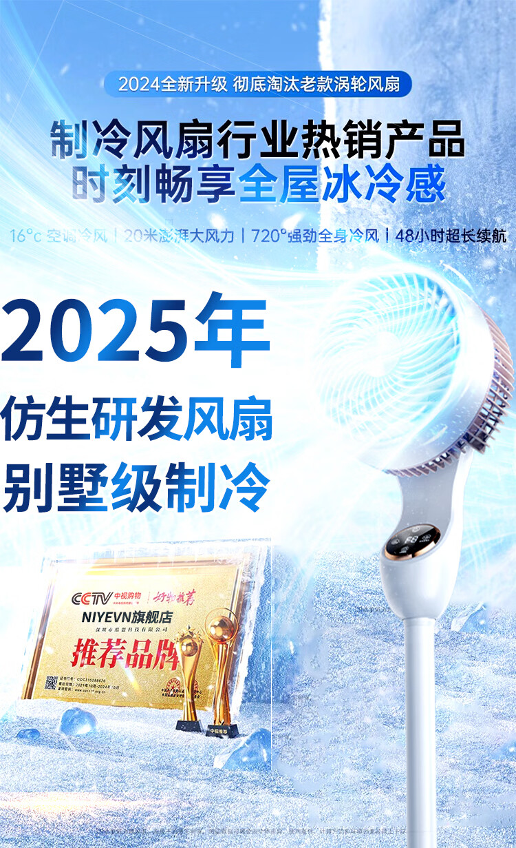 NIYEVN New AI Voice Research and Development丨AI Cool Wind King Silent Bedroom Electric Fan Ultra-Silent Level One Energy Efficiency Fan Refrigeration Air Conditioning Fan Household Floor Fan Air Circulation Fan Refrigeration Overlord NO.1-300m Global Cooling-Millions of Negative Ions Constant Cooling