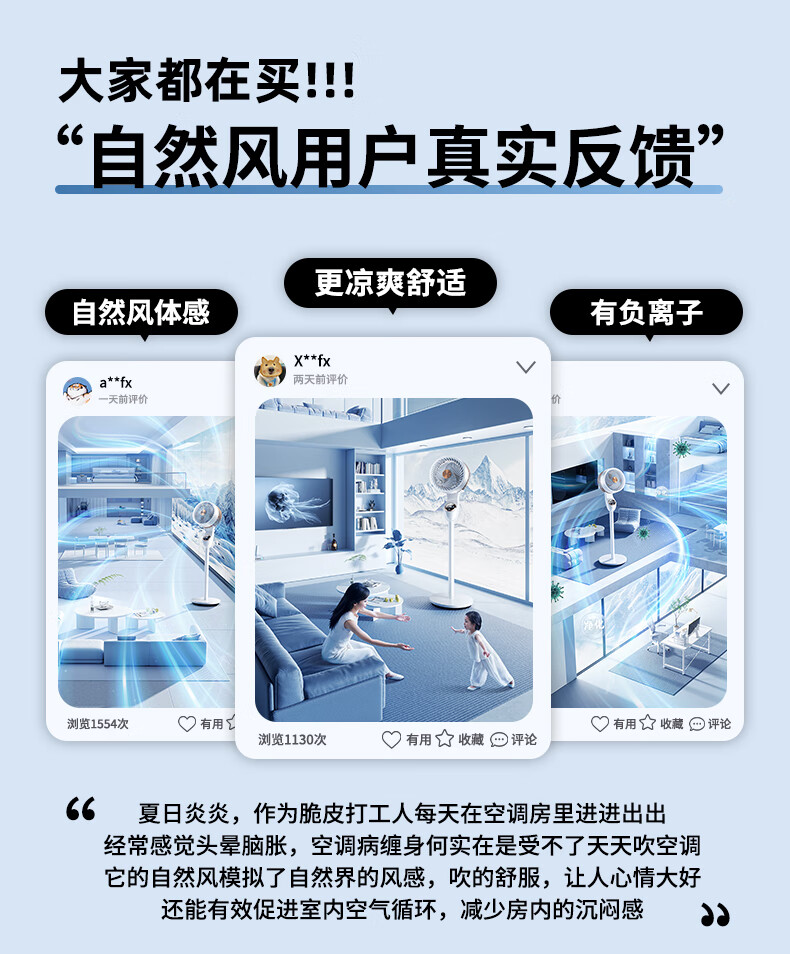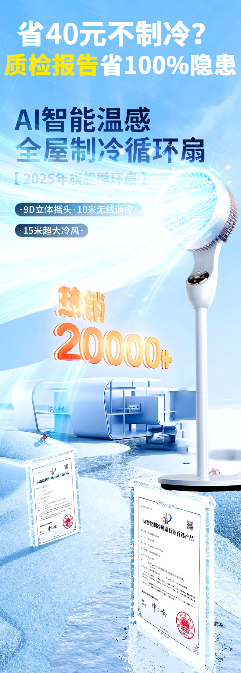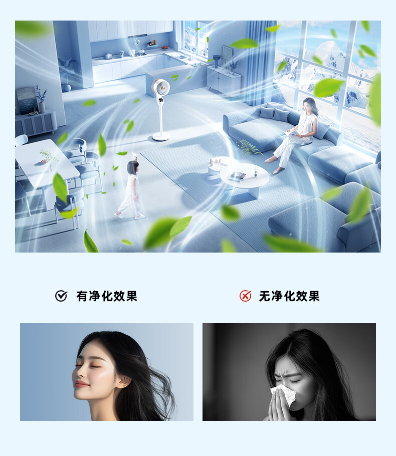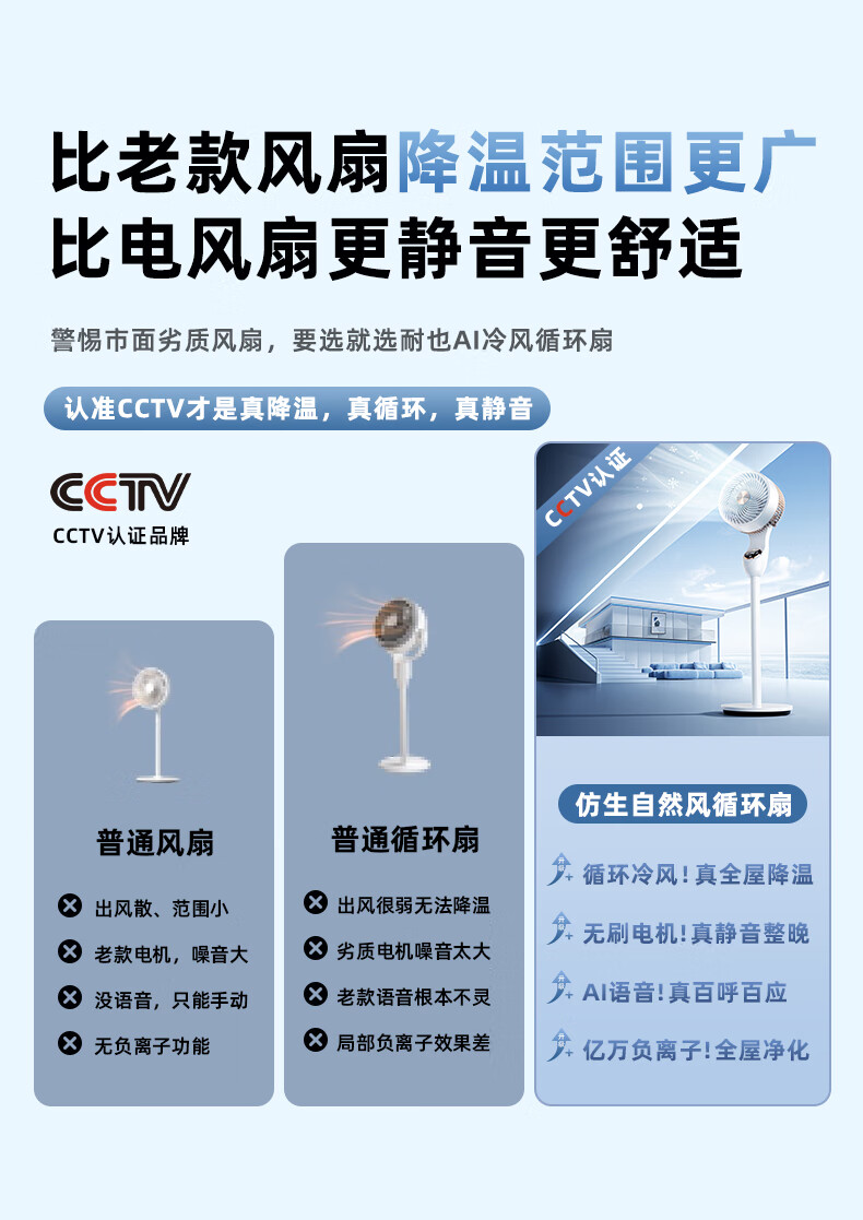 NIYEVN New AI Voice Research and Development丨AI Cool Wind King Silent Bedroom Electric Fan Ultra-Silent Level One Energy Efficiency Fan Refrigeration Air Conditioning Fan Household Floor Fan Air Circulation Fan Refrigeration Overlord NO.1-300m Global Cooling-Millions of Negative Ions Constant Cooling