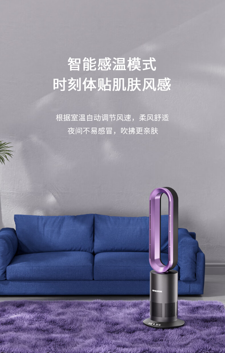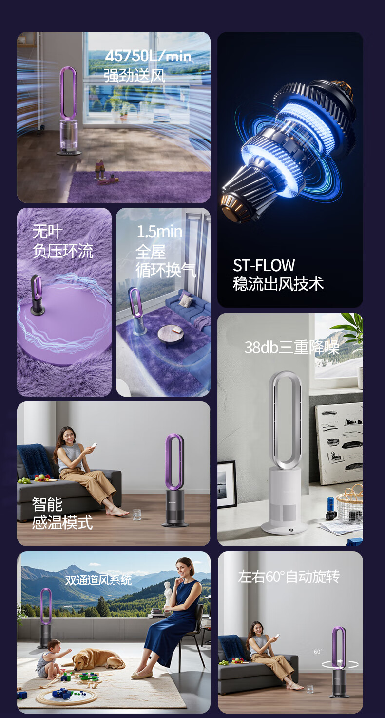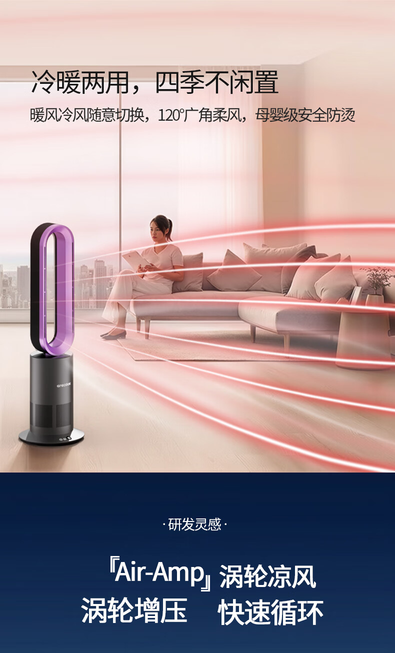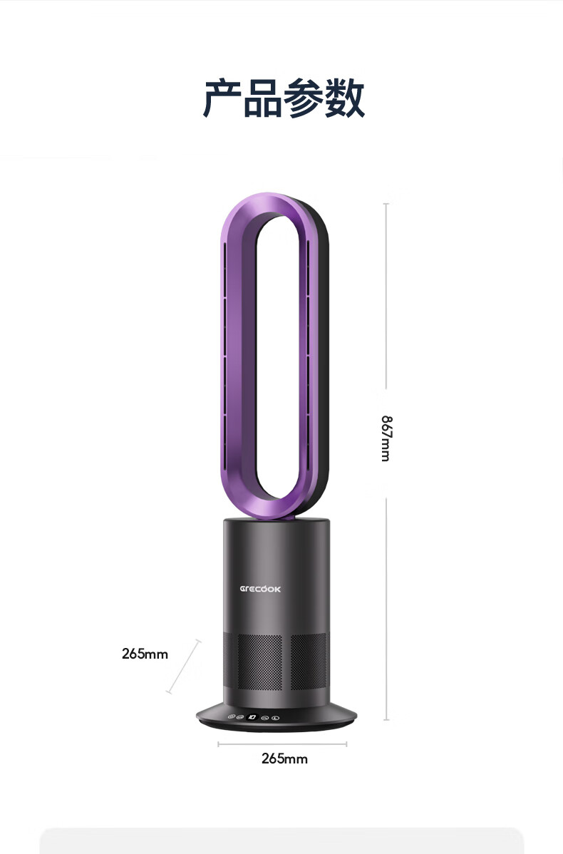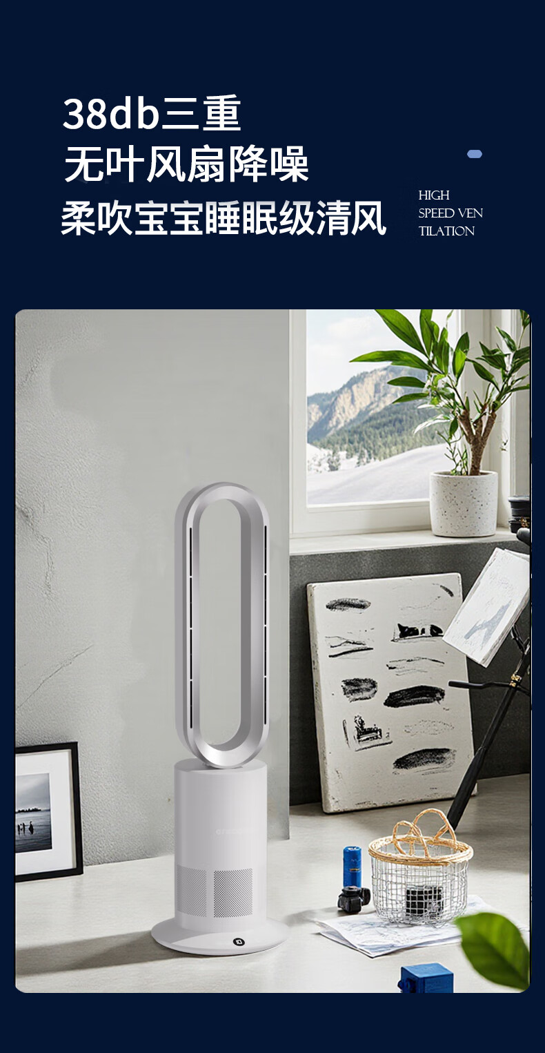 Geku Air bladeless fan cooling and heating dual-use electric fan household silent air purifier floor heater heater fast heating mother and baby remote control bedroom living room circulation fan TP-09Plus bladeless fan + heater + white silver