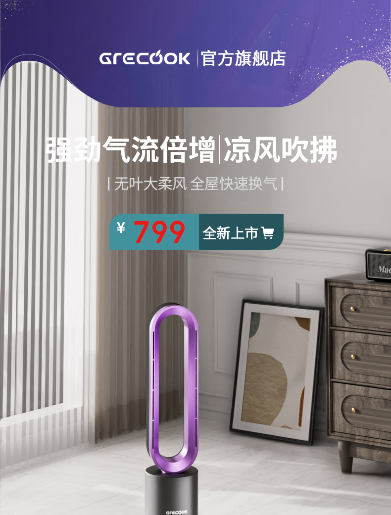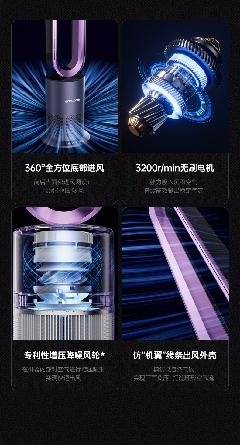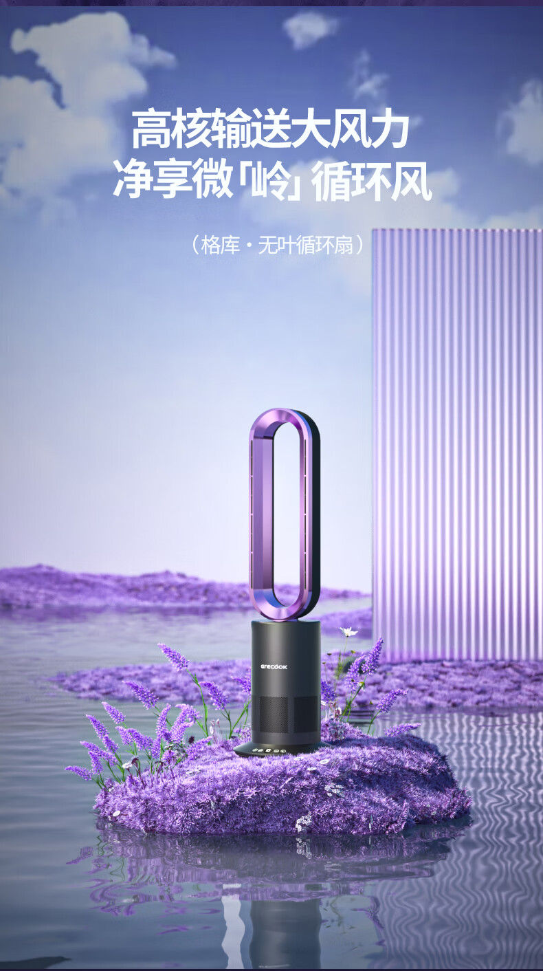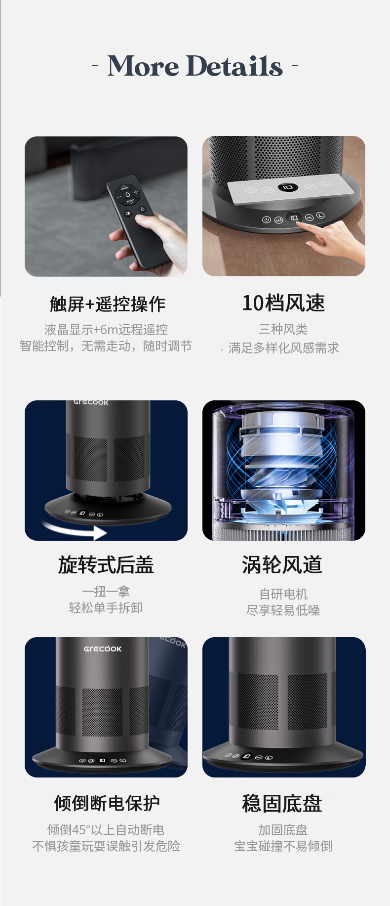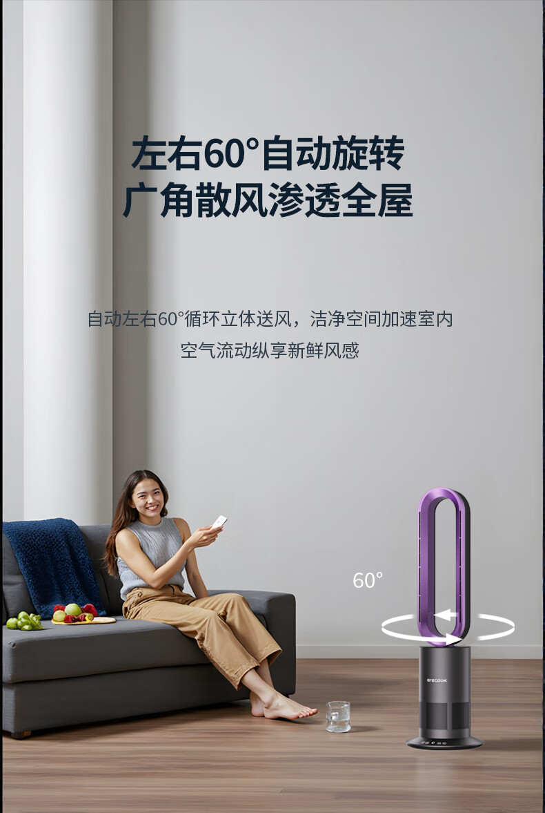 Geku Air bladeless fan cooling and heating dual-use electric fan household silent air purifier floor heater heater fast heating mother and baby remote control bedroom living room circulation fan TP-09Plus bladeless fan + heater + white silver