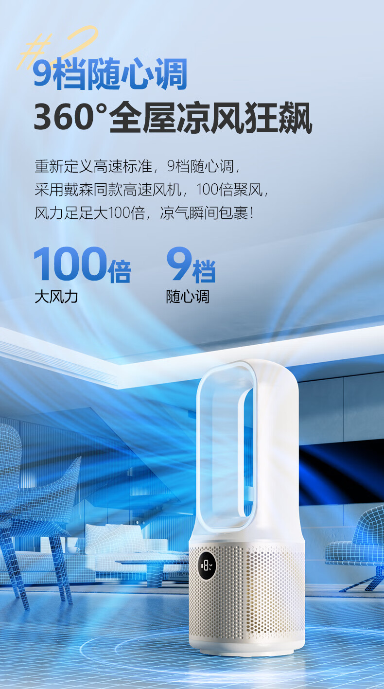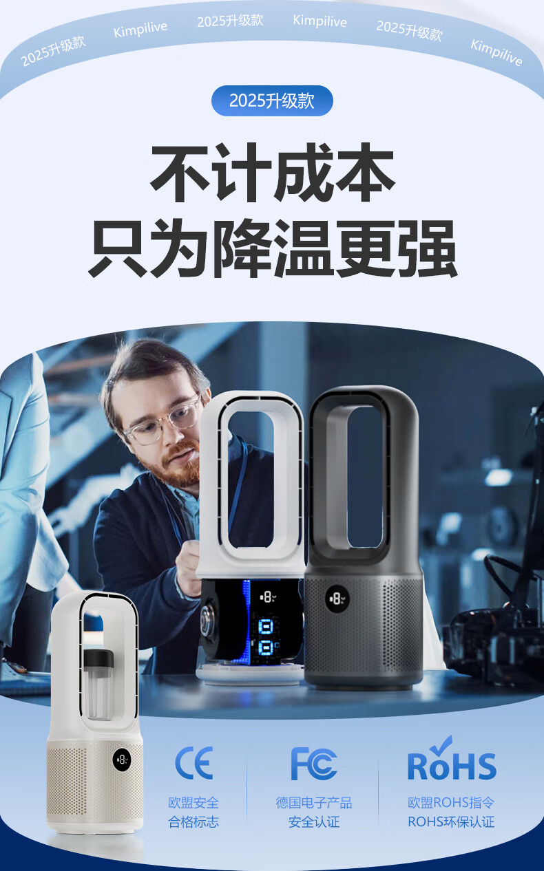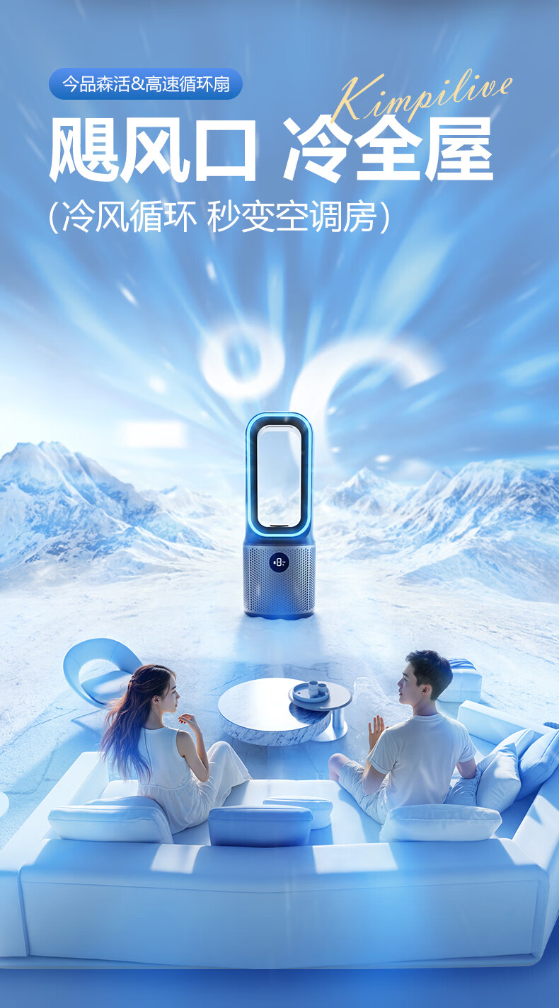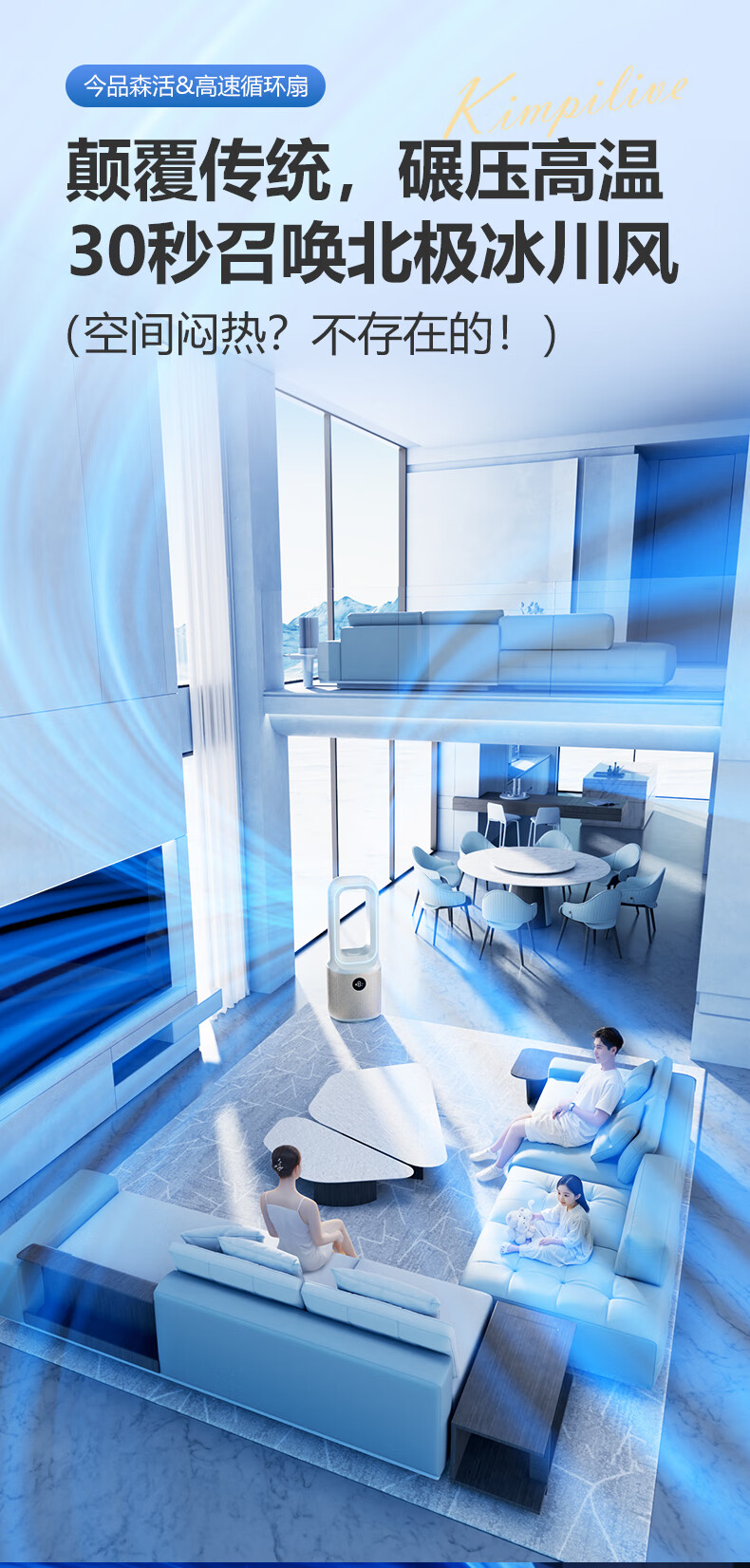 KIMPILIVE whole house circulating cold air air conditioner fan bladeless desktop electric fan small refrigeration home silent bedroom desktop dormitory office DC variable frequency circulation fan AI smart cooling instant cooling whole body | 9 levels of ice wind