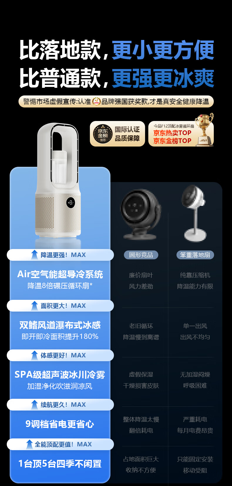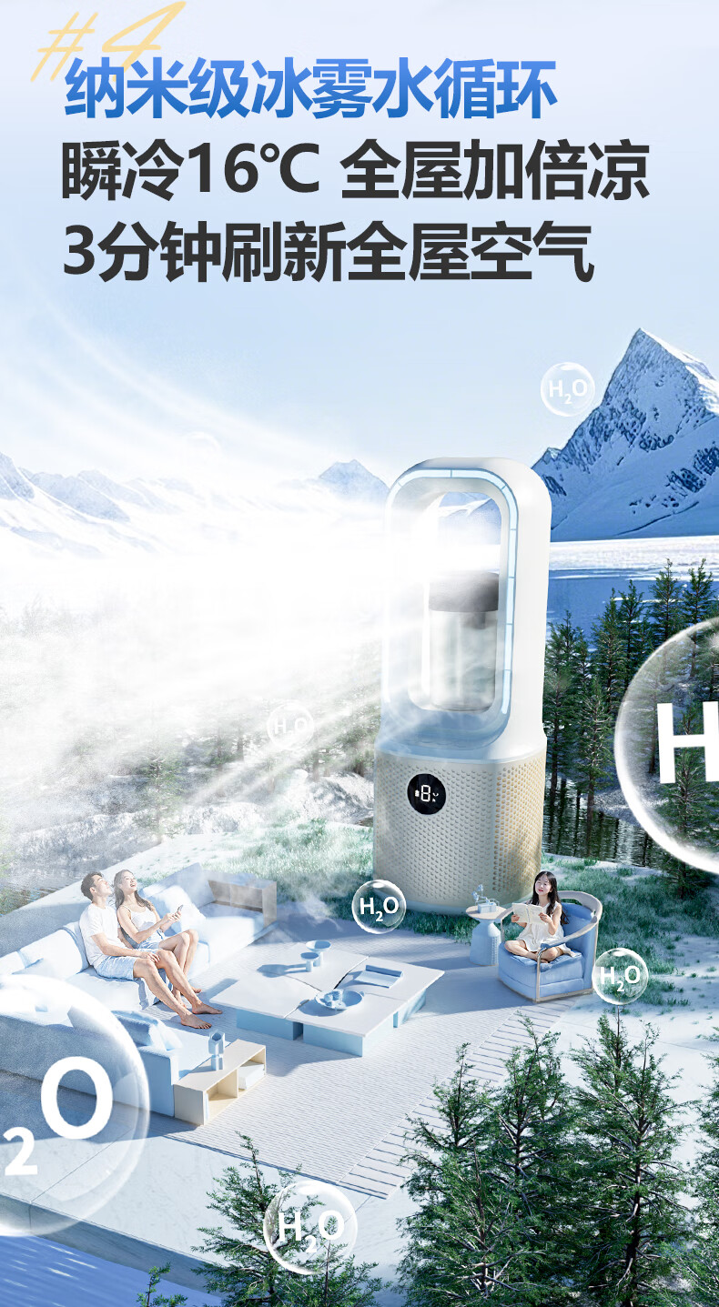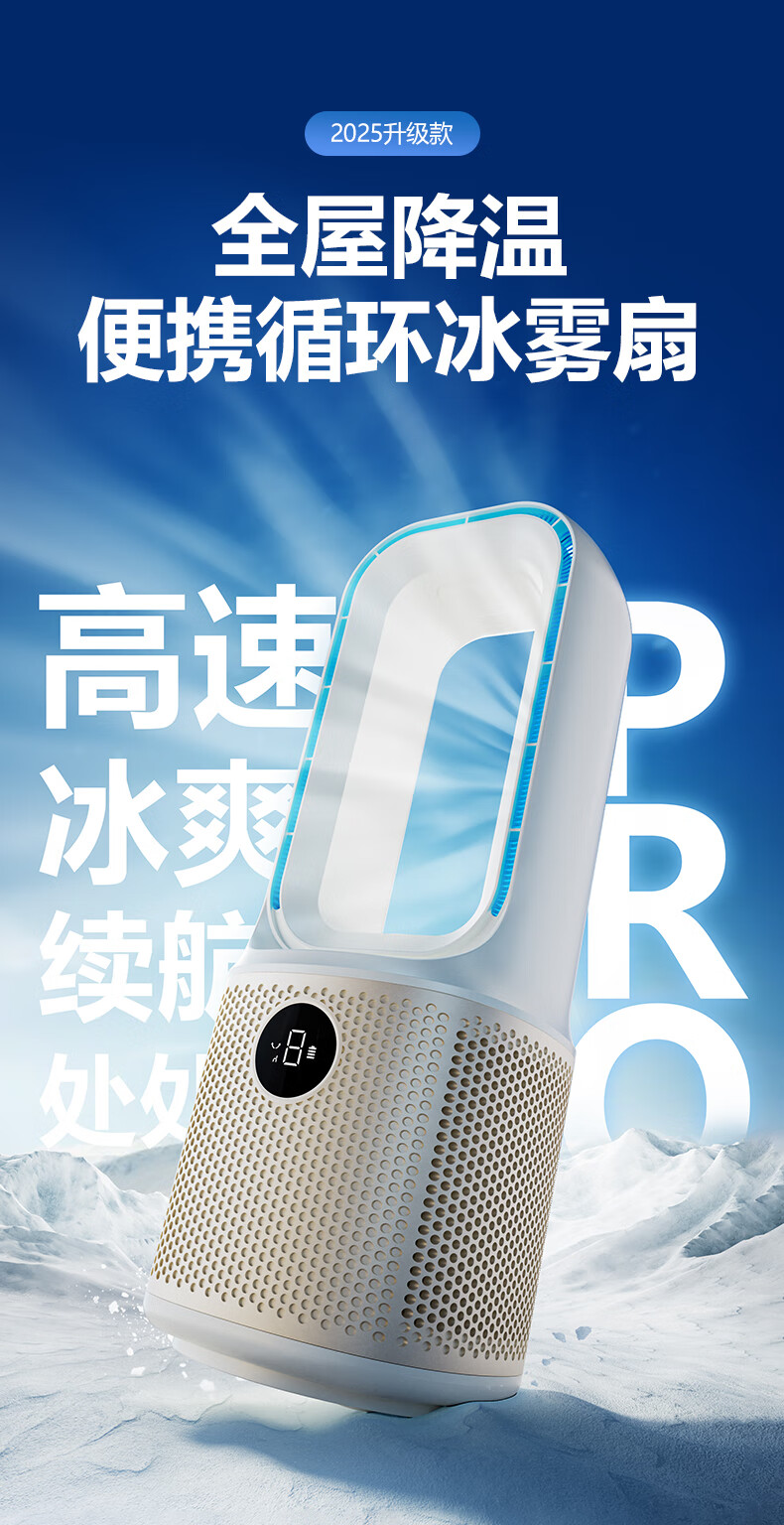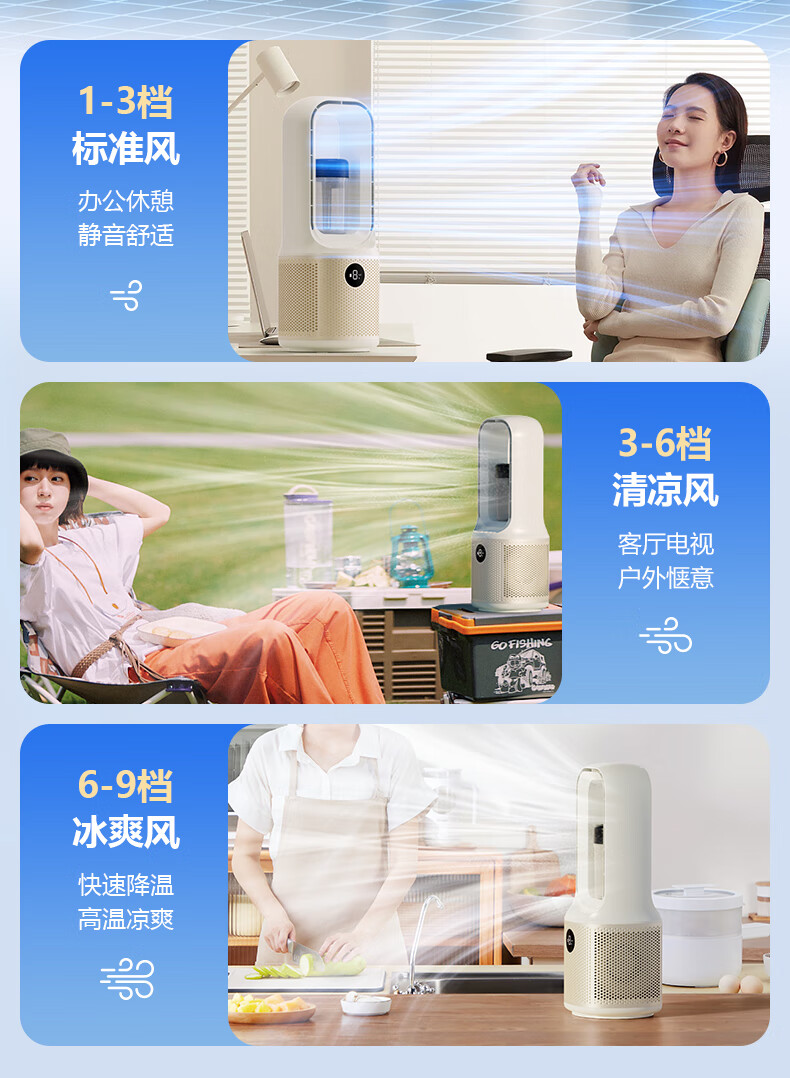 KIMPILIVE whole house circulating cold air air conditioner fan bladeless desktop electric fan small refrigeration home silent bedroom desktop dormitory office DC variable frequency circulation fan AI smart cooling instant cooling whole body | 9 levels of ice wind