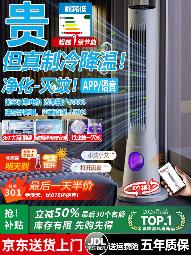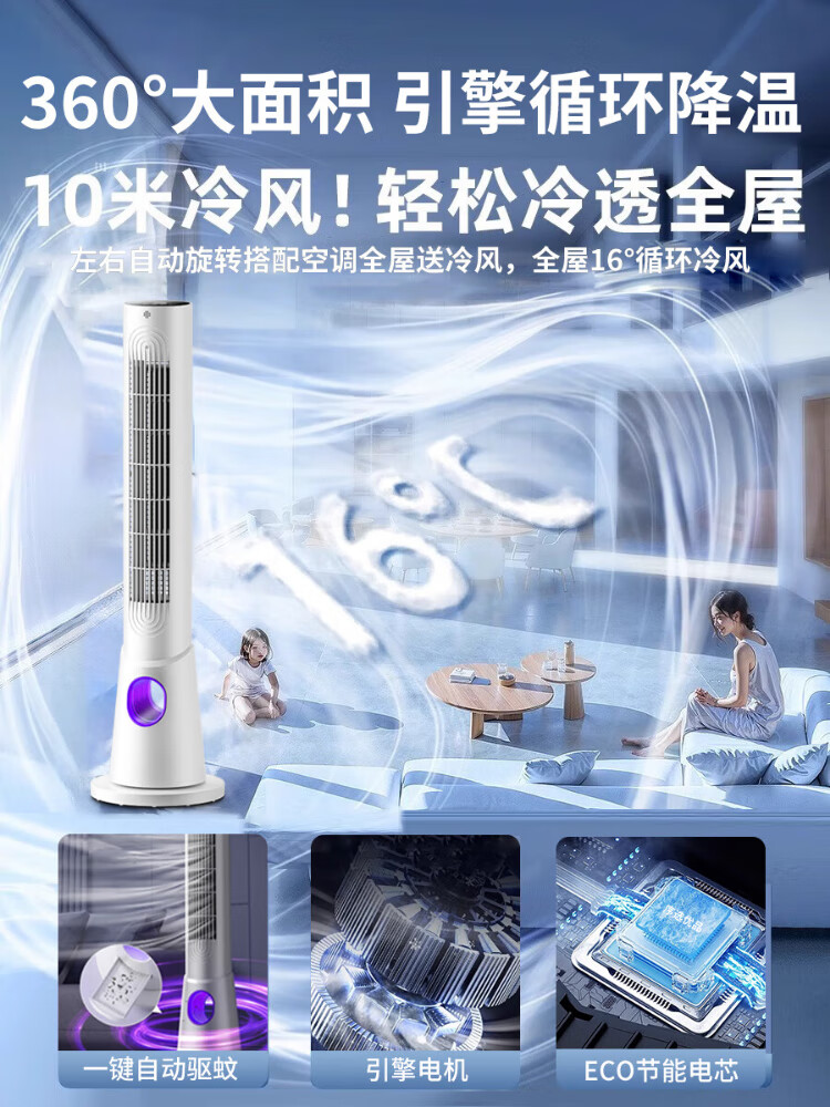 Selection of premium products, 25% subsidy, electric fan, floor-standing household air circulation fan, turbine refrigeration, bladeless tower type smart air conditioner, silent, energy-saving, with mosquito killer lamp, bedroom, living room, kitchen, heightened - three-dimensional shaking head/engine hurricane/silent/purification, the industry's only mosquito killer/second-level cooling/hot-selling NO.1/silent