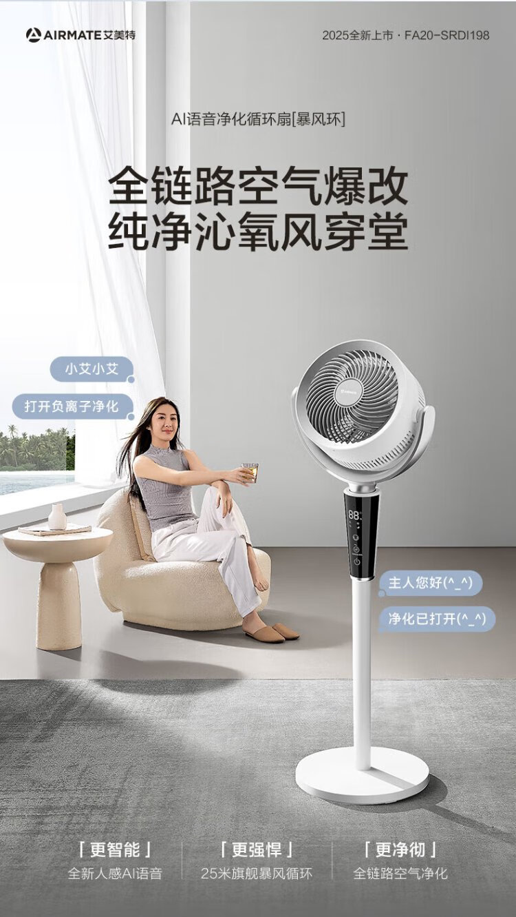 AIRMATE Intelligent Voice Air Circulation Fan Household Light Sound Energy Saving Level One Energy Efficiency 32-speed DC Variable Frequency Vertical Electric Fan Upgraded Filter Filter Negative Ions Purification High Wind Intelligent Voice Negative Ions + Filter Filter + 32-speed DC Level One Energy Efficiency