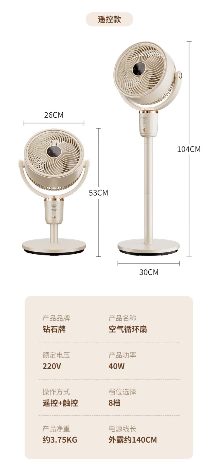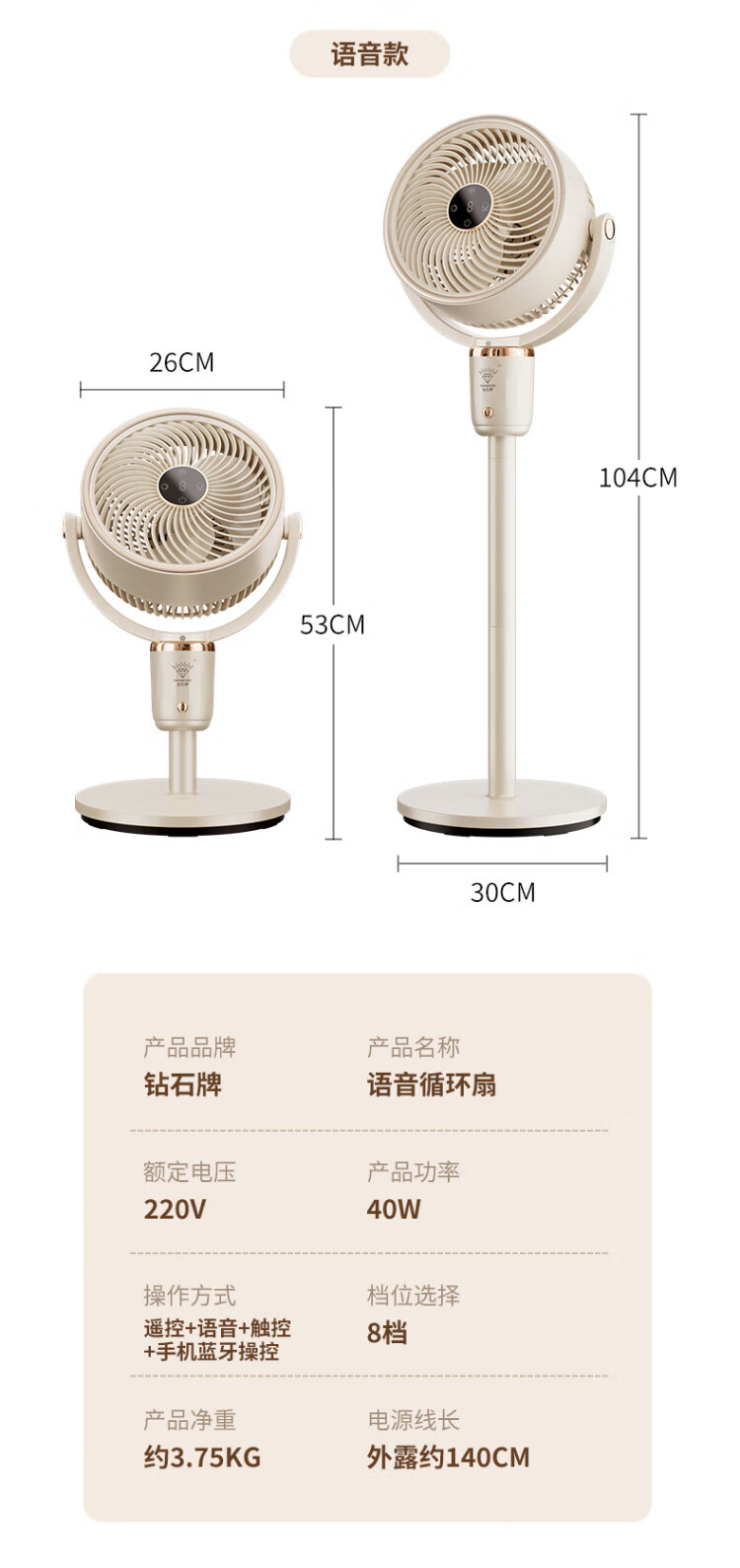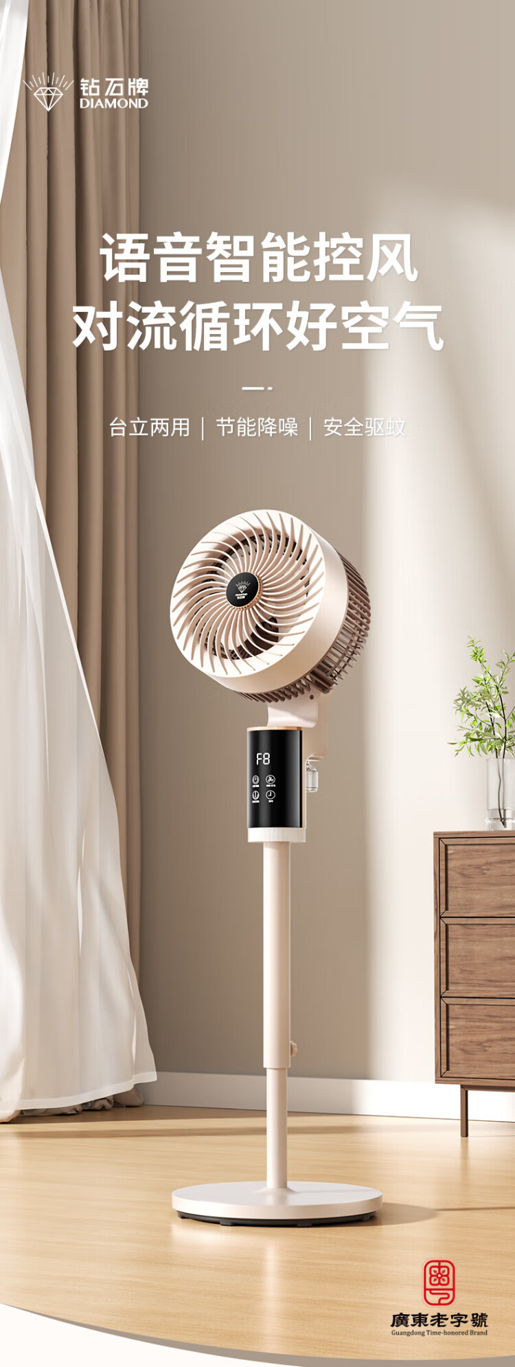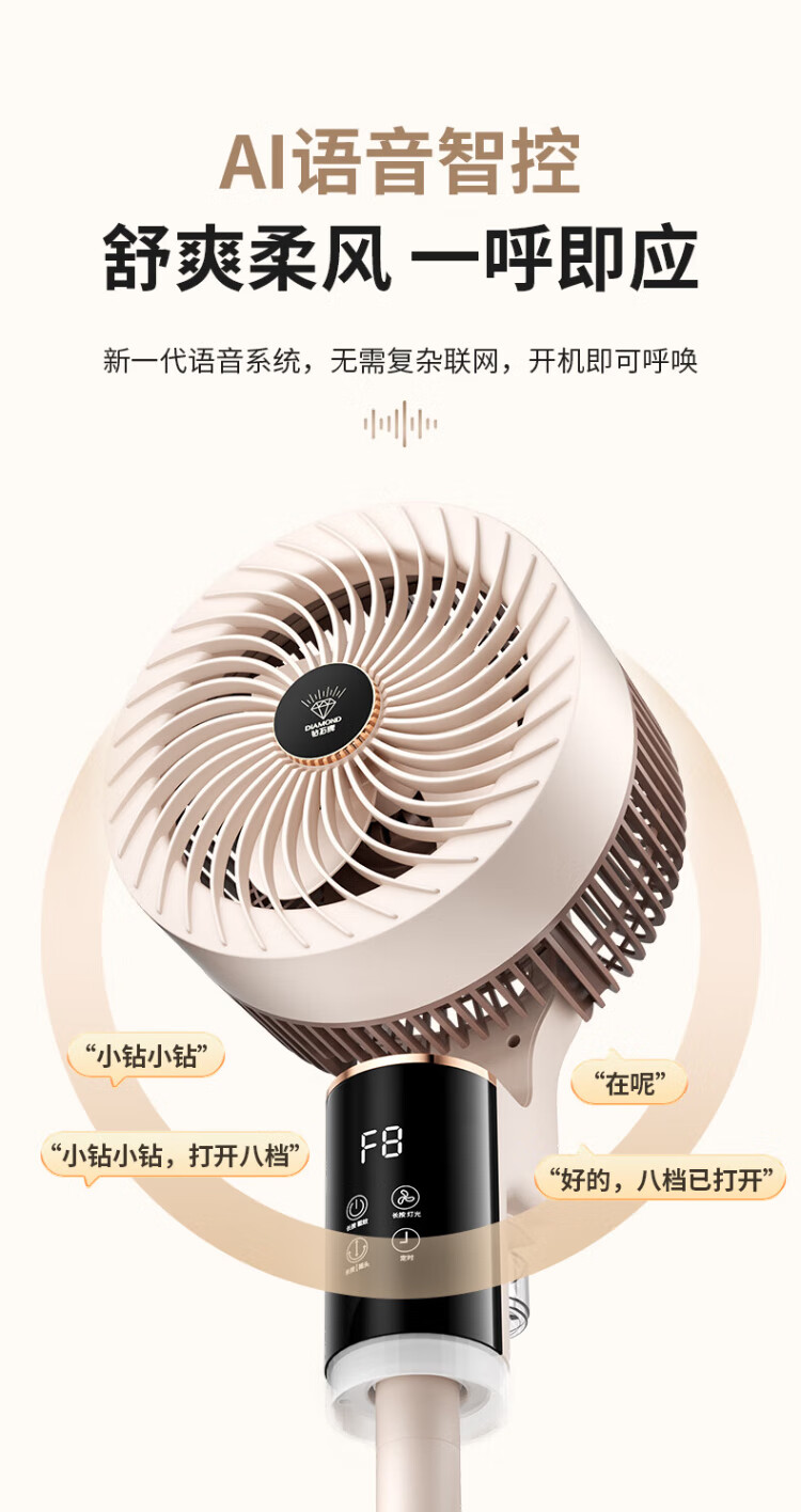 DIAMOND electric fan air circulation fan floor fan home bedroom fan living room dormitory restaurant voice remote control timing low noise smart fan large air volume variable frequency circulation fan-Yashijin AI voice remote control