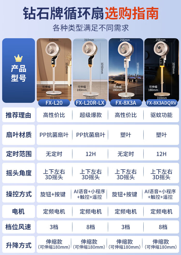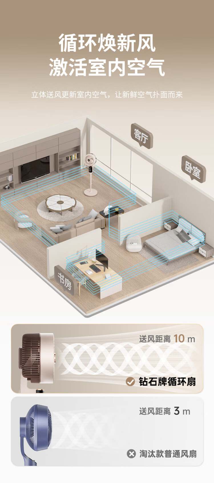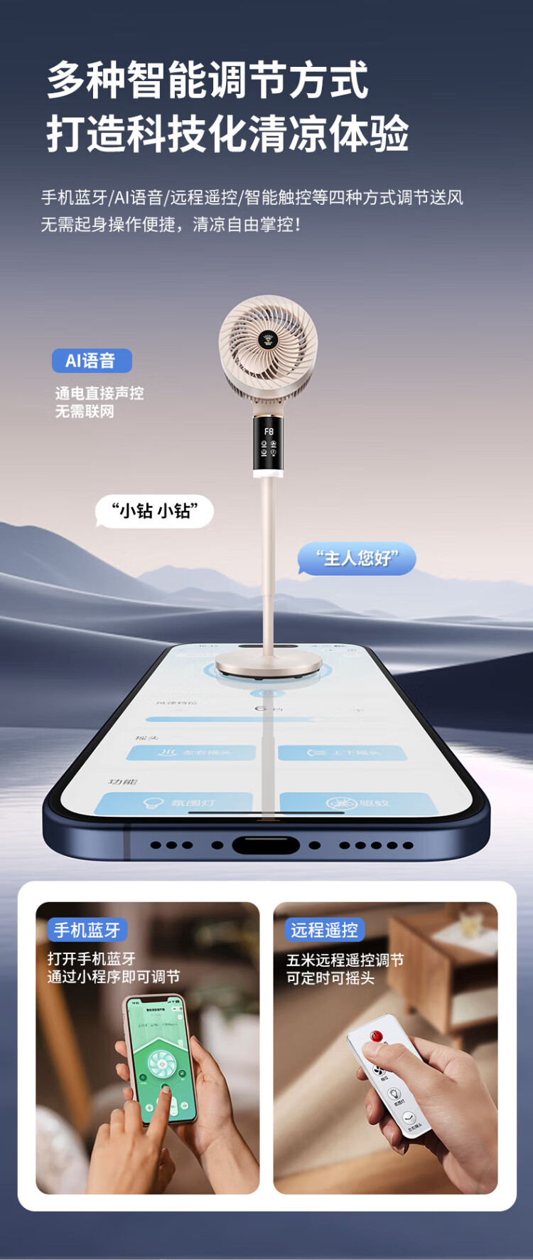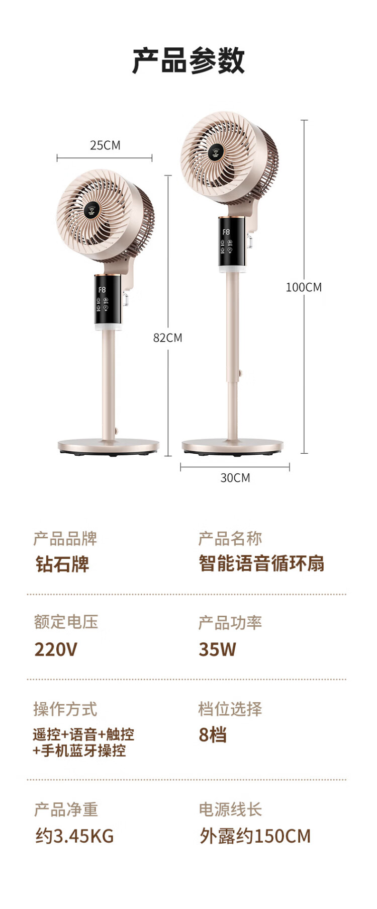 DIAMOND electric fan air circulation fan floor fan home bedroom fan living room dormitory restaurant voice remote control timing low noise smart fan large air volume variable frequency circulation fan-Yashijin AI voice remote control