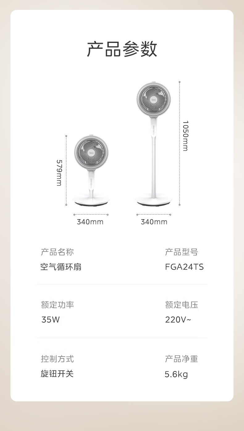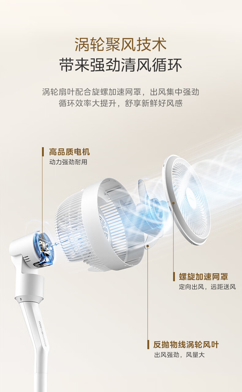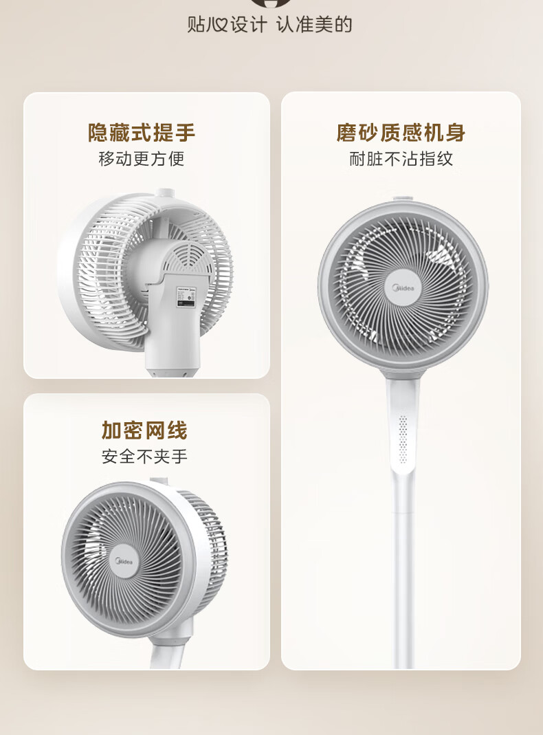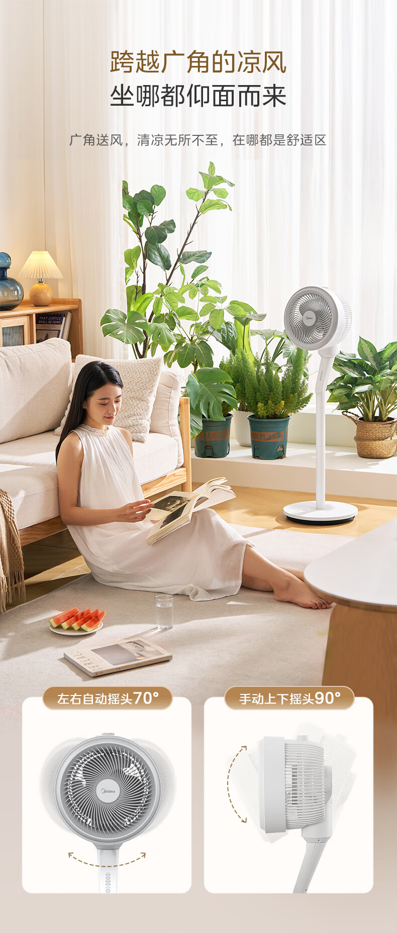 Midea Air Circulation Fan High Wind Desktop Vertical Dual-Purpose Light Sound Floor Standing Bladeless Electric Fan Storm Aromatherapy Mosquito Repellent DC Frequency Shaking Shaking Air Purifier Fan Heating and Cooling Antibacterial WIFI Touch Screen Remote Control Fresh Air for the Whole House