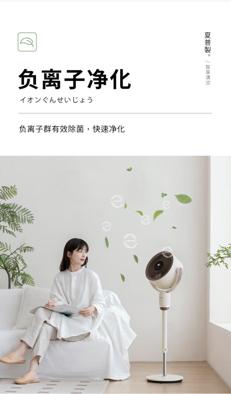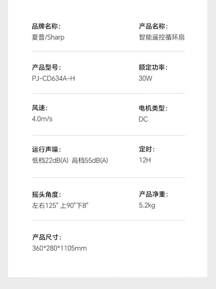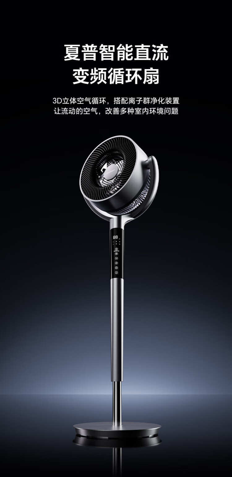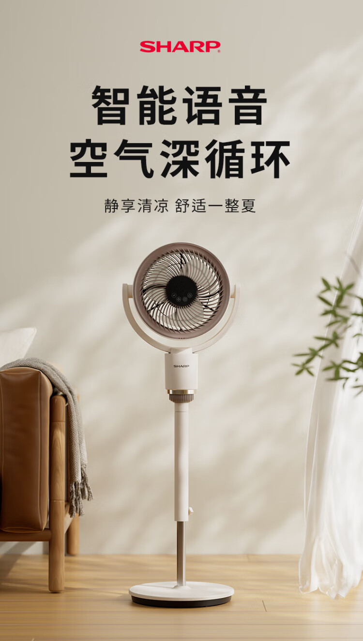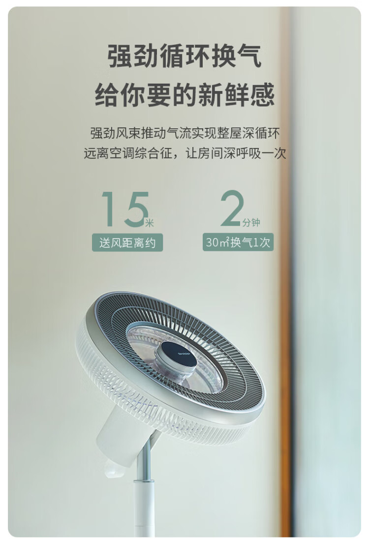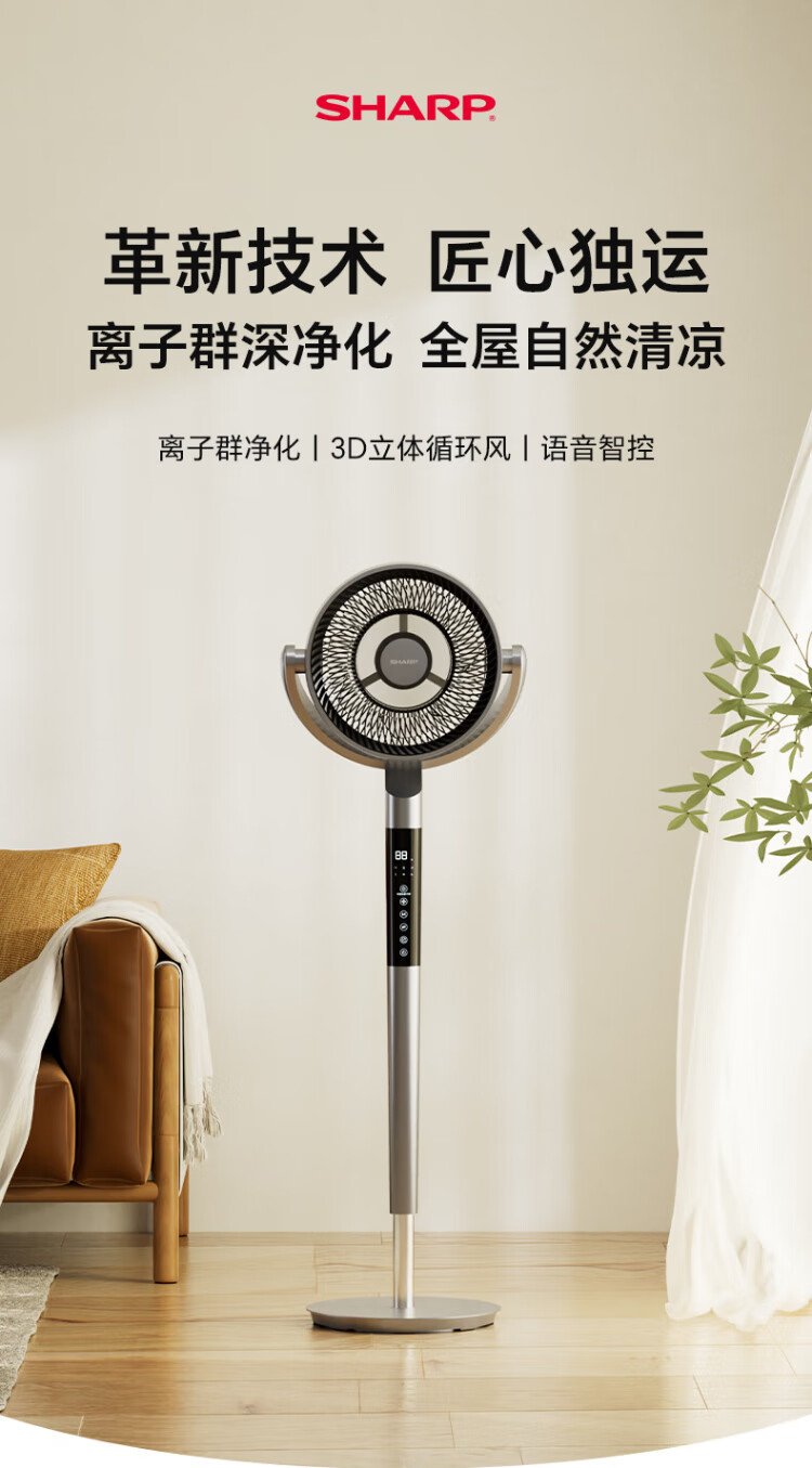Sharp Air Circulation Fan Electric Fan Floor Fan Automatic Shaking Shaking DC Frequency Converter Light Sound No Noise Taiwan Standalone Intelligent Voice Remote Control Timing Ventilation Fan Convection Turbine Fan PJ-CD634A-H Voice + Ion Group Purification + Ambient Light
