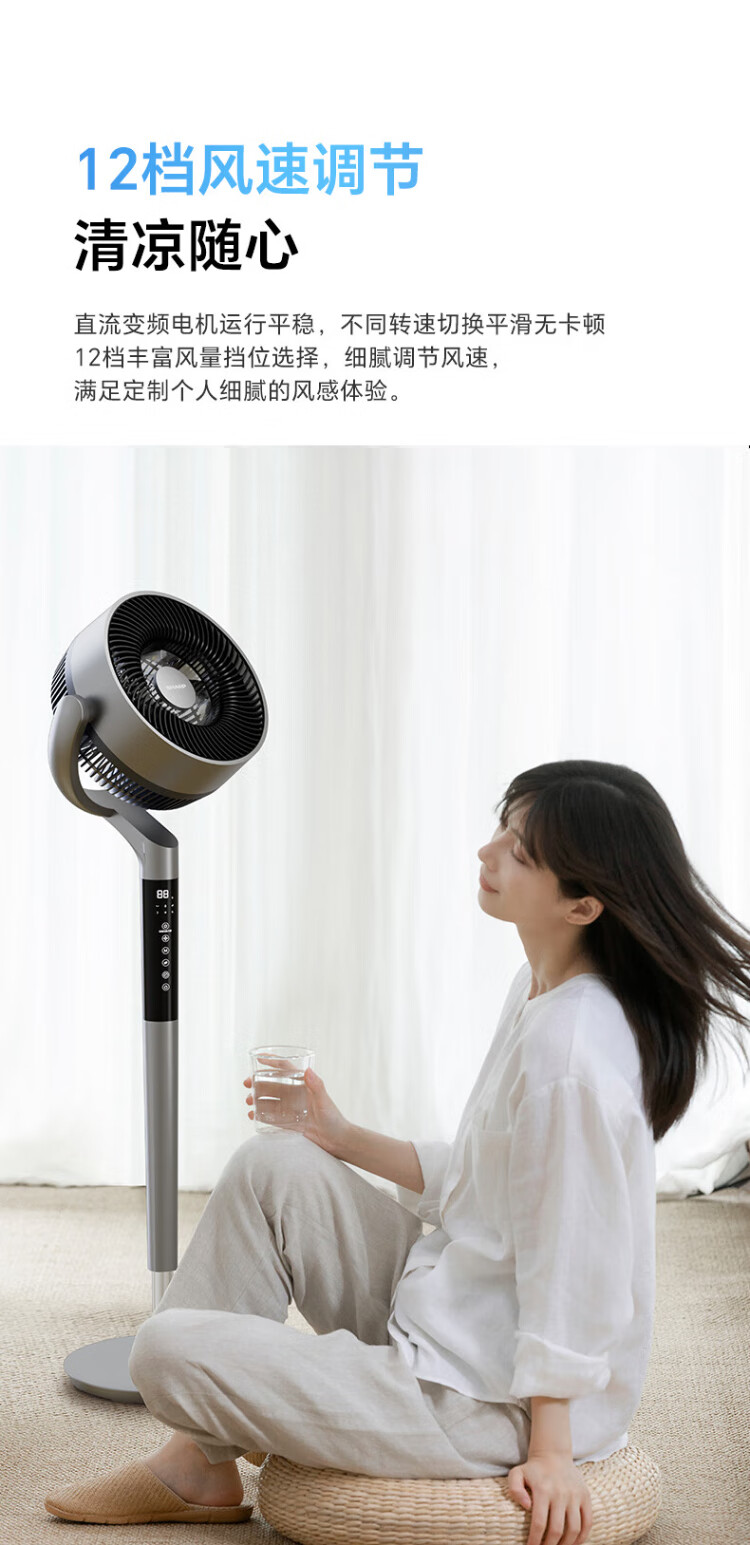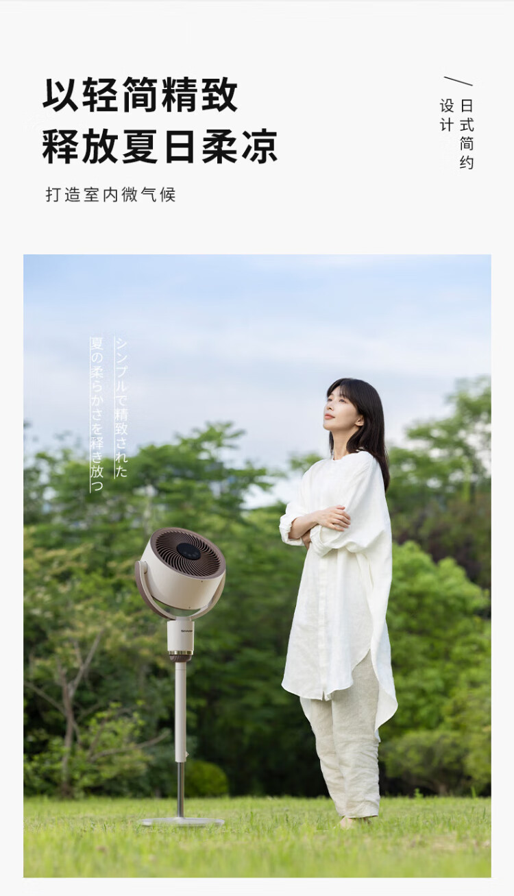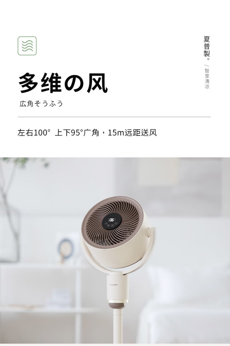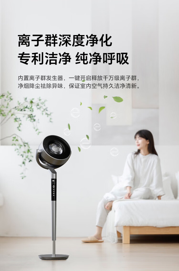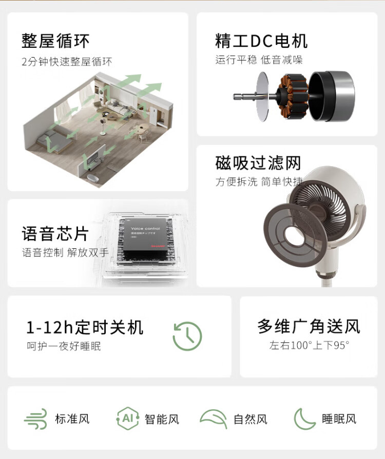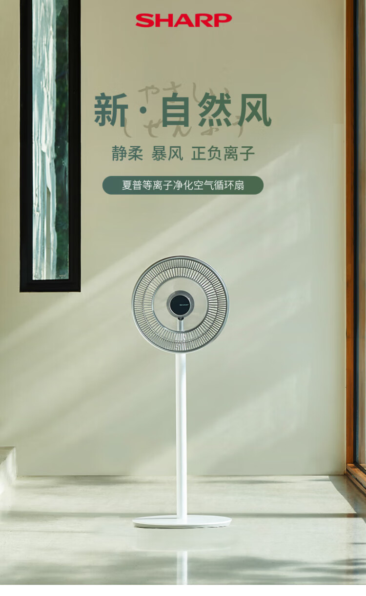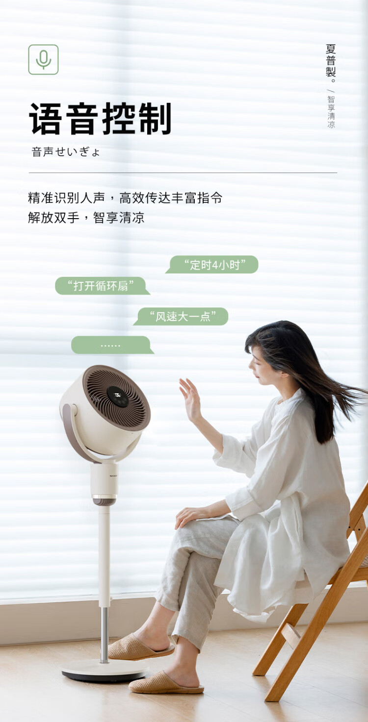 Sharp Air Circulation Fan Electric Fan Floor Fan Automatic Shaking Shaking DC Frequency Converter Light Sound No Noise Taiwan Standalone Intelligent Voice Remote Control Timing Ventilation Fan Convection Turbine Fan PJ-CD634A-H Voice + Ion Group Purification + Ambient Light