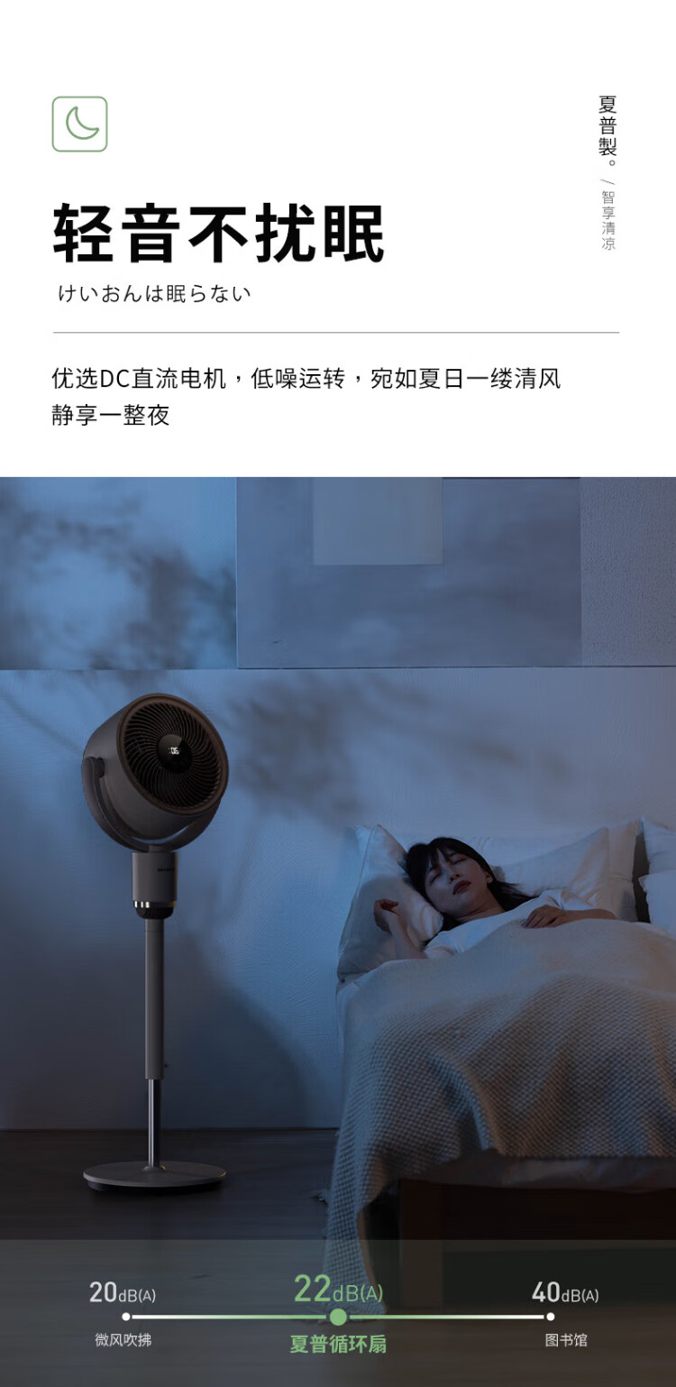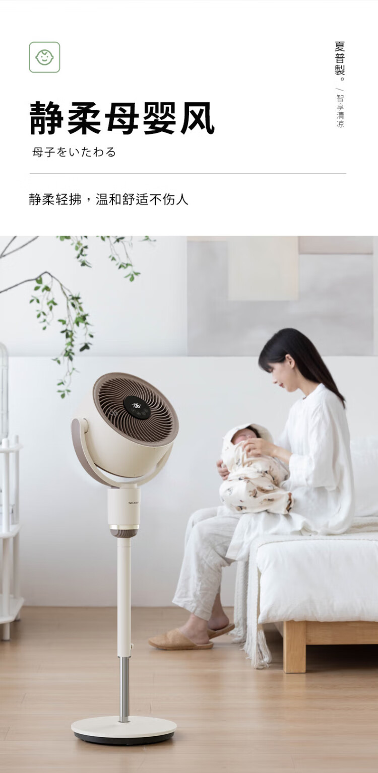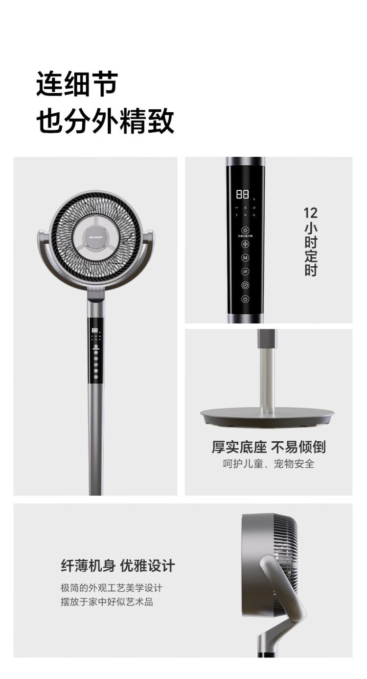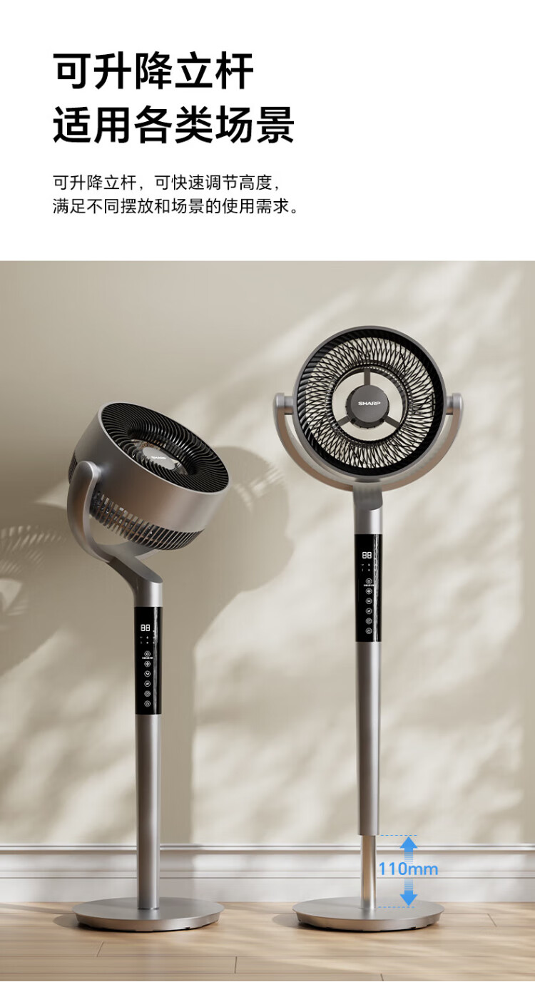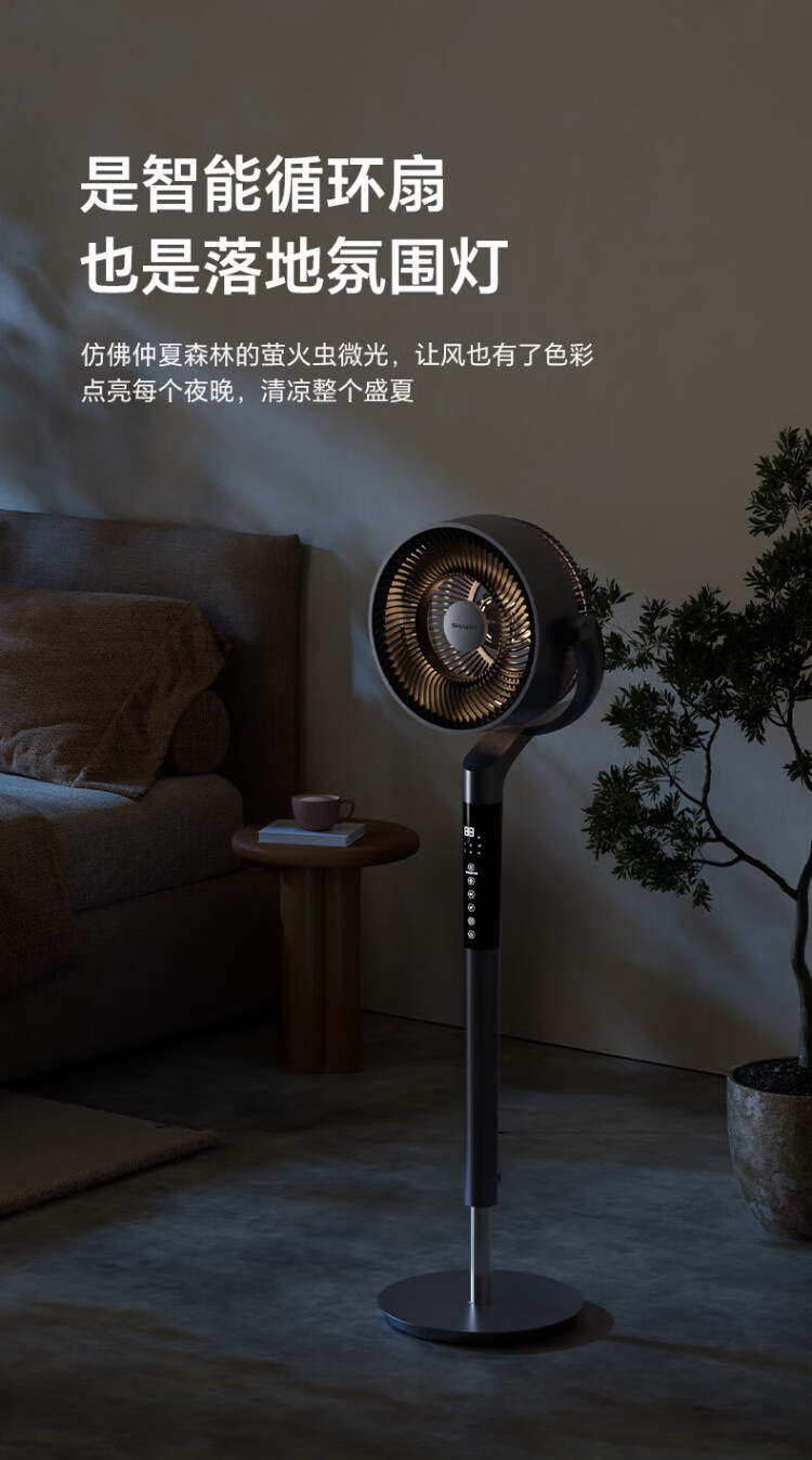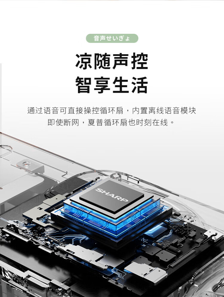 Sharp Air Circulation Fan Electric Fan Floor Fan Automatic Shaking Shaking DC Frequency Converter Light Sound No Noise Taiwan Standalone Intelligent Voice Remote Control Timing Ventilation Fan Convection Turbine Fan PJ-CD634A-H Voice + Ion Group Purification + Ambient Light