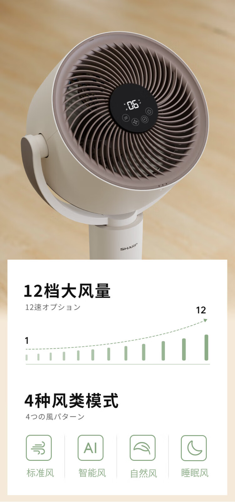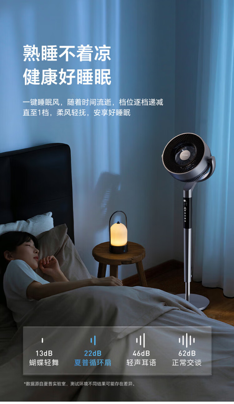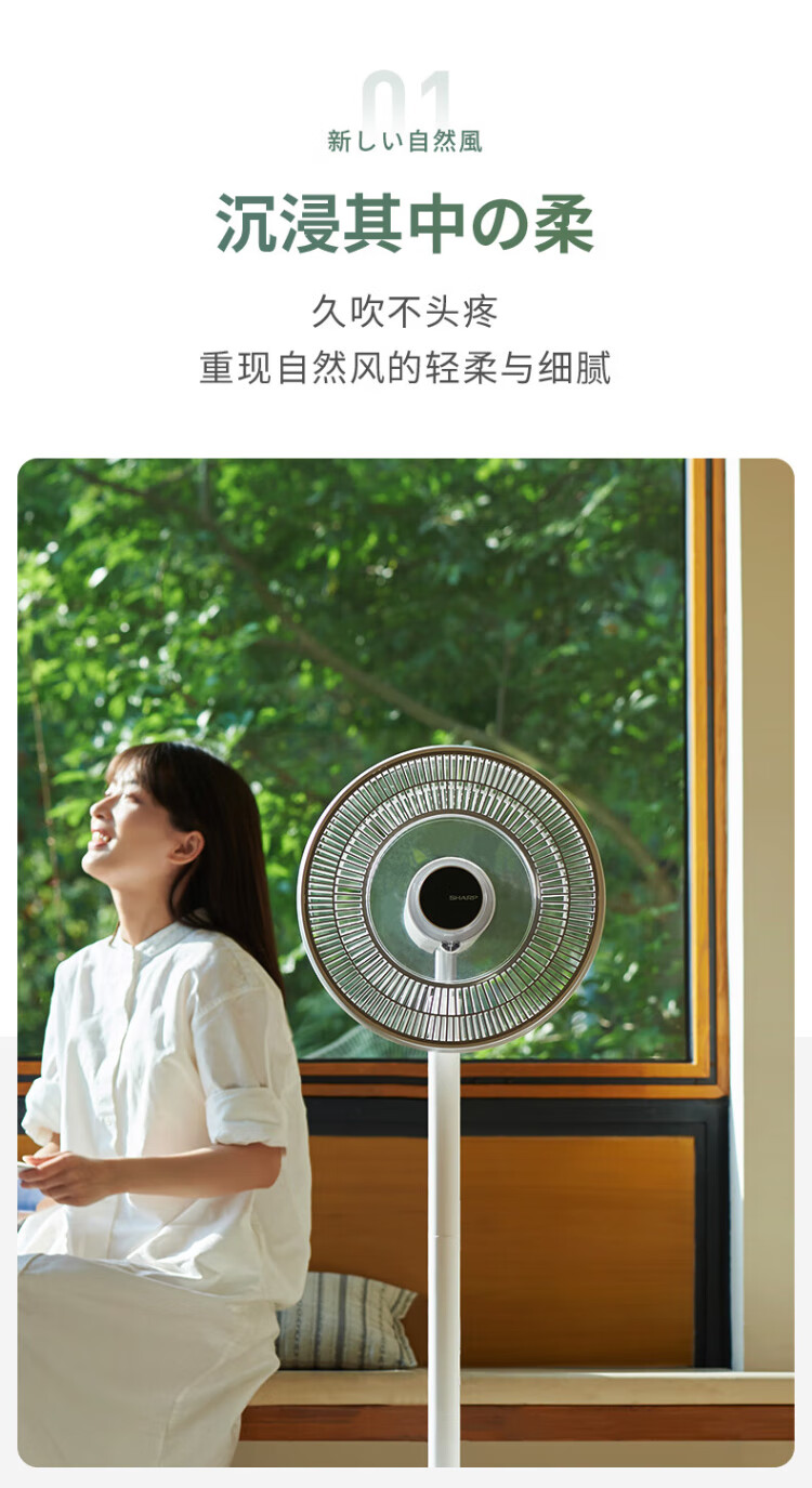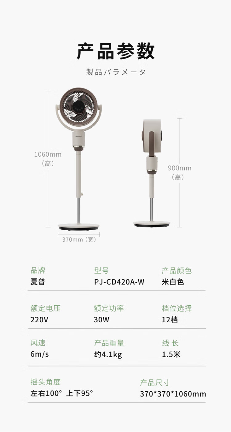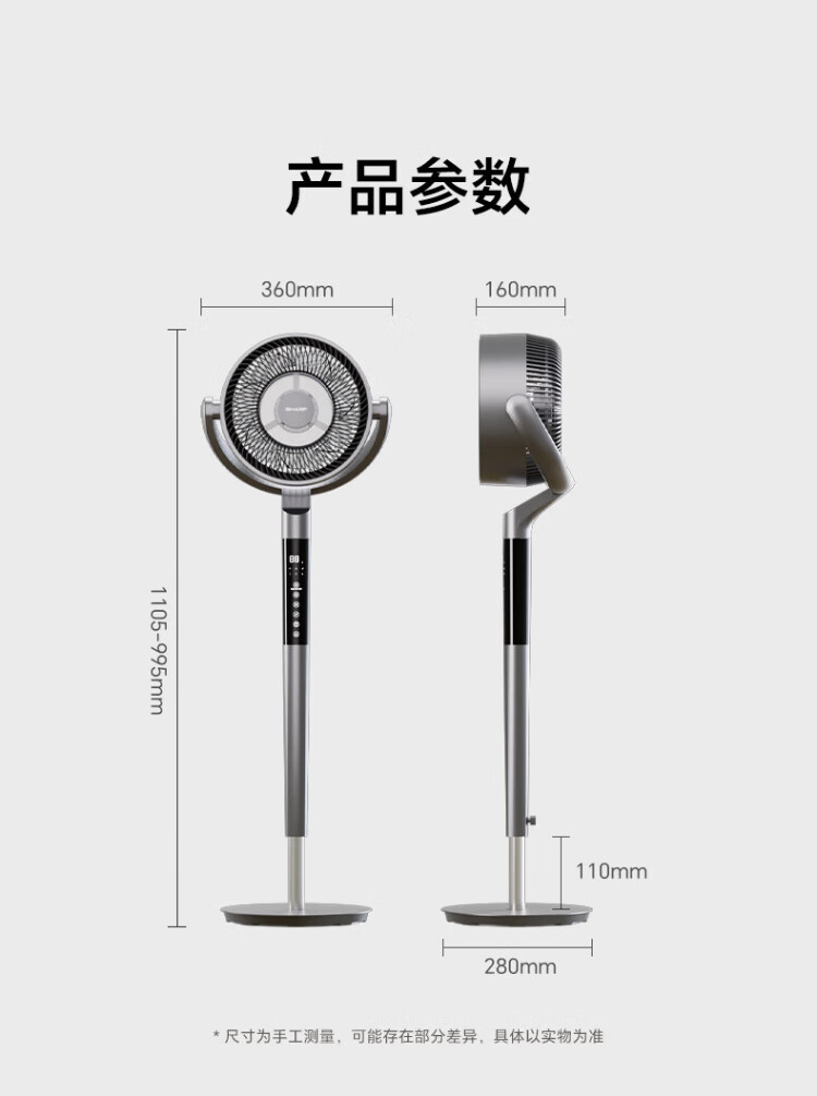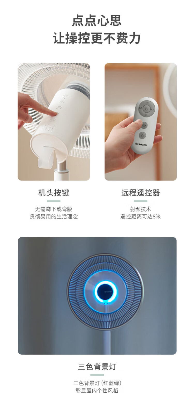 Sharp Air Circulation Fan Electric Fan Floor Fan Automatic Shaking Shaking DC Frequency Converter Light Sound No Noise Taiwan Standalone Intelligent Voice Remote Control Timing Ventilation Fan Convection Turbine Fan PJ-CD634A-H Voice + Ion Group Purification + Ambient Light
