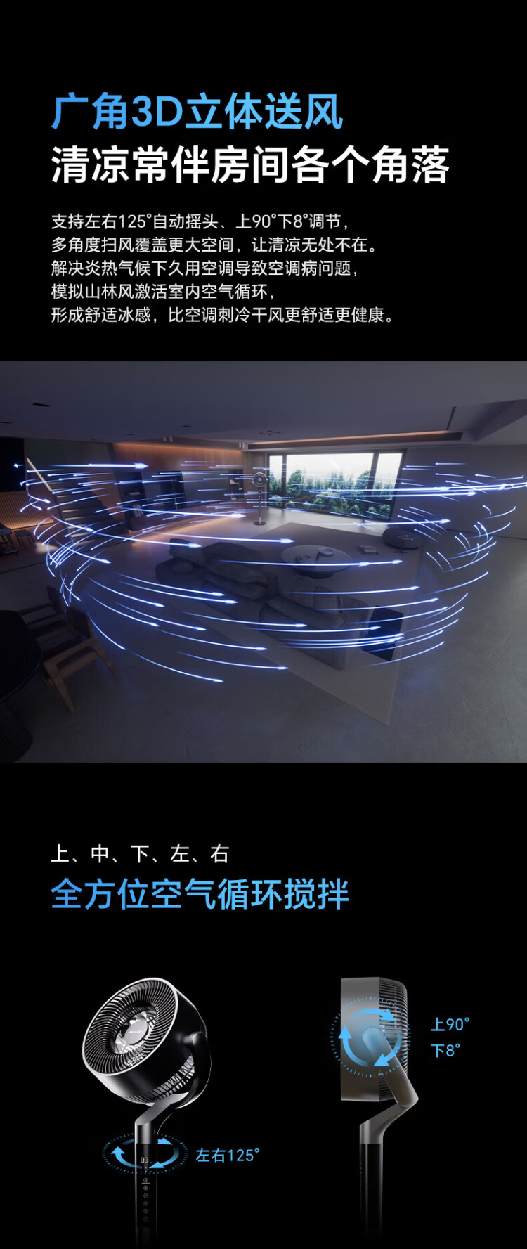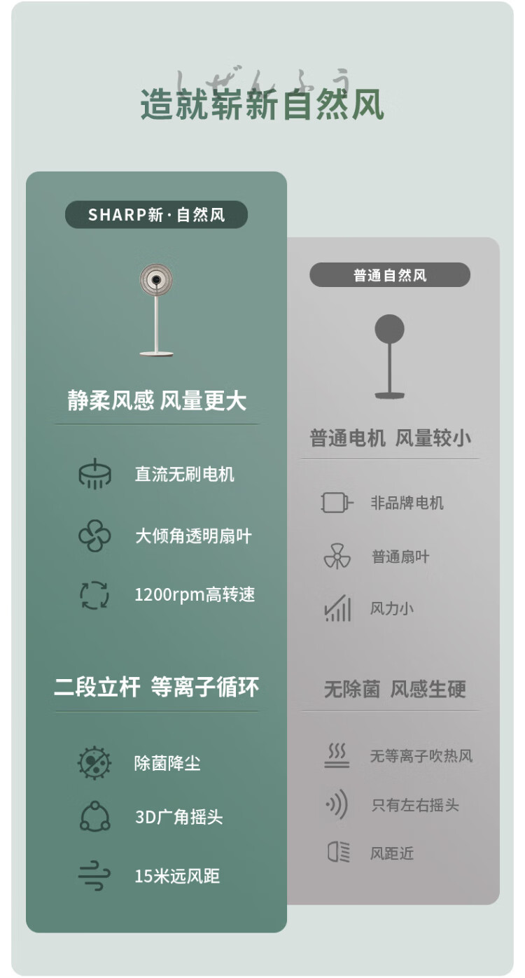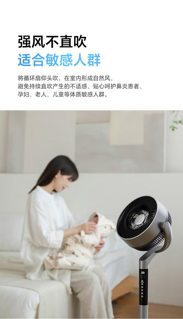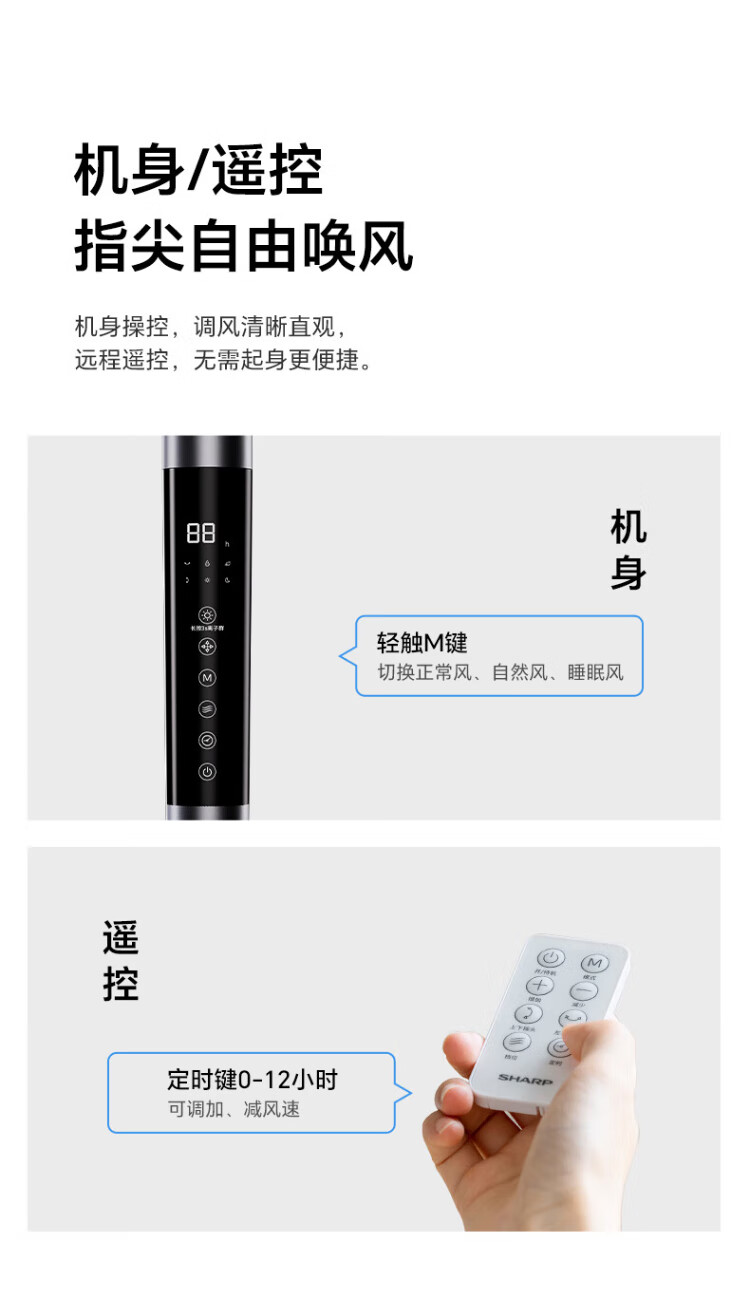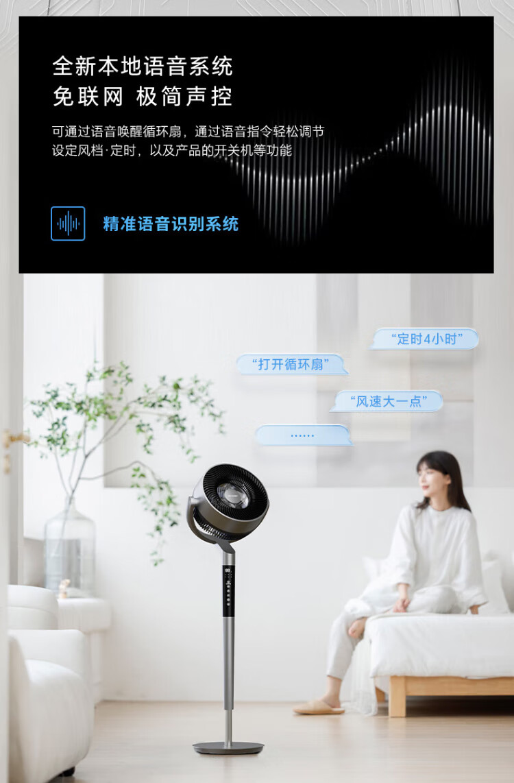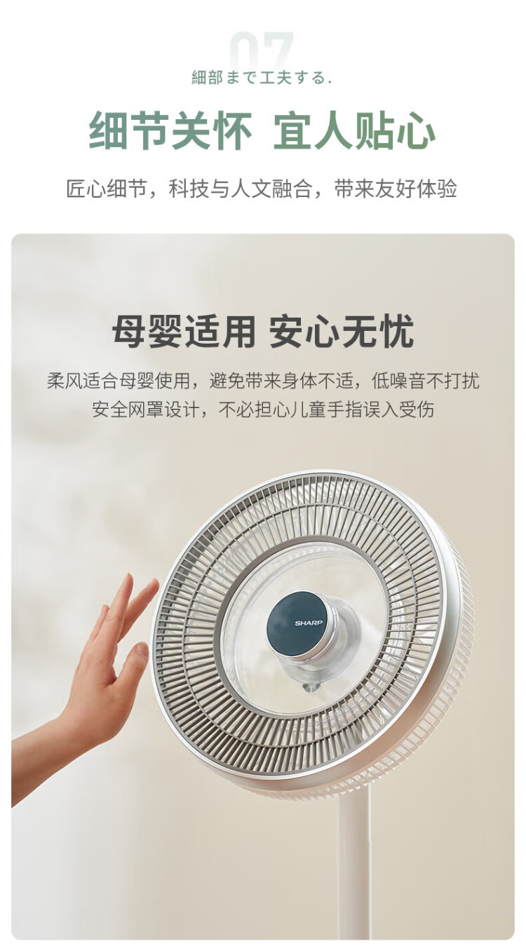 Sharp Air Circulation Fan Electric Fan Floor Fan Automatic Shaking Shaking DC Frequency Converter Light Sound No Noise Taiwan Standalone Intelligent Voice Remote Control Timing Ventilation Fan Convection Turbine Fan PJ-CD634A-H Voice + Ion Group Purification + Ambient Light