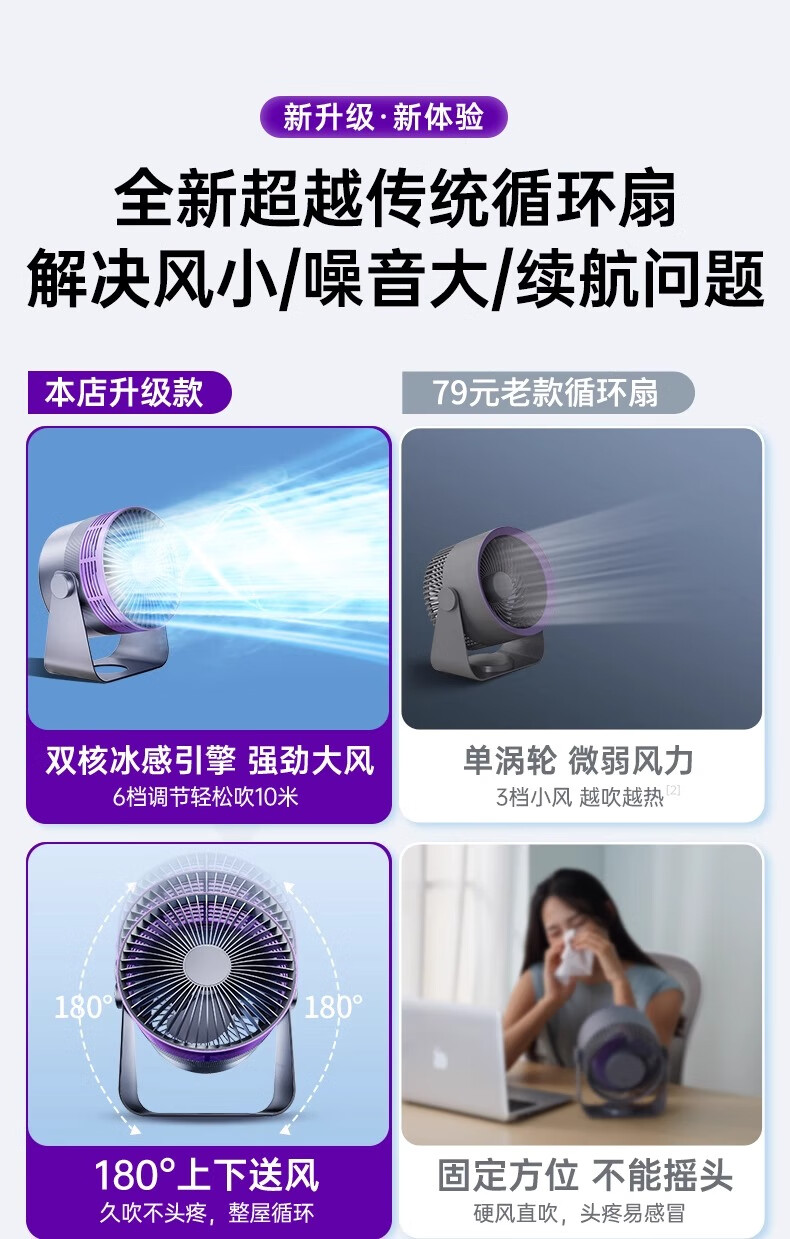 NIYEVN Superconducting Steel Cannon丨Full Body Cooling Desktop Small Fan Small Refrigeration Air Conditioning Fan Electric Fan Home Air Circulation Fan USB Office Dormitory Silent Level 1 Energy Efficiency Plug-in Version/Deep Blue-Air Conditioning Grade Cold Wind-Cooling 400%-Silent and Power Saving