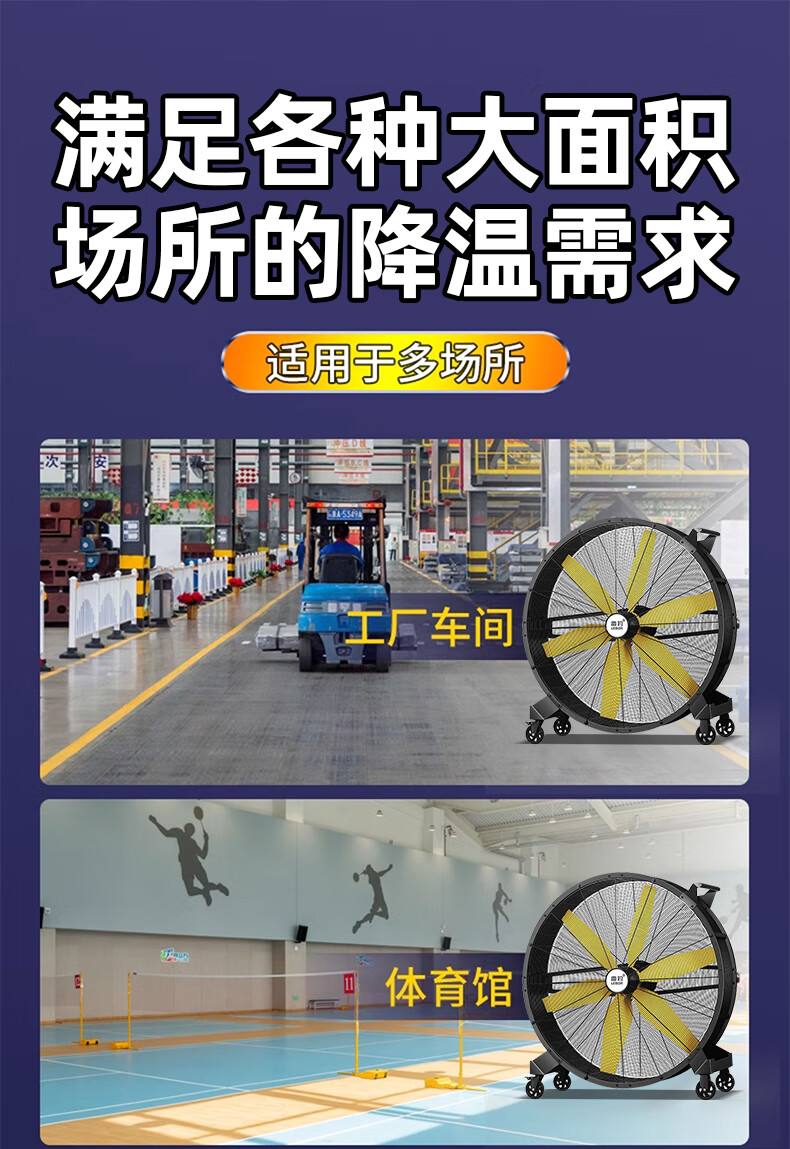 LEBON Industrial Fan Powerful Oversized Floor-standing Fan Permanent Magnet Brushless Industrial Large Fan Arena Workshop Warehouse Large Fan Hand-Push Removable Large Fan Large Electric Fan 1080 Large Fan | DC Variable Frequency Motor - 250 Flat/Stepless Speed ​​Adjustment
