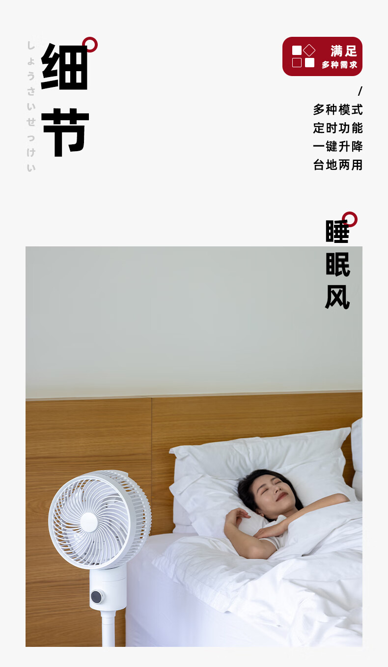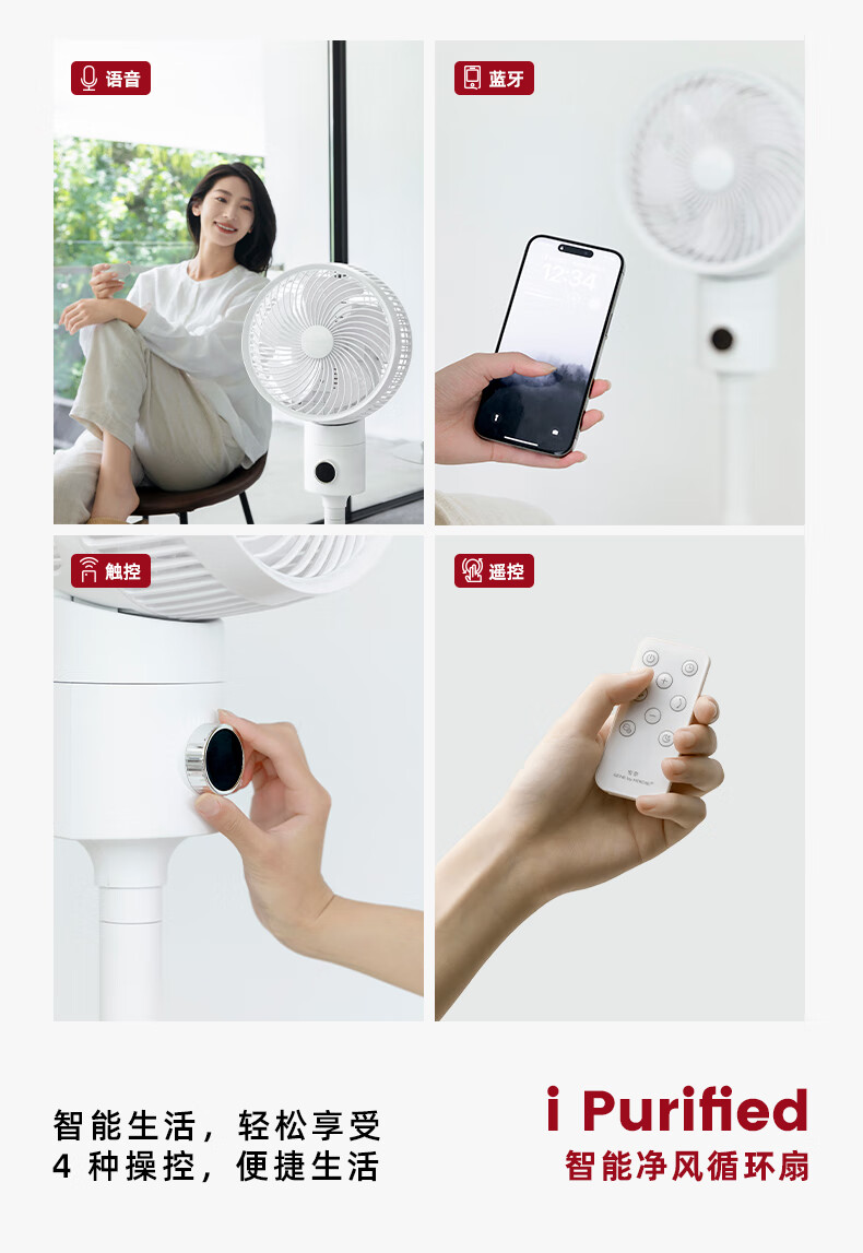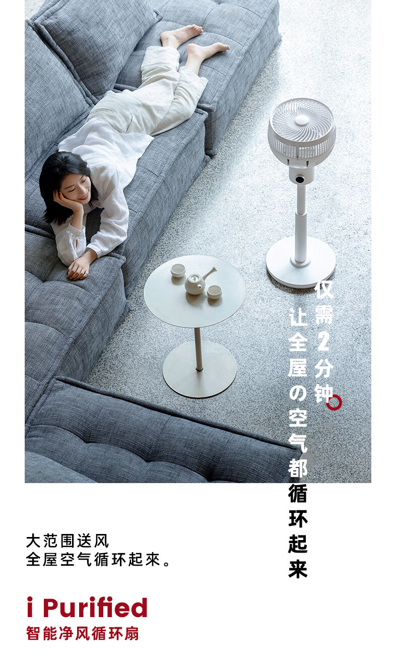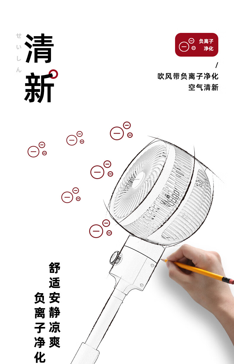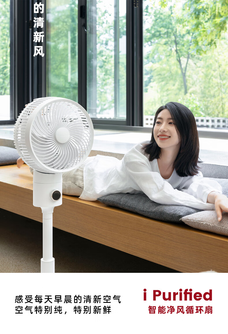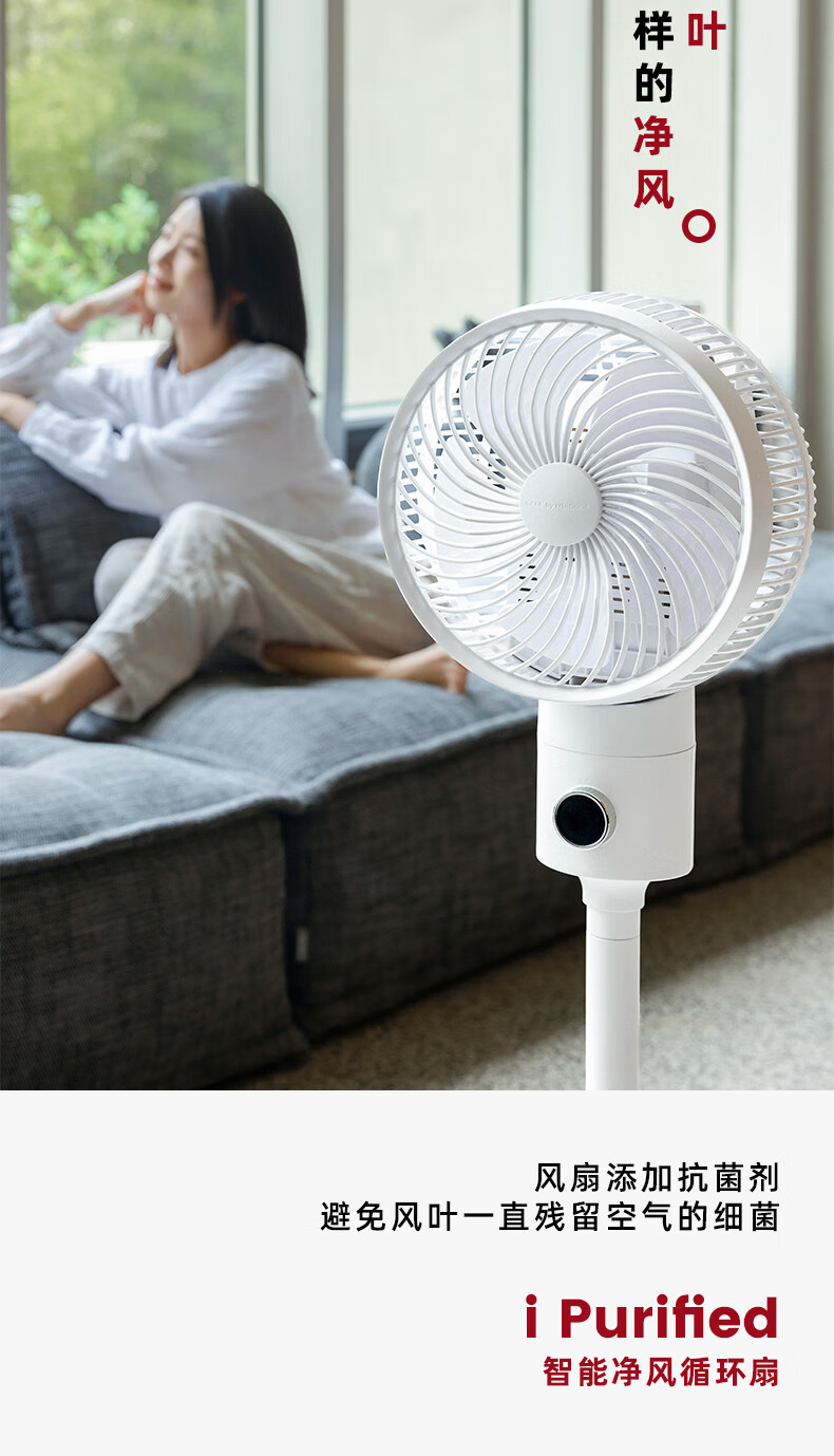 Jiannai Japanese smart voice bedroom ultra-quiet air circulation fan household negative ion purification floor fan DC variable frequency lifting 3D shaking table vertical electric fan first-class energy efficiency flagship model Japanese motor + negative ion purification + mobile phone control