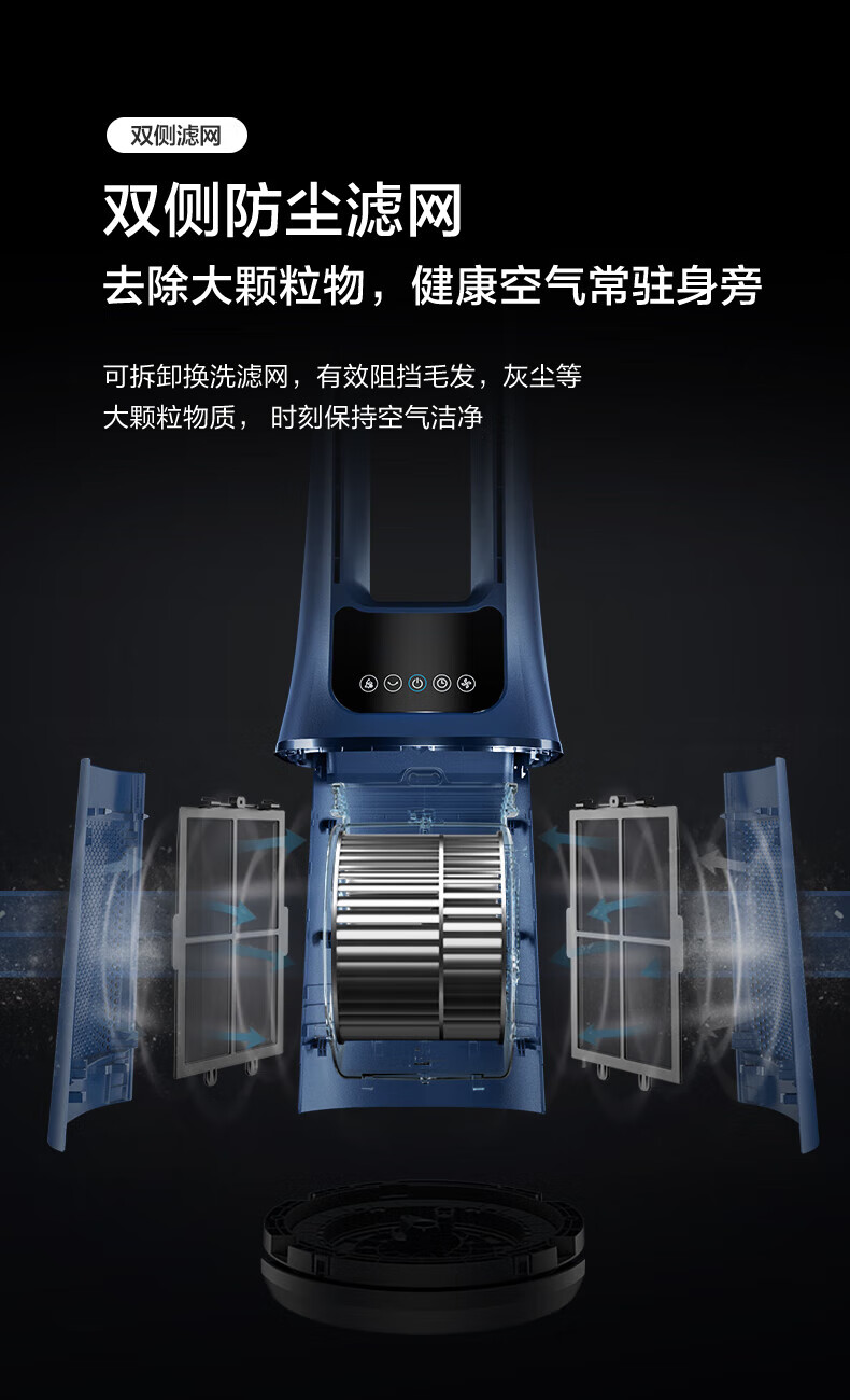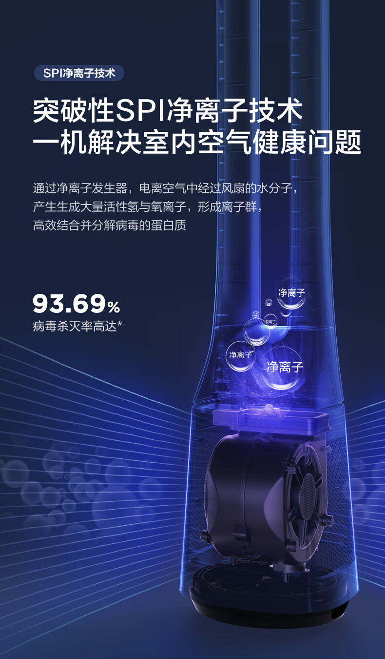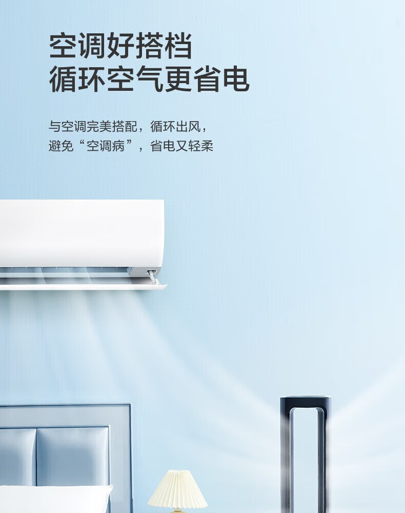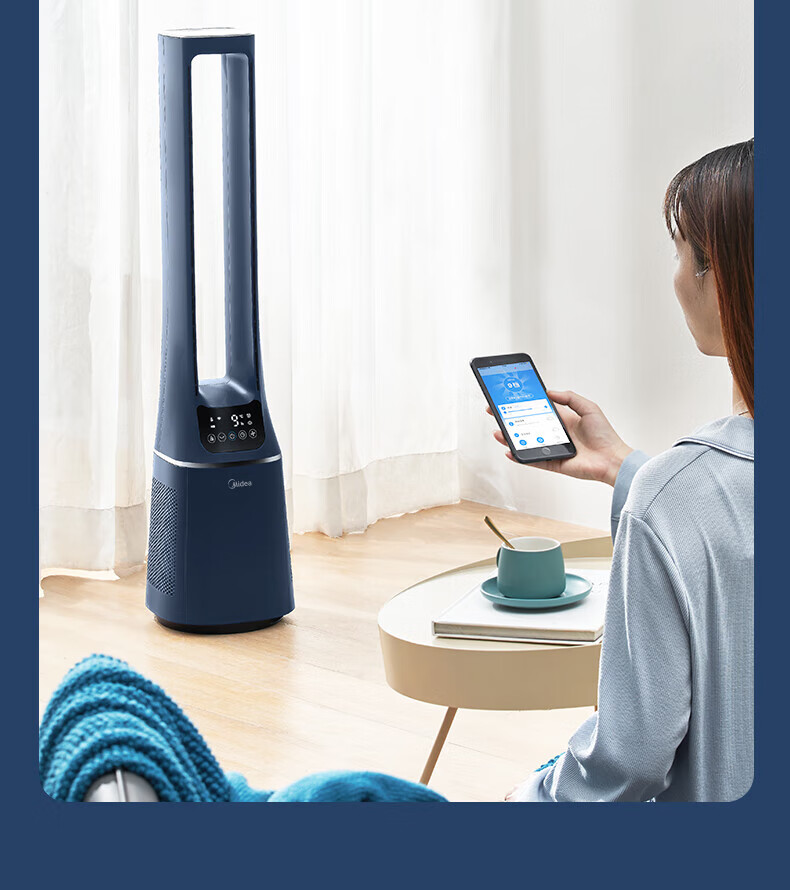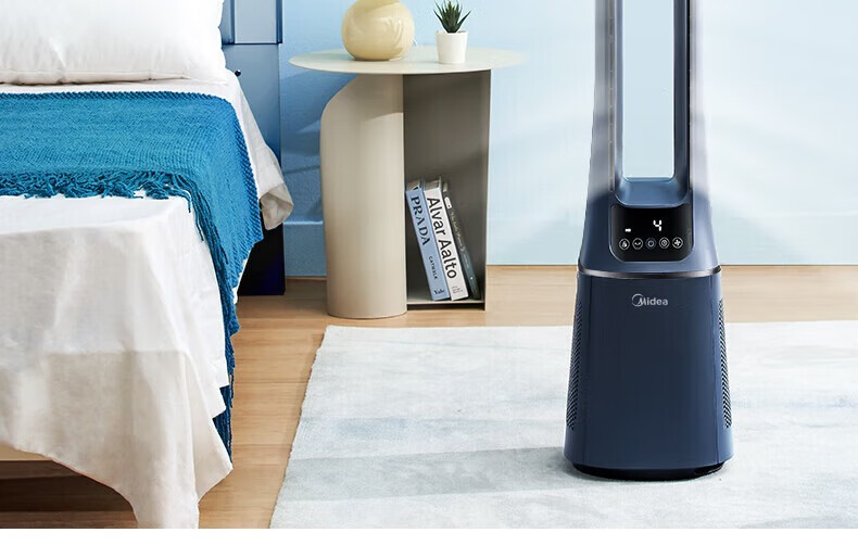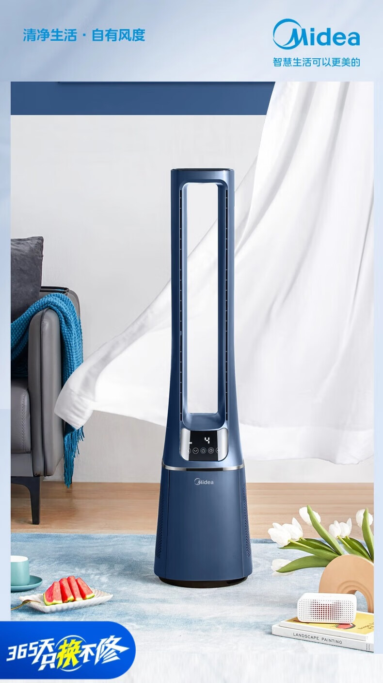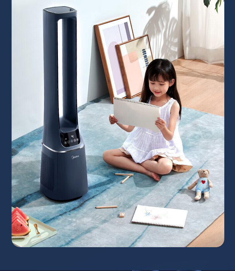 Midea National Subsidy New Bladeless Fan Intelligent Temperature Sensing Household Soft Sound High Wind Floor Fan Bedroom Sleeping Soft Wind Tower Fan Wind Changes with Temperature Sterilization Fan Polar White Heating and Cooling Purification and Sterilization Mobile Phone/Voice Intelligent Control