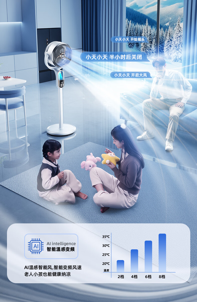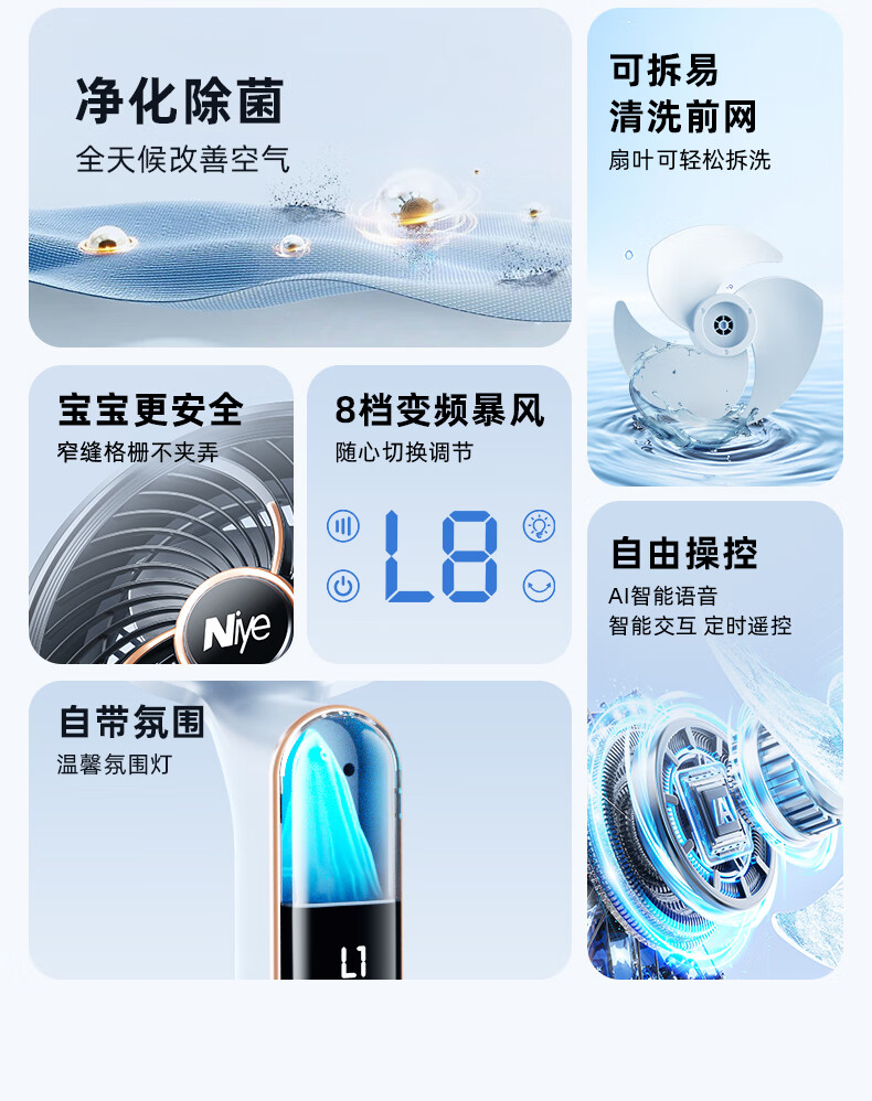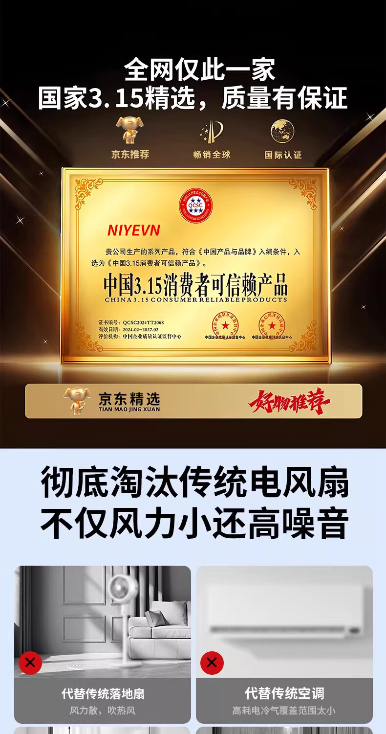 NIYEVN New AI Tracking Cooling Air Conditioning Fan Cooling Electric Fan Silent Bedroom Super Silent Level 1 Energy Efficiency Household Floor Fan Air Circulation Fan Top Ten Wind Power Upgraded Remote Control Model AI Whole House Cold Air Circulation + 50 Times Air Conditioning Cold Wind