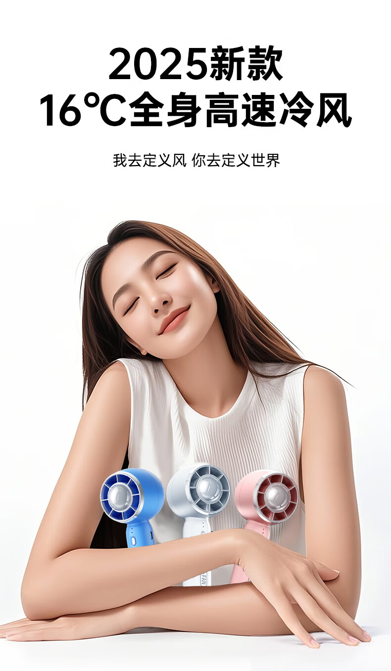 Xiaojin 2025 new model丨Icy cold wind handheld small fan electric fan desktop high wind mini portable outdoor long battery silent rechargeable fan student dormitory Glacier White丨Super silent丨Icy wind power丨6000mAh Super long battery life Get it when you place the order丨2-year warranty only for replacement and not repair