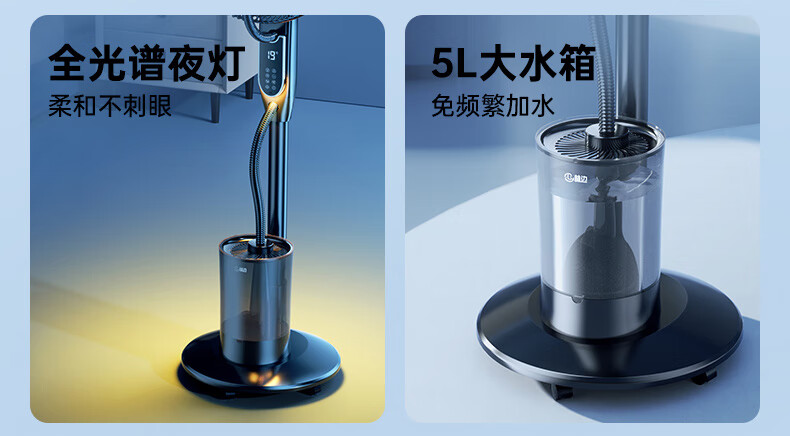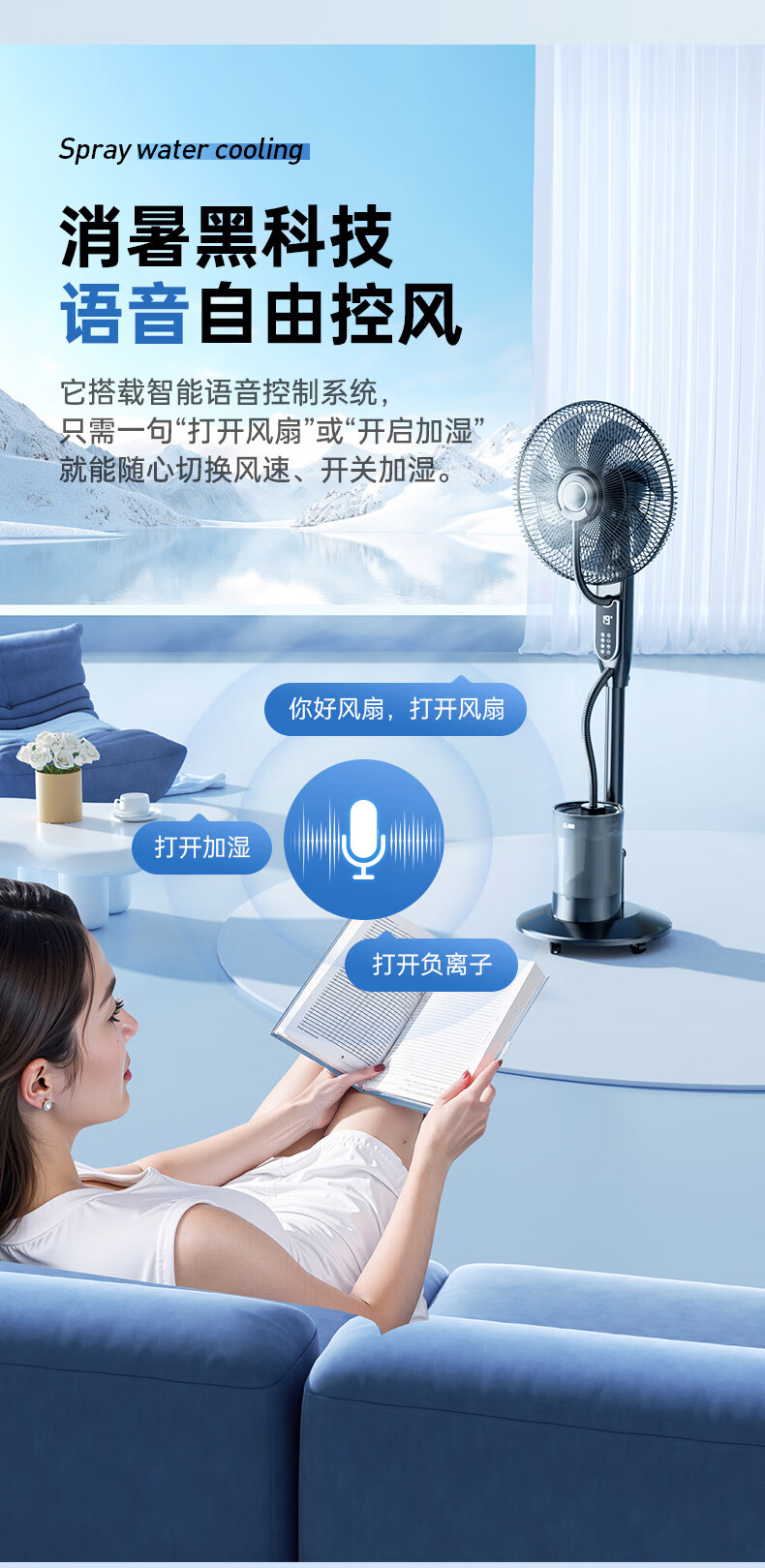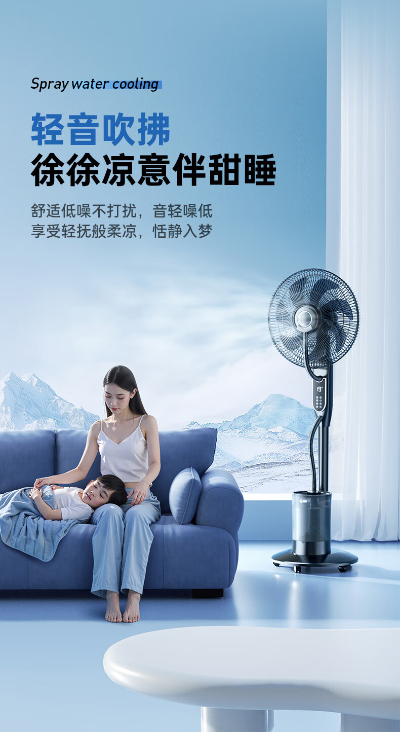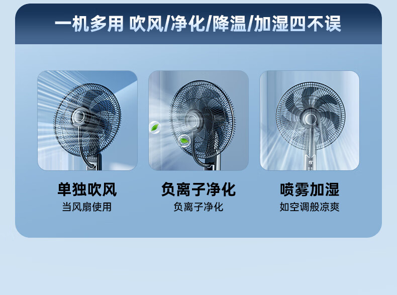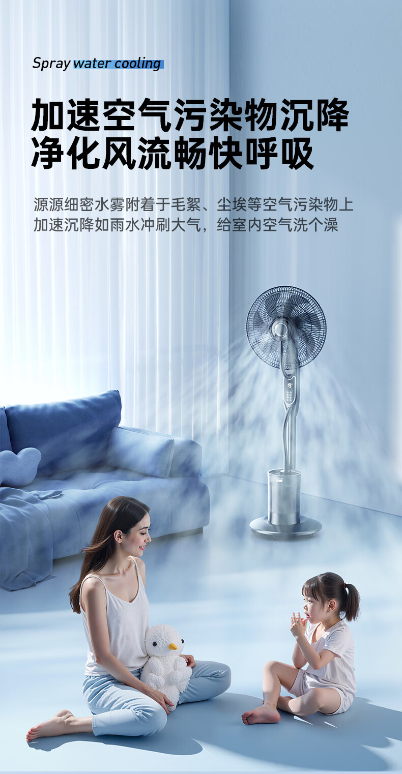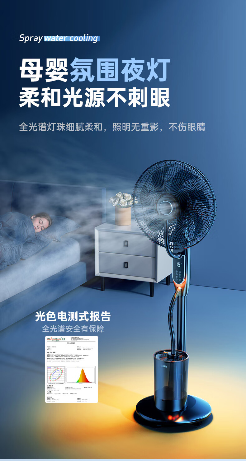 Forest edge spray fan household floor fan high wind intelligent negative ion purification humidification cooling industrial water cooling mist fan bedroom living room night light atmosphere floor humidification electric fan Athens white 18-inch smart voice negative ion purification / 5L water tank / night light