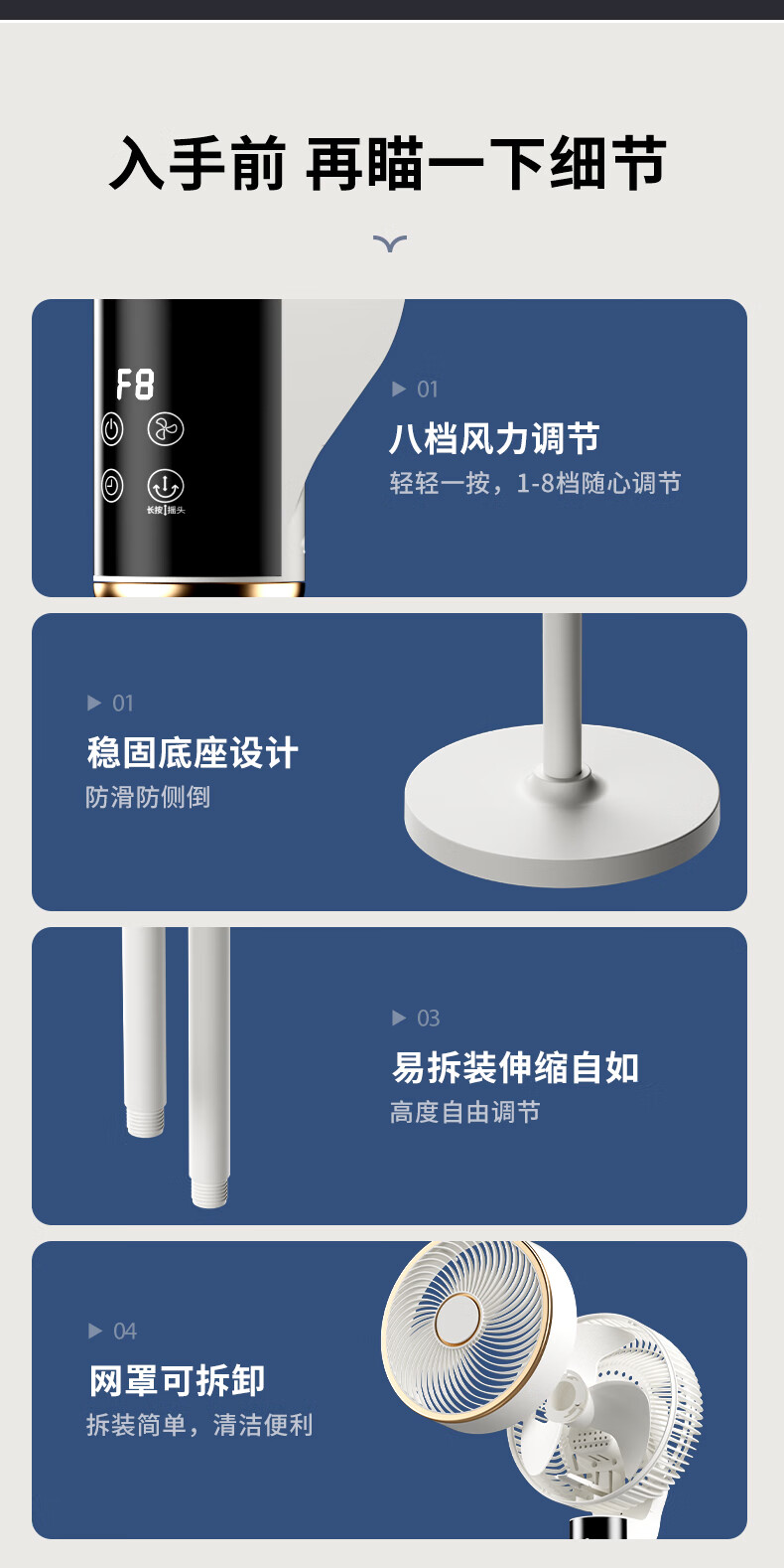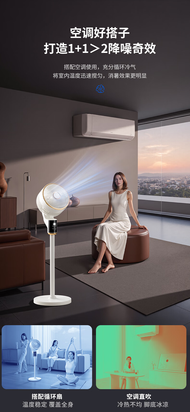Xiaomi Air Circulation Fan Remote Control Electric Fan Floor Fan Home Desktop Dual-Purpose Light Sound Small Electric Fan Large Air Volume Upgraded Height Fan Shaking Fan Voice Remote Control 8-speed Wind Speed + Timing + Up, Down, Left and Right Shaking Fan