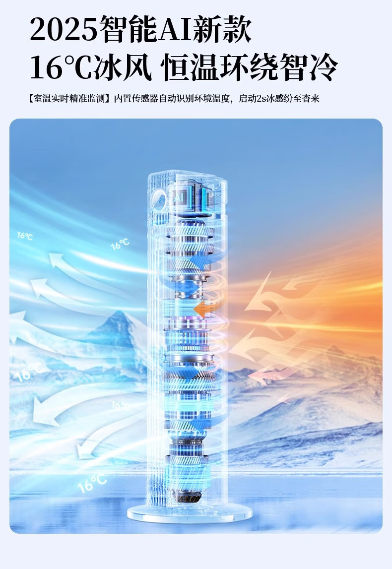 Senshier 2025 new model丨Whole house 16C air conditioner fan cooling electric fan refrigeration bladeless tower fan silent floor fan home living room vertical dormitory smart bedroom 90cm top configuration 450 circulation air volume丨smart model German aviation motor丨3D surround wind sense丨35db silent and undisturbed