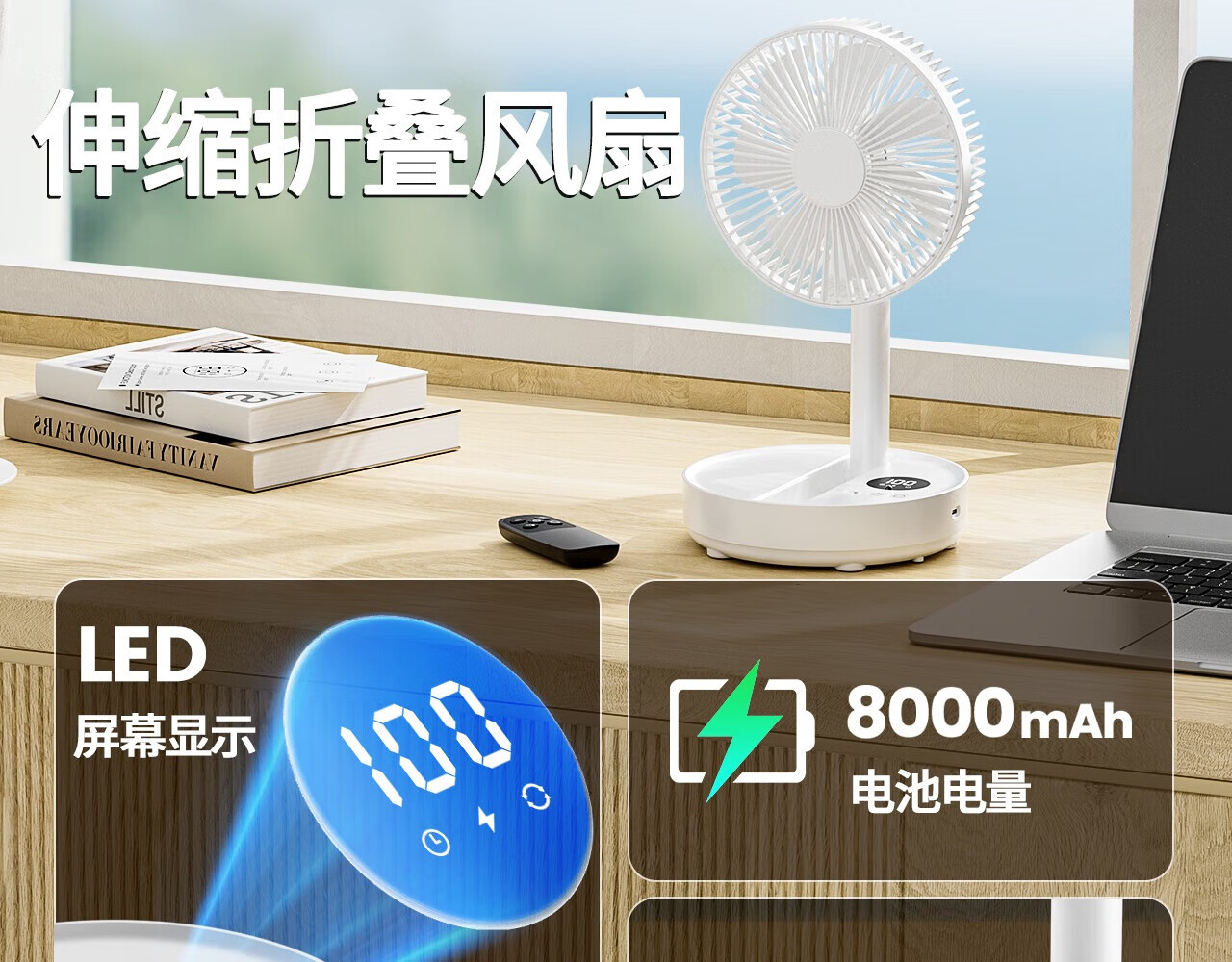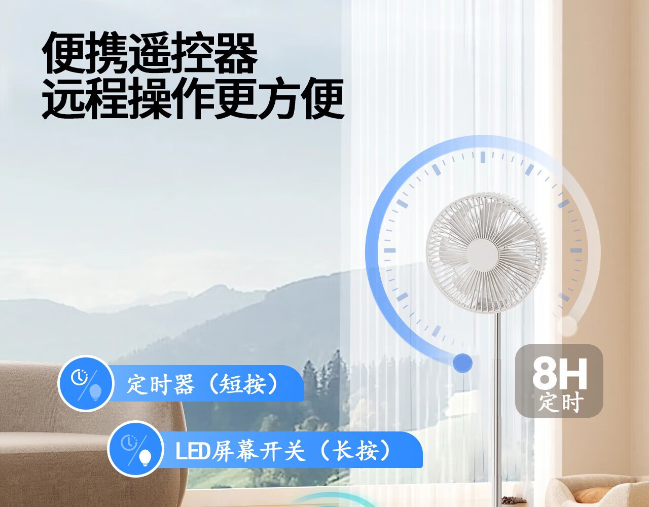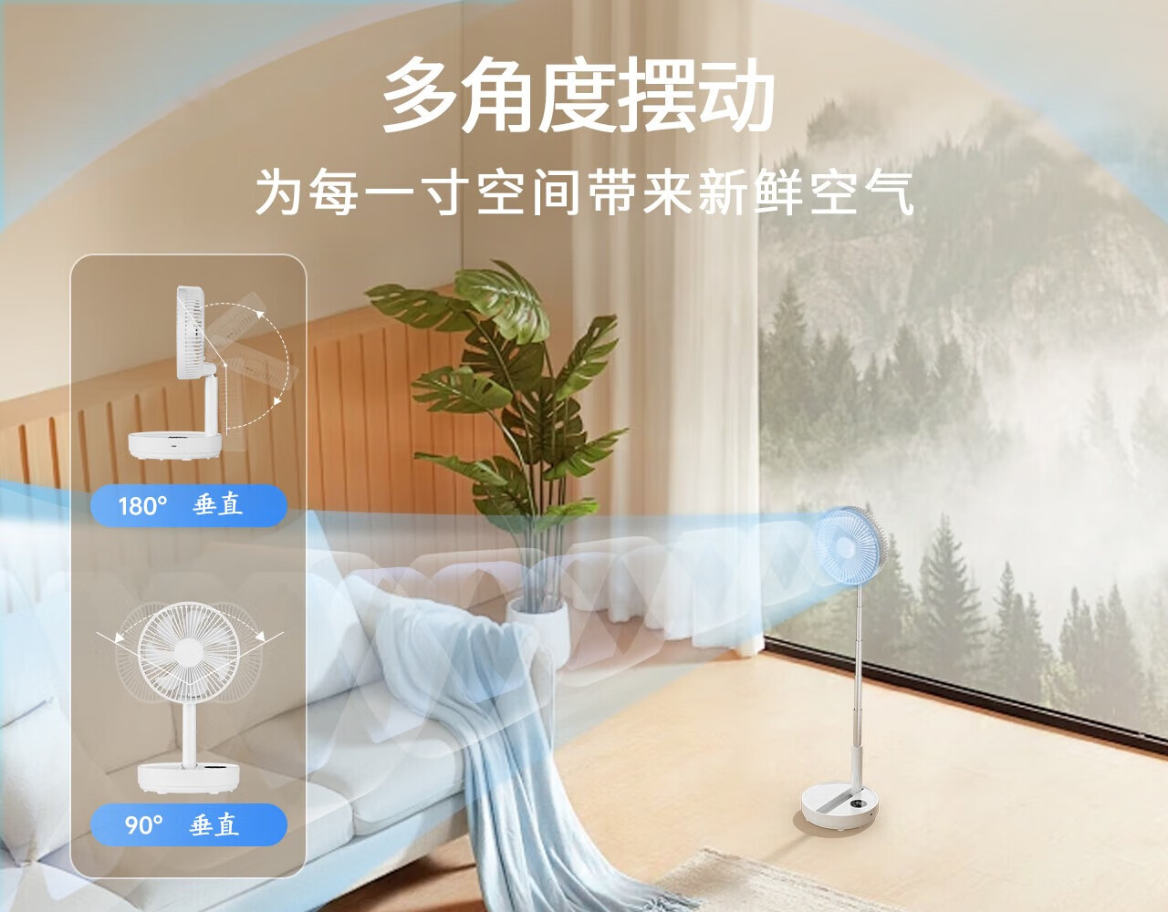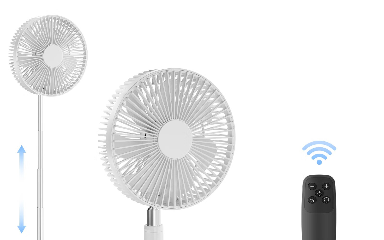 JANLLEN Telescopic Folding Floor Fan Air Conditioning Fan Rechargeable Electric Fan Home Bedroom Dormitory Office Desktop Fan Remote Control Timing Outdoor Portable Light Sound Desk Vertical Circulation Fan 9 Inch White 10800 mA/4 Levels/Removable and Washable/Night Light