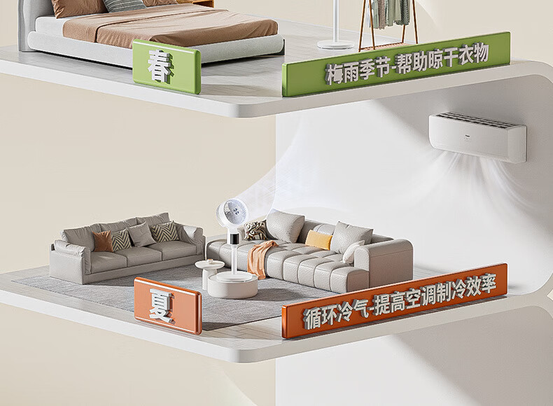 Intelligent Voice Shaking Air Circulation Fan Home Bedroom Silent Floor Fan Office Powerful Refrigeration Air Conditioning Fan Stand Standalone Small Electric Fan Level 1 Energy Consumption Flagship 3D Monsoon Cycle AI Voice Control丨Aromatherapy Negative Ion Purification 2025 New Upgraded Model