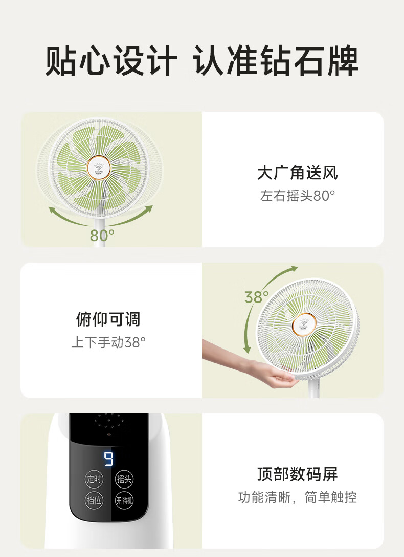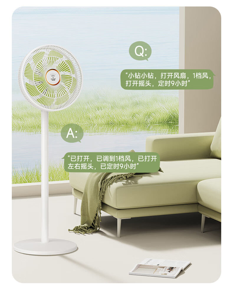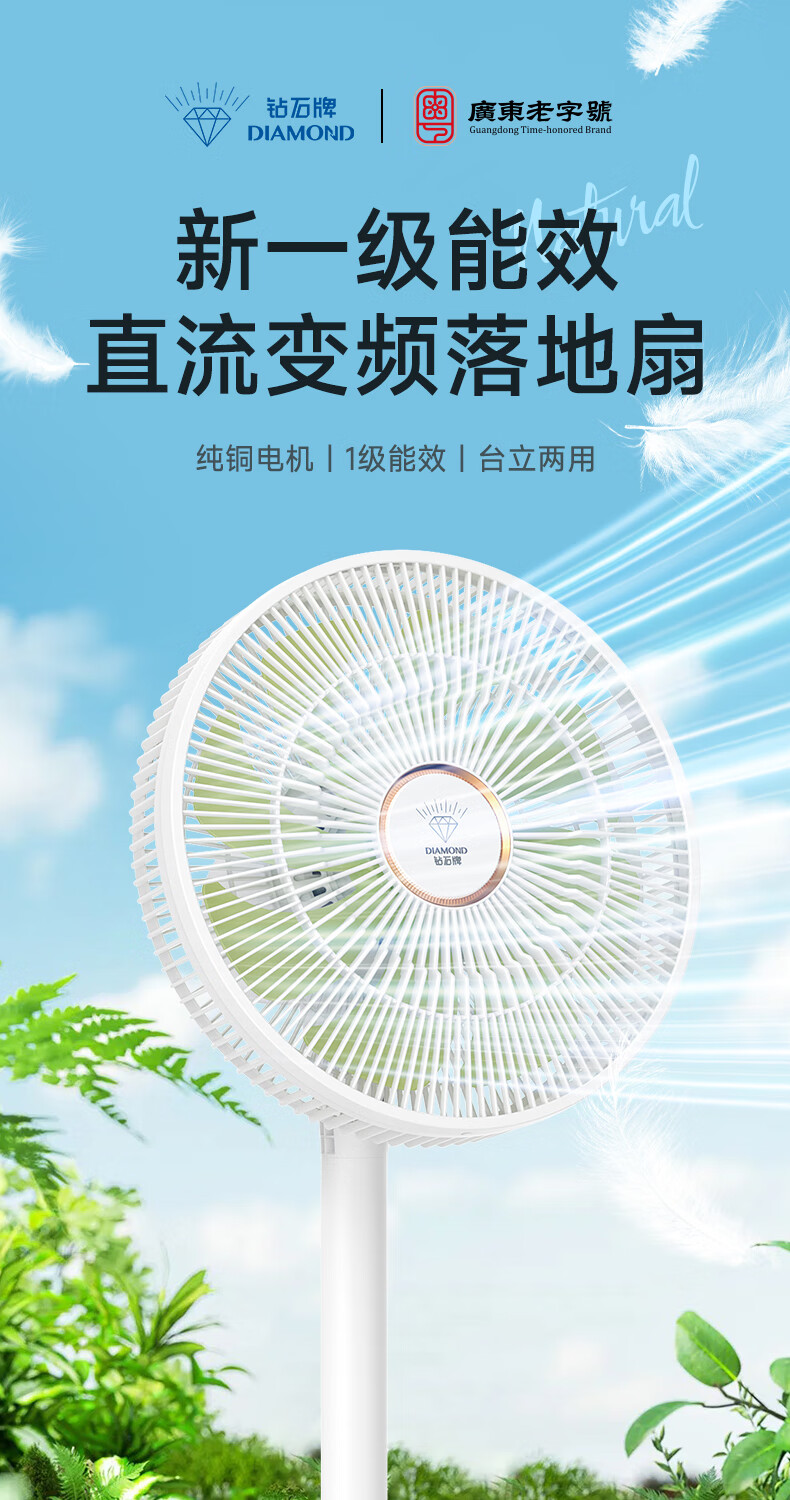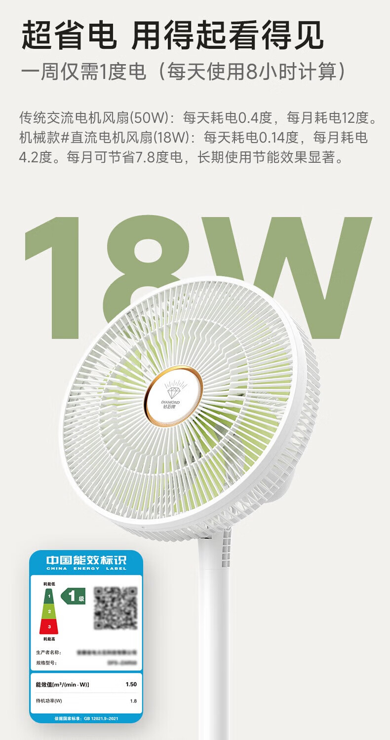 DIAMOND electric fan for home use, Level 1 energy efficiency + DC frequency conversion + pure copper motor, floor-standing fan, table and floor dual-purpose shaking head, large air volume, light sound, small fan for bedroom and living room ZBM08, hot model on the whole network, 8-leaf DC voice intelligent control model