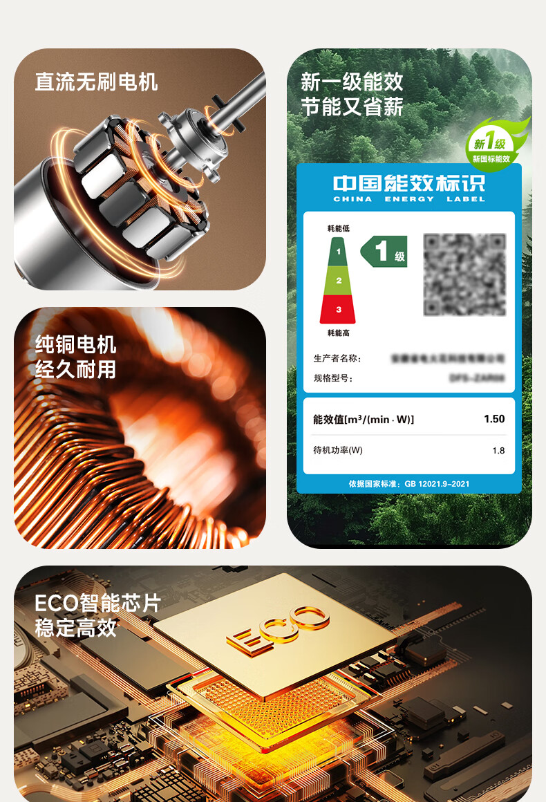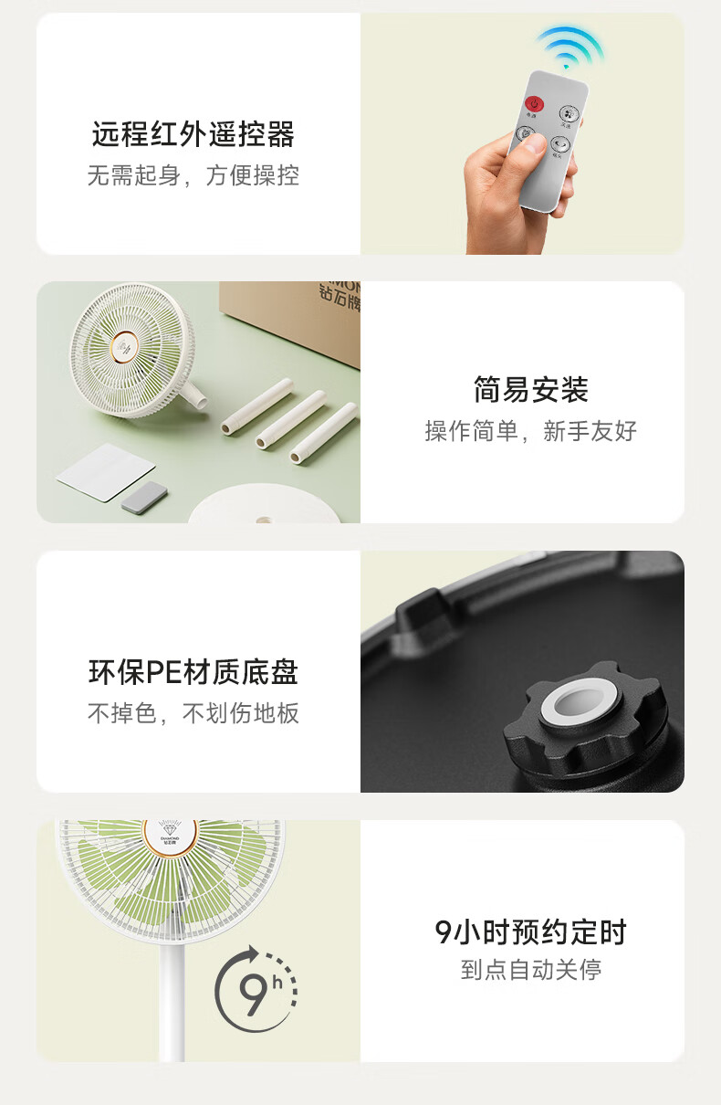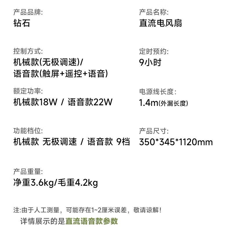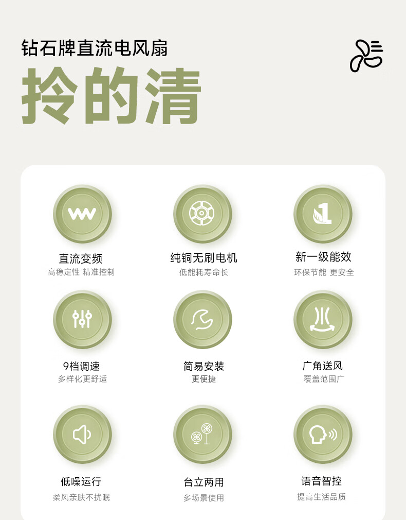 DIAMOND electric fan for home use, Level 1 energy efficiency + DC frequency conversion + pure copper motor, floor-standing fan, table and floor dual-purpose shaking head, large air volume, light sound, small fan for bedroom and living room ZBM08, hot model on the whole network, 8-leaf DC voice intelligent control model