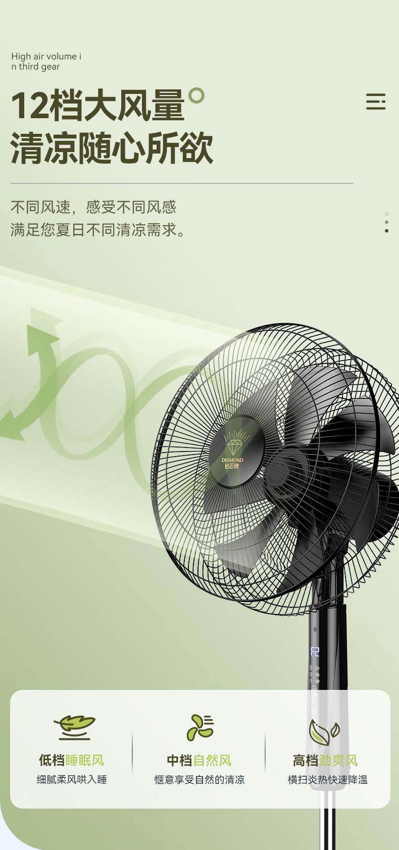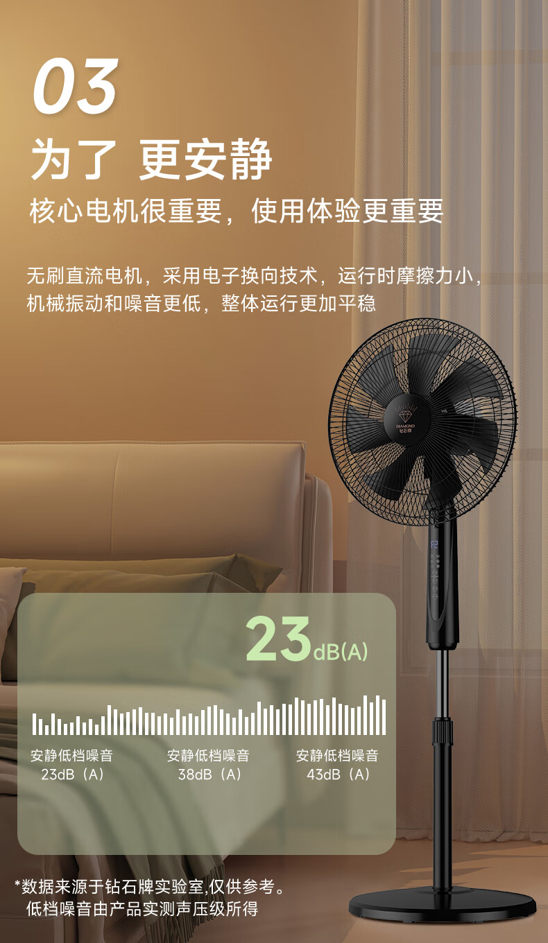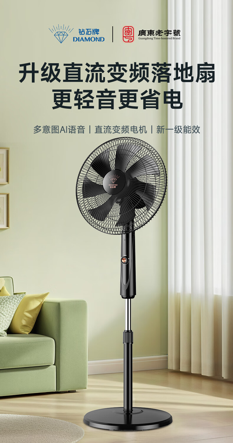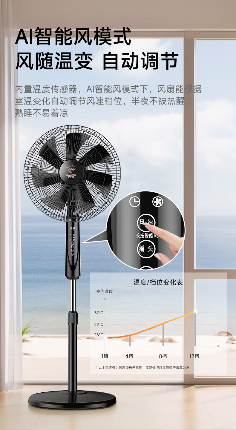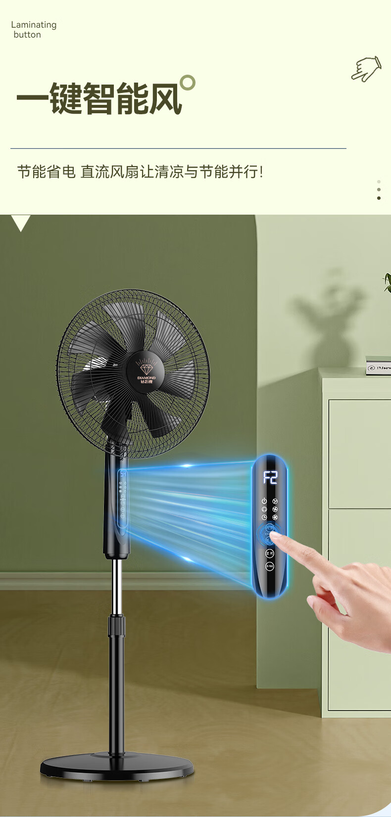DIAMOND Floor Fan Household Electric Fan Level 1 Energy Efficiency + DC Frequency Conversion + Pure Copper Motor Intelligent Control Large Wind Shaking Fan Energy Saving Bedroom Living Room Dormitory Fan ZFM07 Voice Intelligent Control Frequency Converter Light Sound Temperature Sensing Wind Adjustment