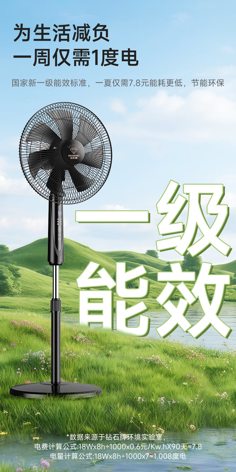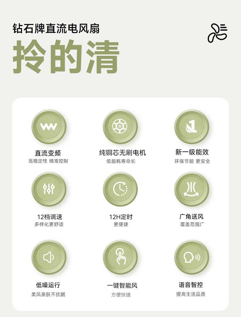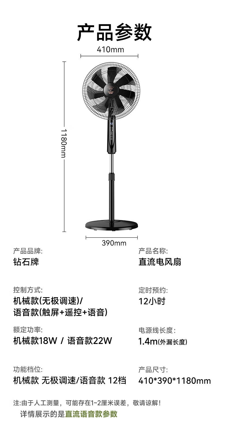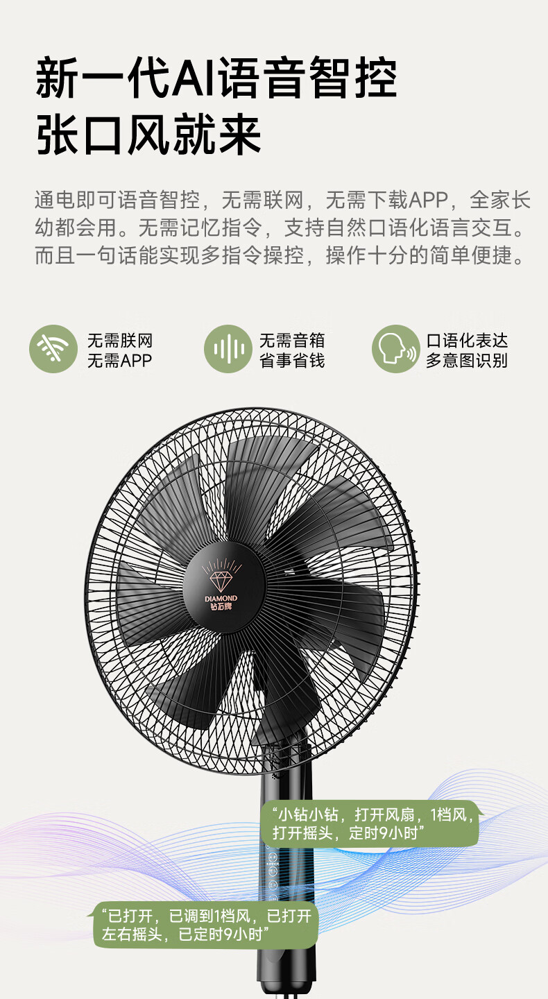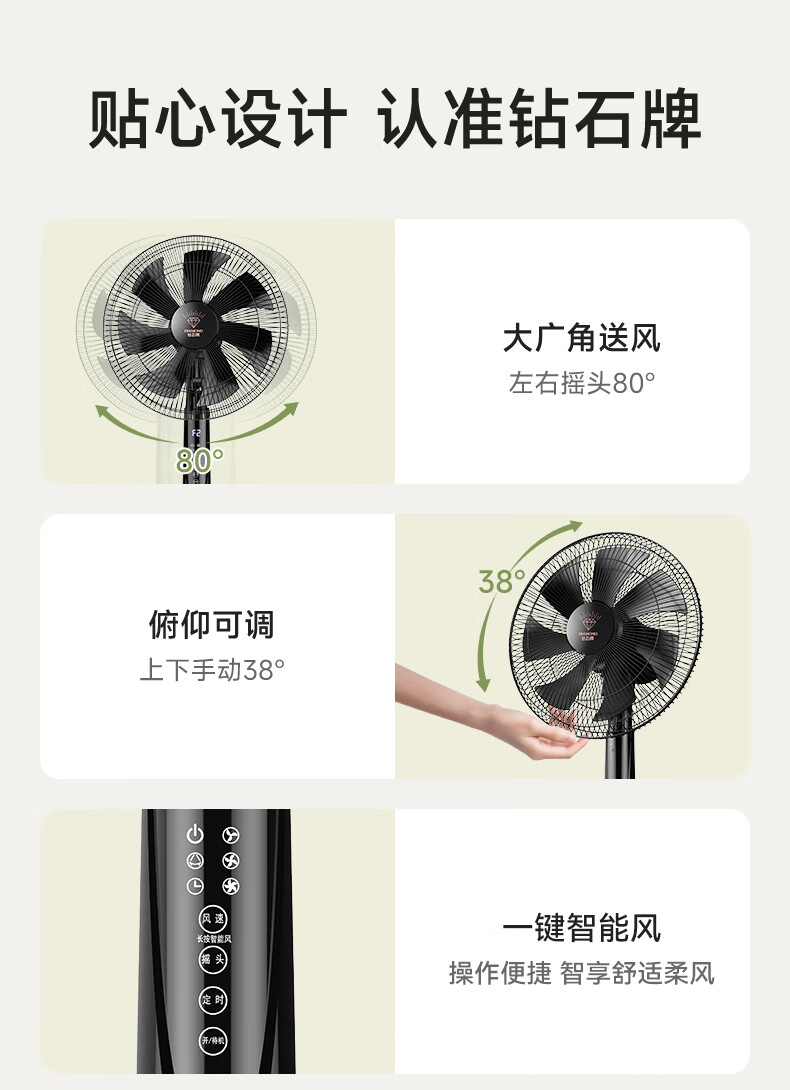 DIAMOND Floor Fan Household Electric Fan Level 1 Energy Efficiency + DC Frequency Conversion + Pure Copper Motor Intelligent Control Large Wind Shaking Fan Energy Saving Bedroom Living Room Dormitory Fan ZFM07 Voice Intelligent Control Frequency Converter Light Sound Temperature Sensing Wind Adjustment