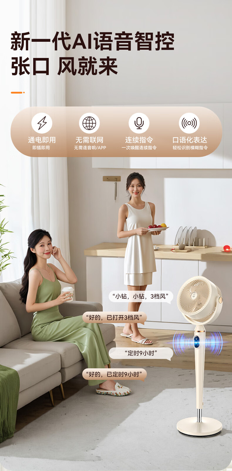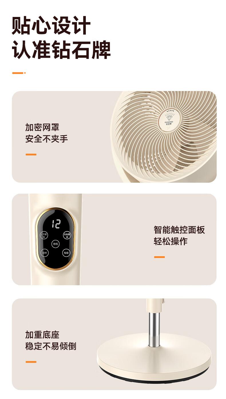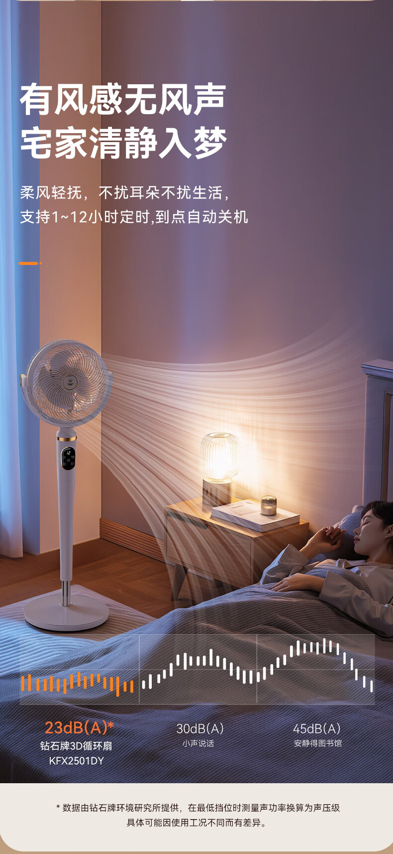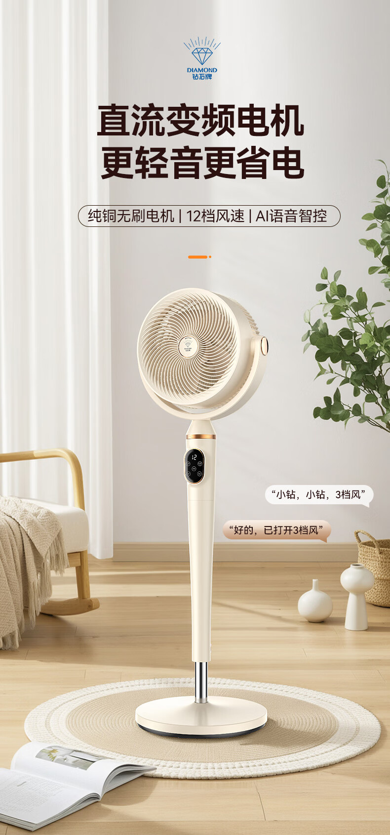 DIAMOND frequency conversion light sound air circulation fan household voice remote control electric fan light sound floor fan desktop small fan living room bedroom large wind fan KFX2501DY voice remote control model DC frequency conversion + first-level energy efficiency + 12-speed optional fan