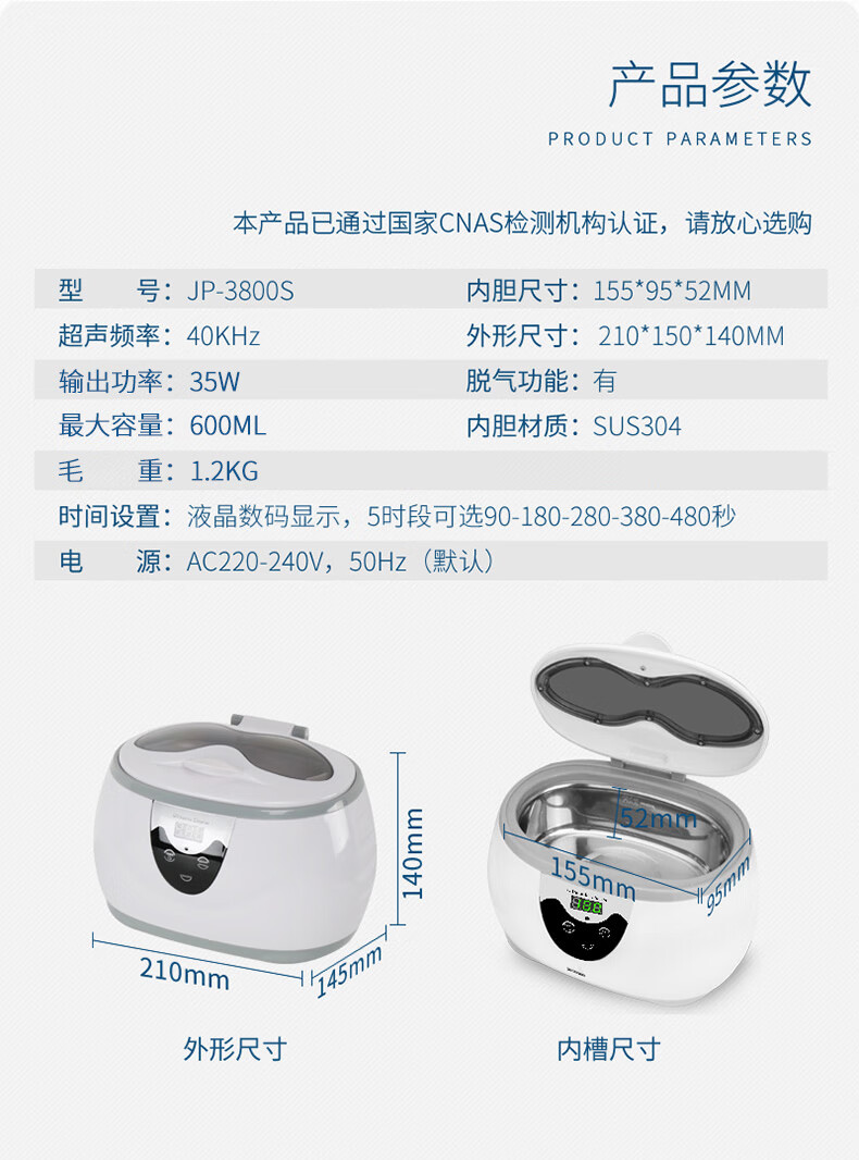 Skymen ultrasonic cleaning machine household glasses cleaning machine jewelry watch denture braces cleaning machine JP-3800S