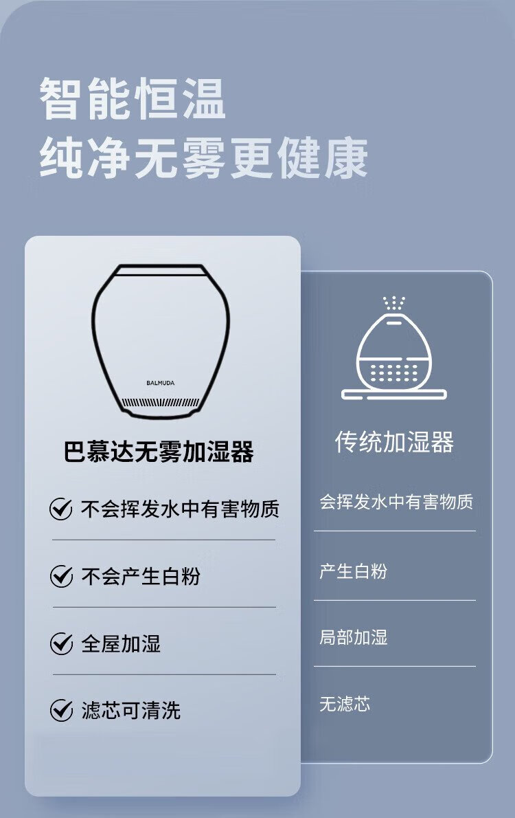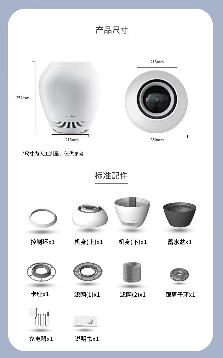 BALMUDA intelligenter, nebelfreier Luftbefeuchter, Schlafzimmer, Heimbüro, Klimaanlage, Begleiter, Luftbefeuchter, nebelfrei, High-End-Konstantfeuchtigkeitsreinigung, Silberionen-Regen
