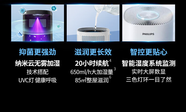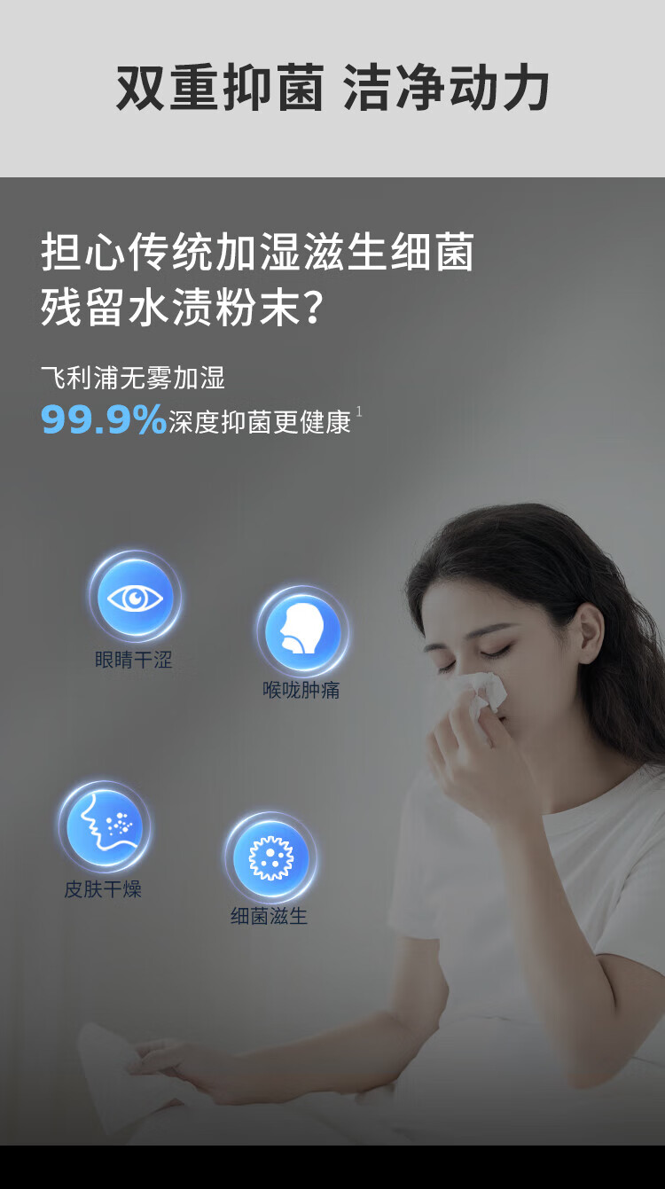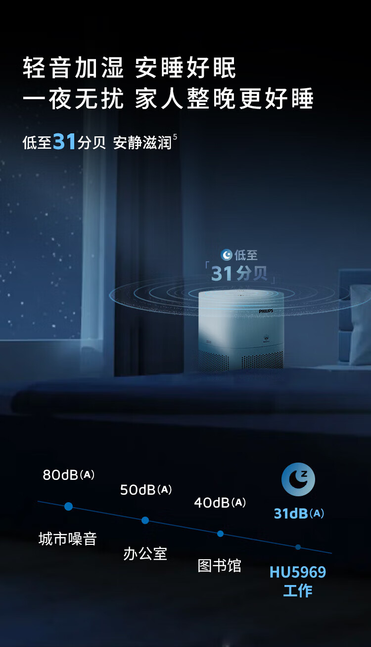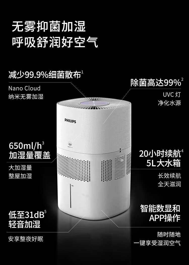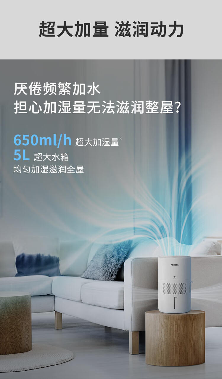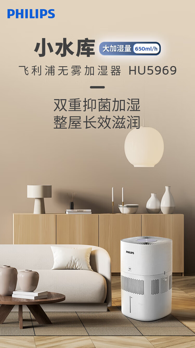 飞利浦(PHILIPS)加湿器家用卧室母婴专用静音除菌无雾空调加湿机鼻炎孕妇婴幼儿小型桌面大容量国家补贴HU5969